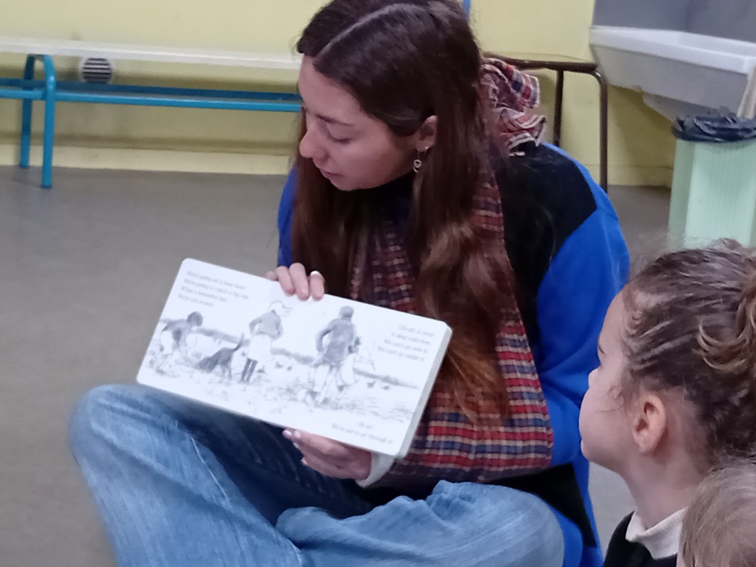 Albums Au cours de cette période, Kate a lu aux élèves le conte randonnée : We're going on a bear hunt (la chasse à l'ours).