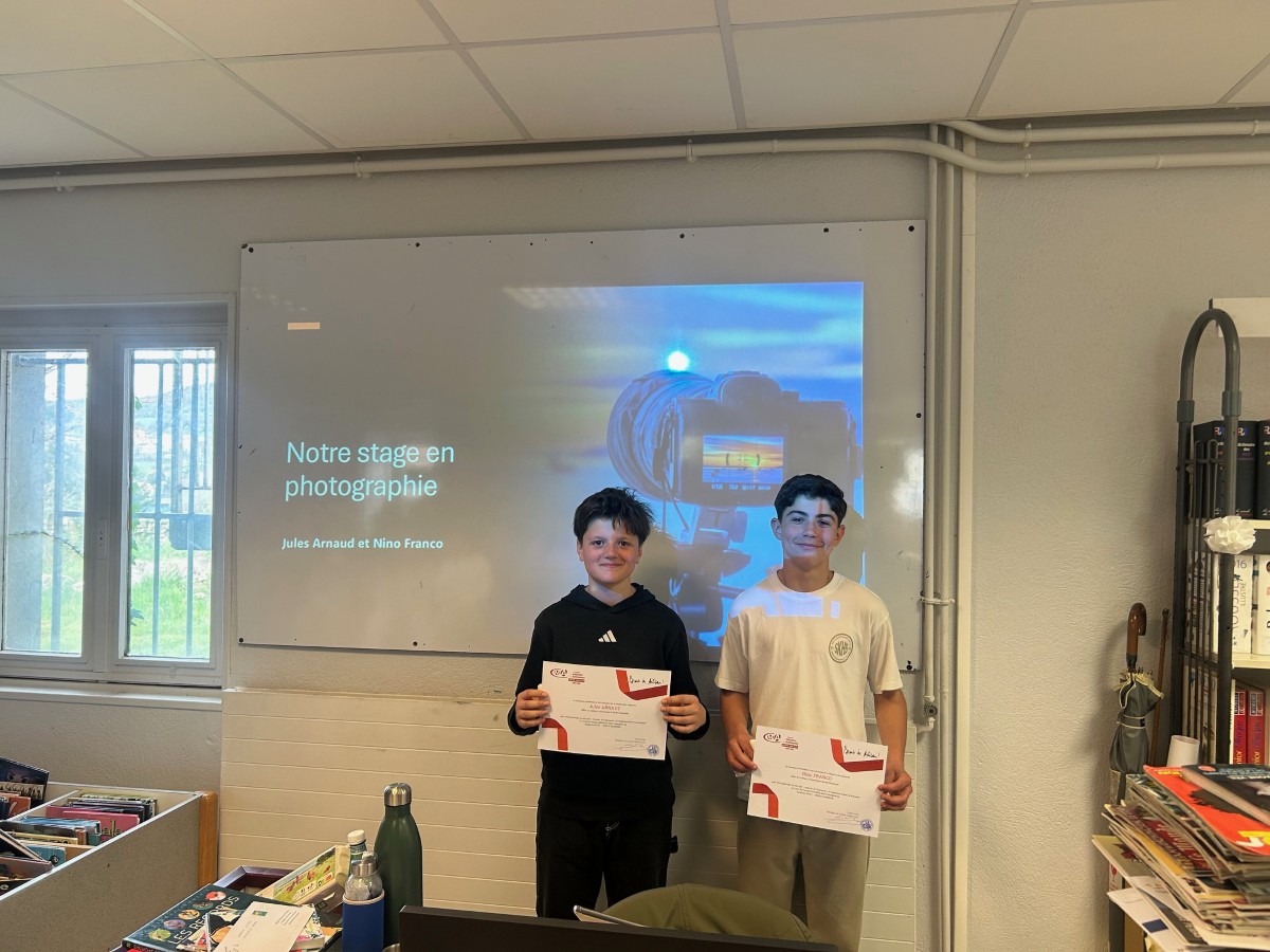 A la suite de cette immersion, ils ont présenté à leur classe leur expérience riche pour la plupart. Ce fût l'occasion pour Mme Raguz de la CMA de leur remettre un diplôme avec une clé USB pour les remercier de leur participation.