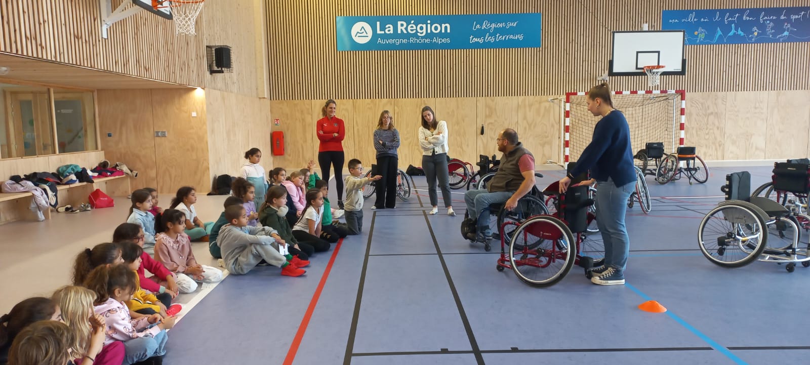 Les élèves des classes de primaire de l'école Ste Thérèse et du Ditep ont pu vivre une expérience humaine singulière en rencontrant l'un des joueurs des Aigles du Velay, club handibasket du Puy.