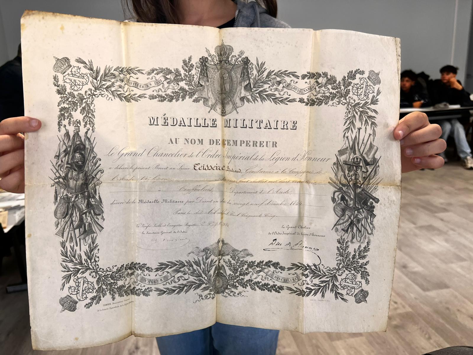 Les élèves de 3eme 2 du collège St Louis ont échangé avec M. Vassal, guide conférencier, sur le thème des conflits du XXème siècle à travers l'histoire d'une famille altiligérienne.