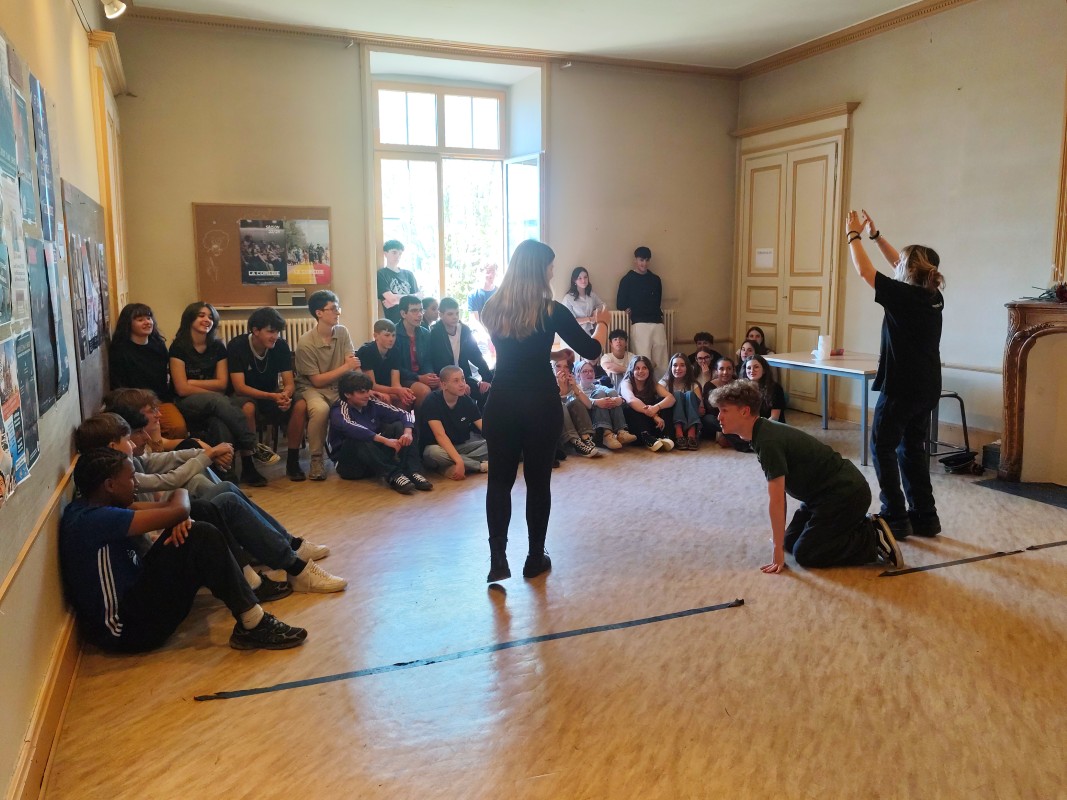 L'après-midi a ensuite laissé place à la pratique. Lors de deux ateliers successifs, les élèves ont pu s'exprimer, créer et improviser en anglais. À travers des jeux et des activités basés sur l'art dramatique, chacun a pu se lancer de façon ludique et totalement décomplexée.
