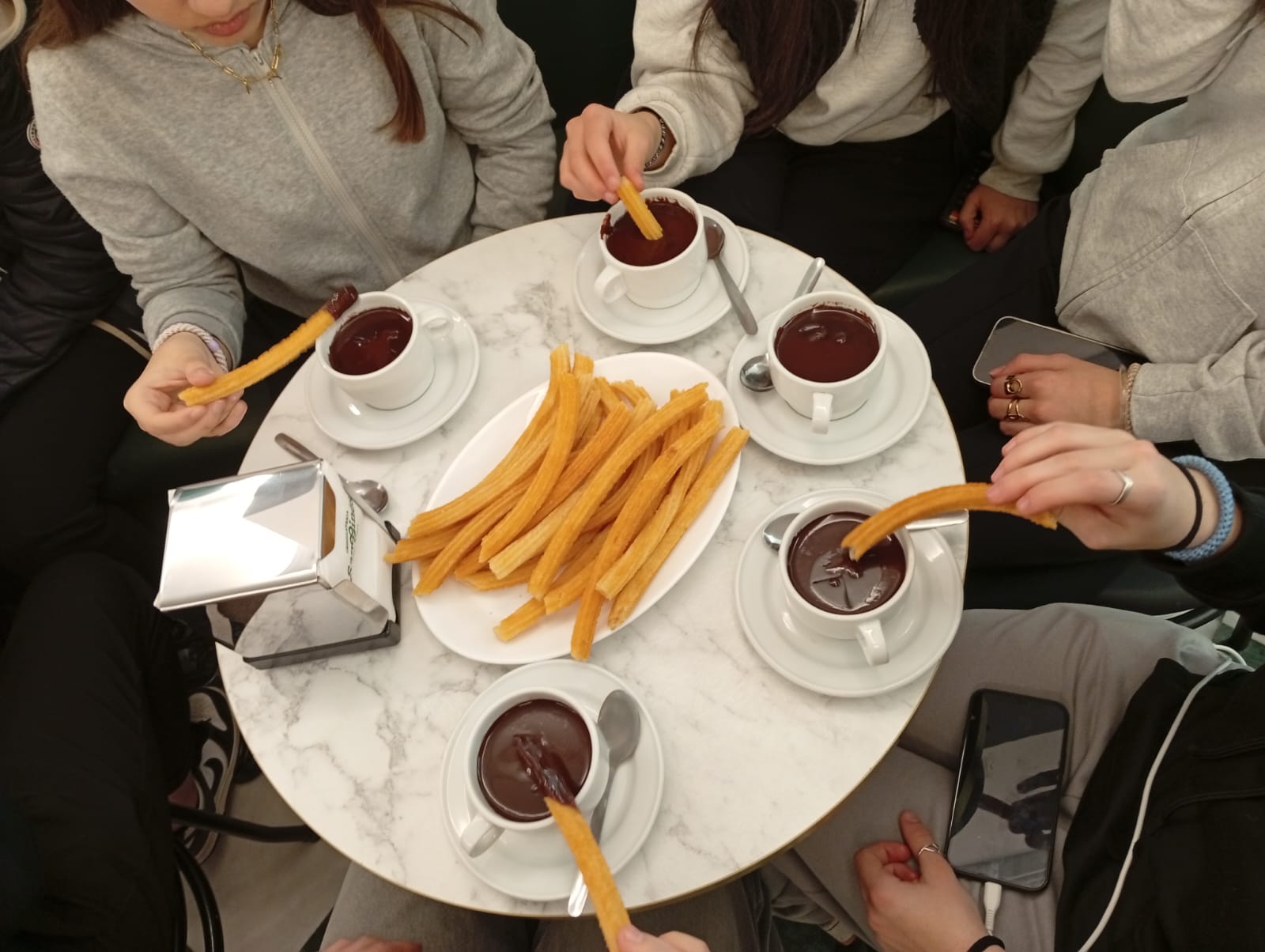 Première étape: le petit dejeuner avec le traditionnel chocolate con churros.