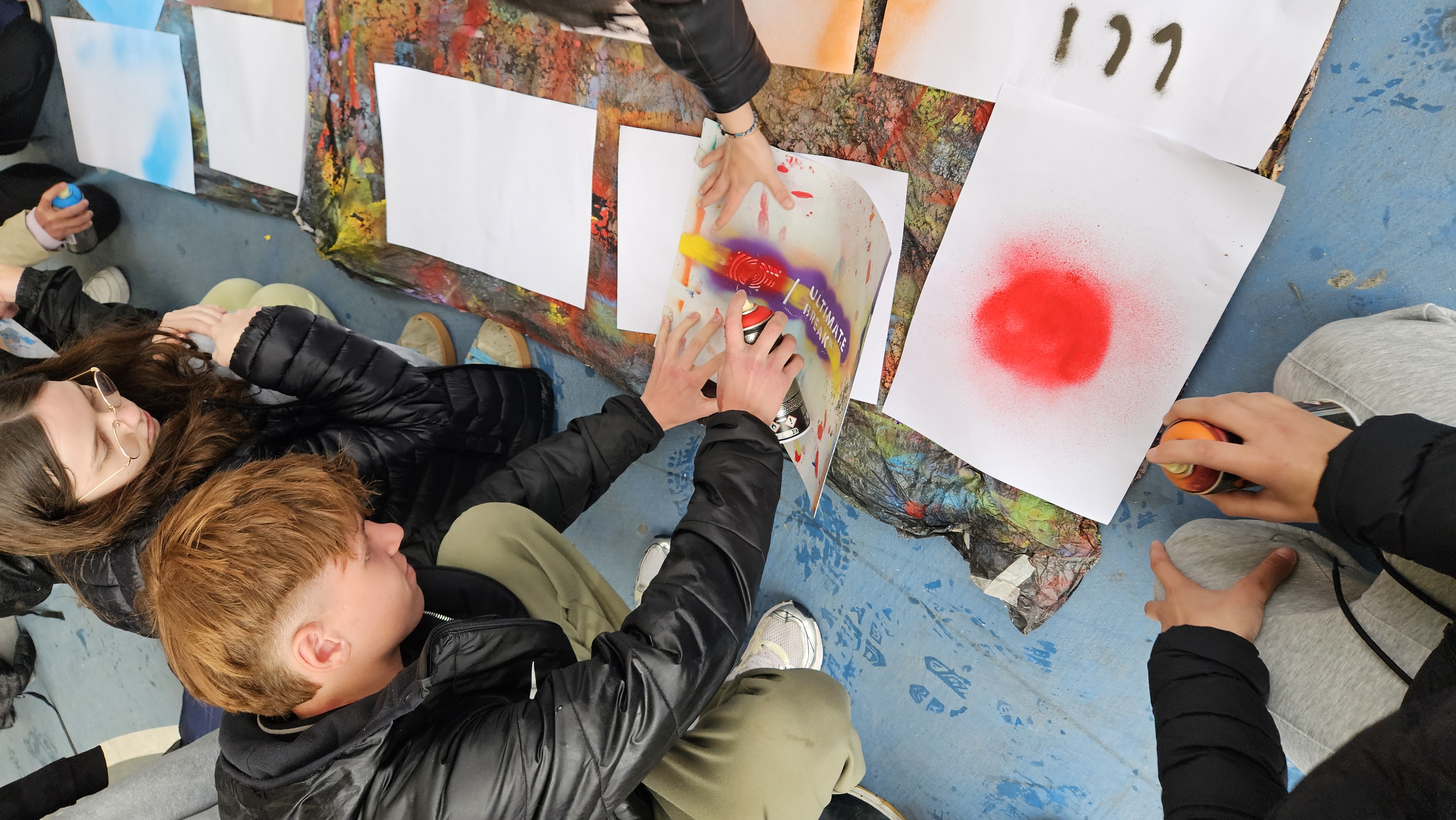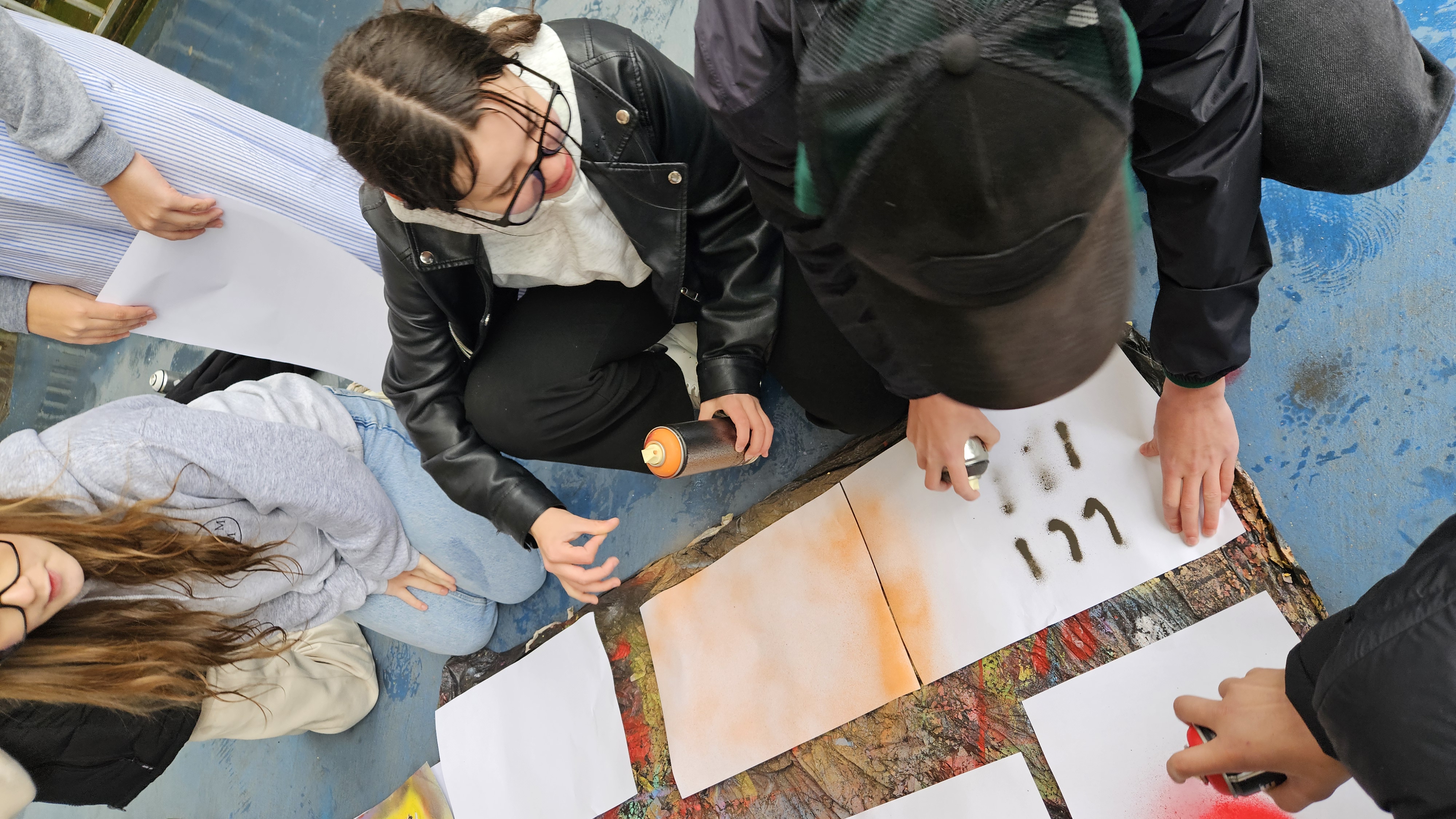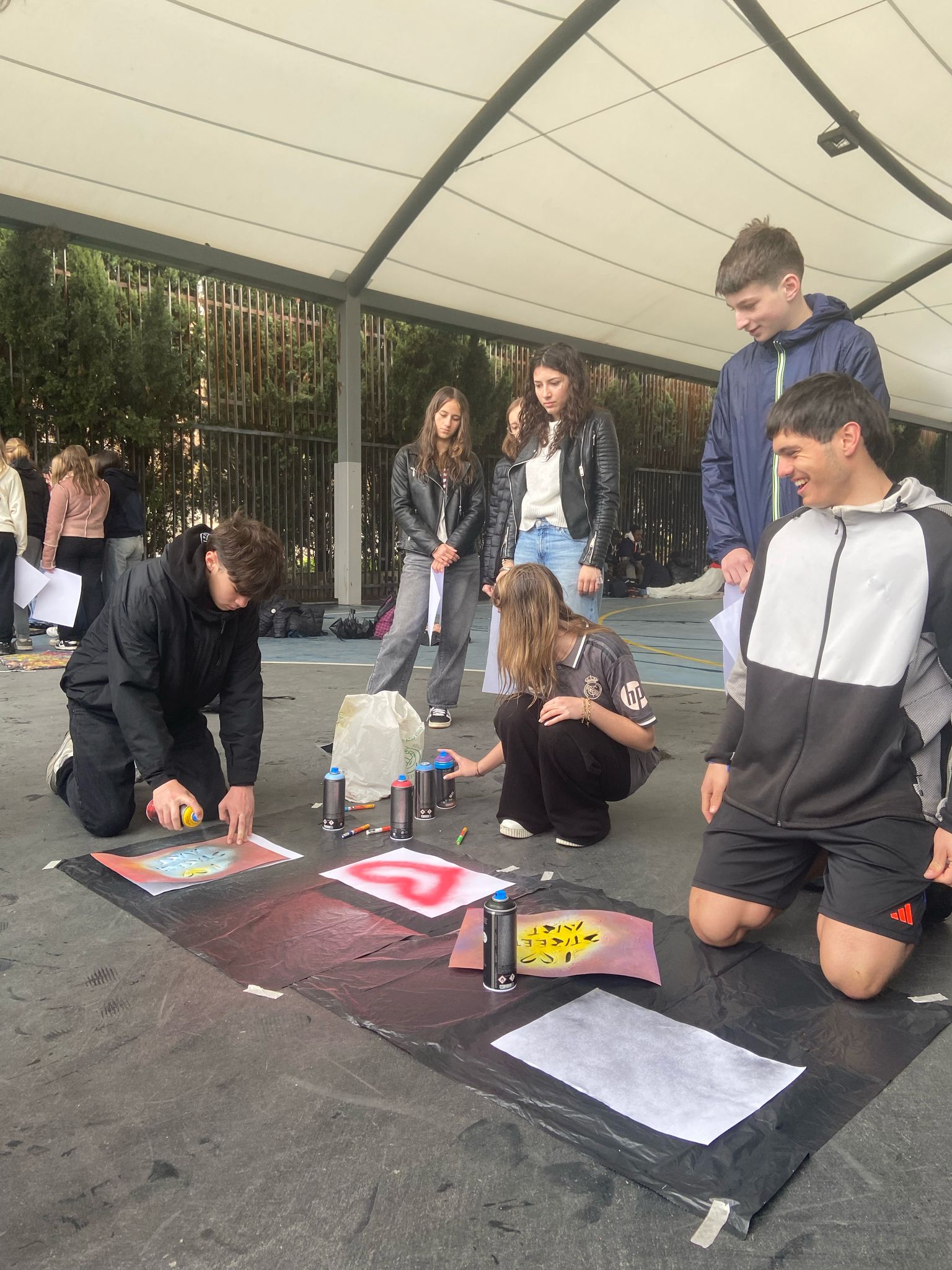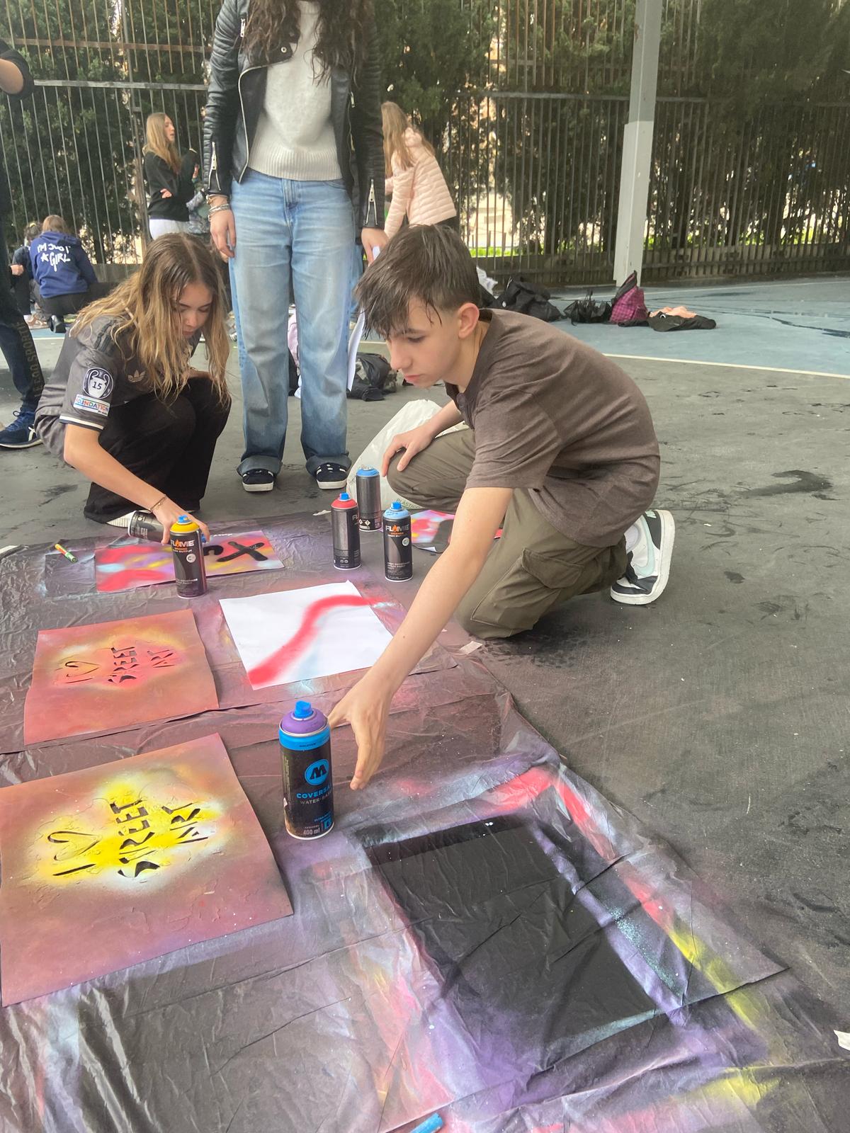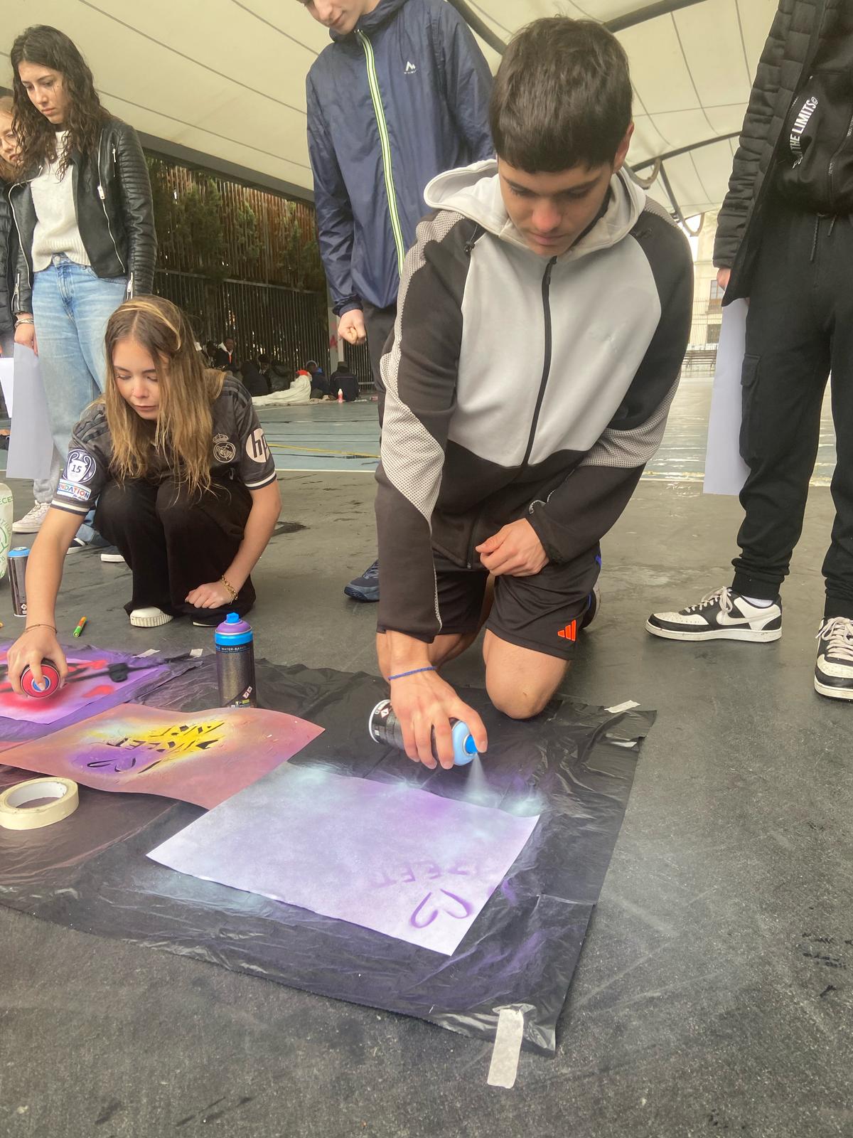 Les élèves ont pu s'essayer à l'art du graff, bombes de peintures à la main.