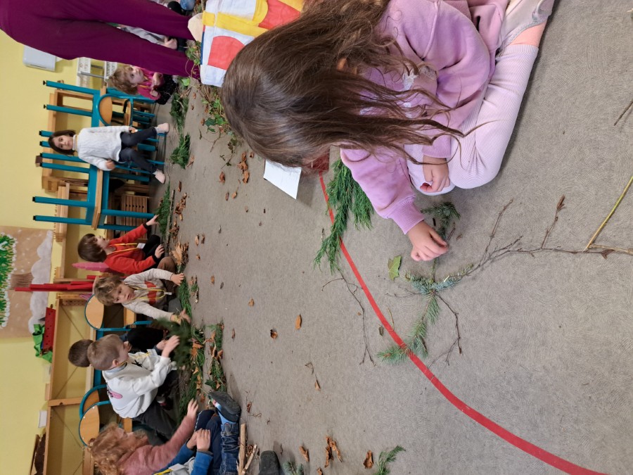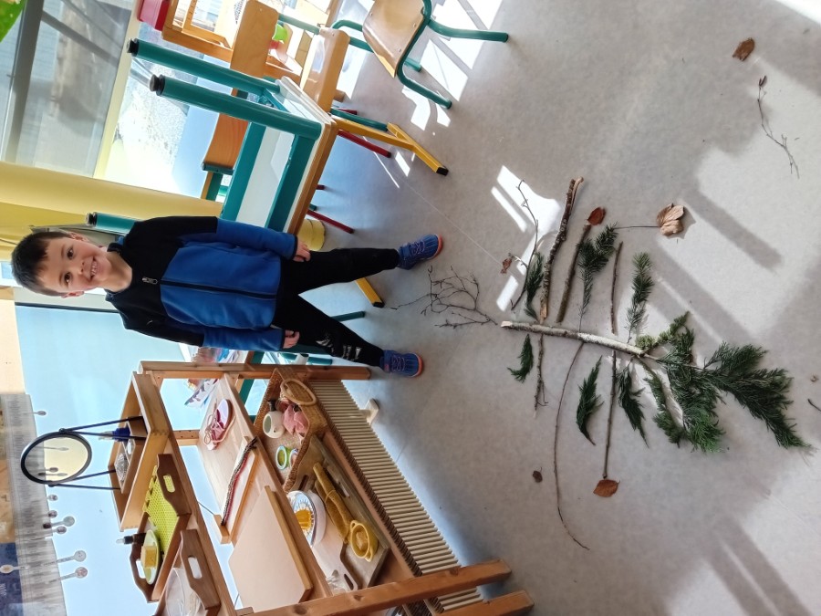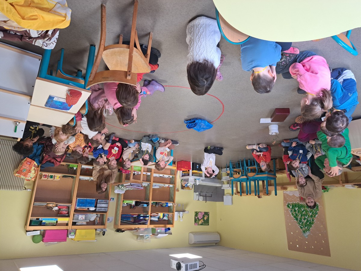 En classe, les enfants ont observé trois branches avec leurs racines, immergées dans un bocal rempli d’eau. Nalène leur a expliqué que dans la nature, la branche est la partie visible de l’arbre alors que les racines constituent la partie cachée de l’arbre, invisible tout comme l’air. L’hiver, l’arbre est au repos et va se réveiller tout doucement au printemps.