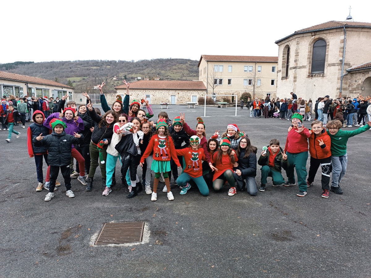 Chaque niveau de classe avait un dress code spécifique pour l'occasion : lutin, sapin, bonhomme de neige et renne. Les professeurs se sont quant à eux tranformés en père ou mère Noël.