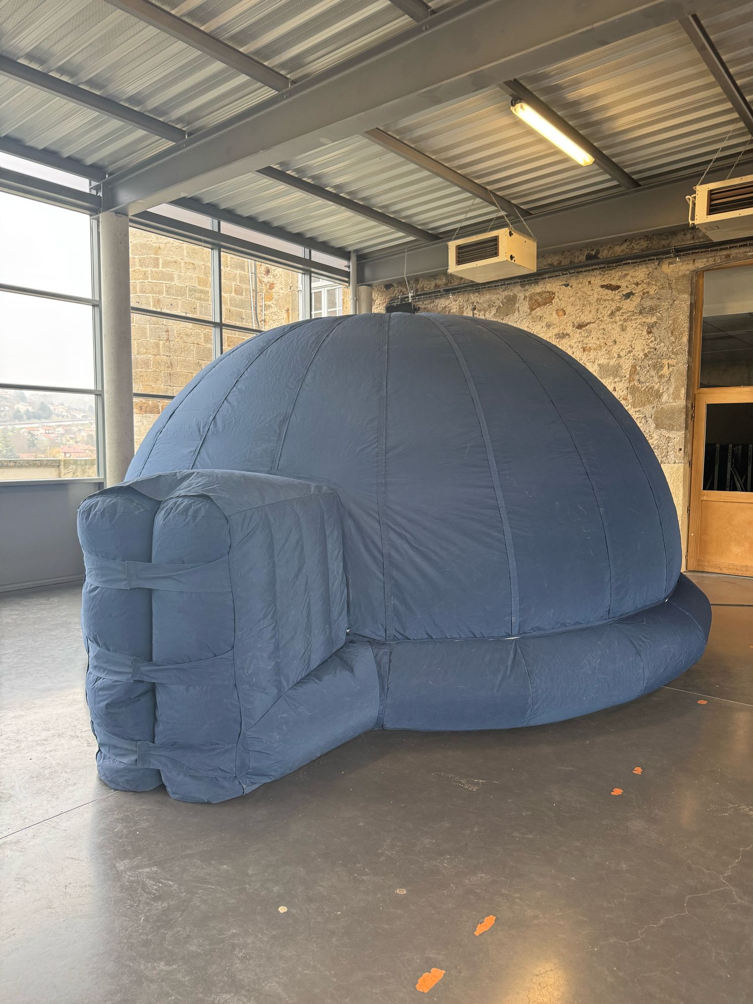 Après avoir préparé l'intervention en classe avec M. Arnaud, les élèves ont été initié à l'astronomie par M. Ledeuil, médiateur scientifique qui est venu au collège. Ce fut l'occasion pour eux de déambuler dans un dôme installé à cet effet et d'échanger sur les étoiles, planètes et autres astres. Le projet se prolonge en arts plastiques avec Mme Crespy. Ainsi, des réalisations sont en cours, seront exposées au CDI par Mme Brun et présentées lors d'une journée de restitution, le 23 mai, à la DDEC de Clermont-Ferrand.
