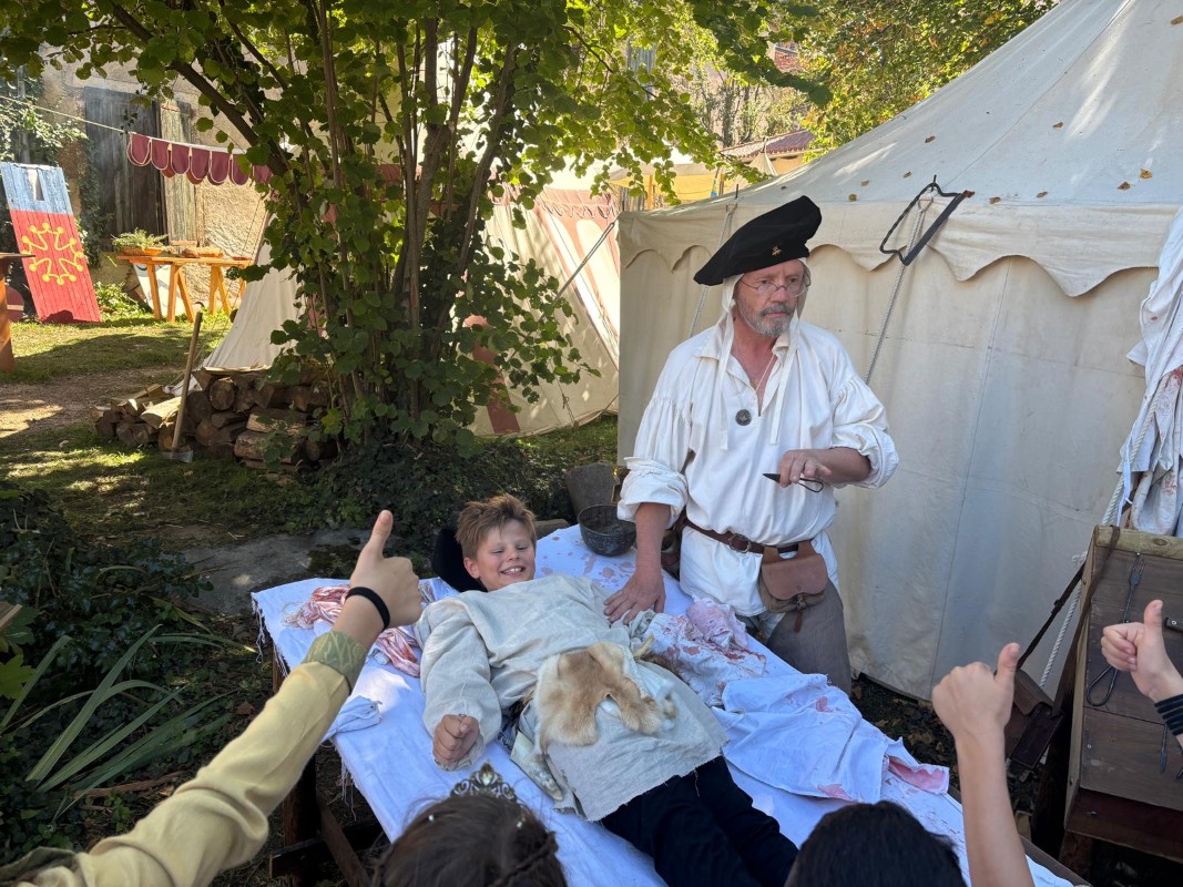 Au fil de divers ateliers – tels que le street art médiéval, la forge, la confection de blasons ou encore les métiers d’antan – les enfants ont pu plonger dans les traditions de l’époque. Ils ont eu l’occasion de rencontrer François Ier, qui leur a fait découvrir la cérémonie de l’adoubement, ainsi que des médecins aux pratiques pour le moins surprenantes.