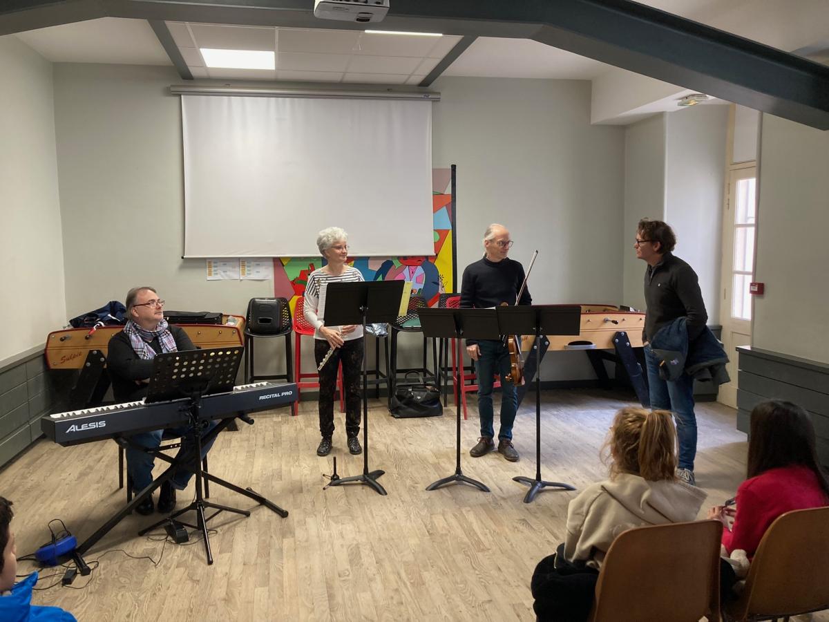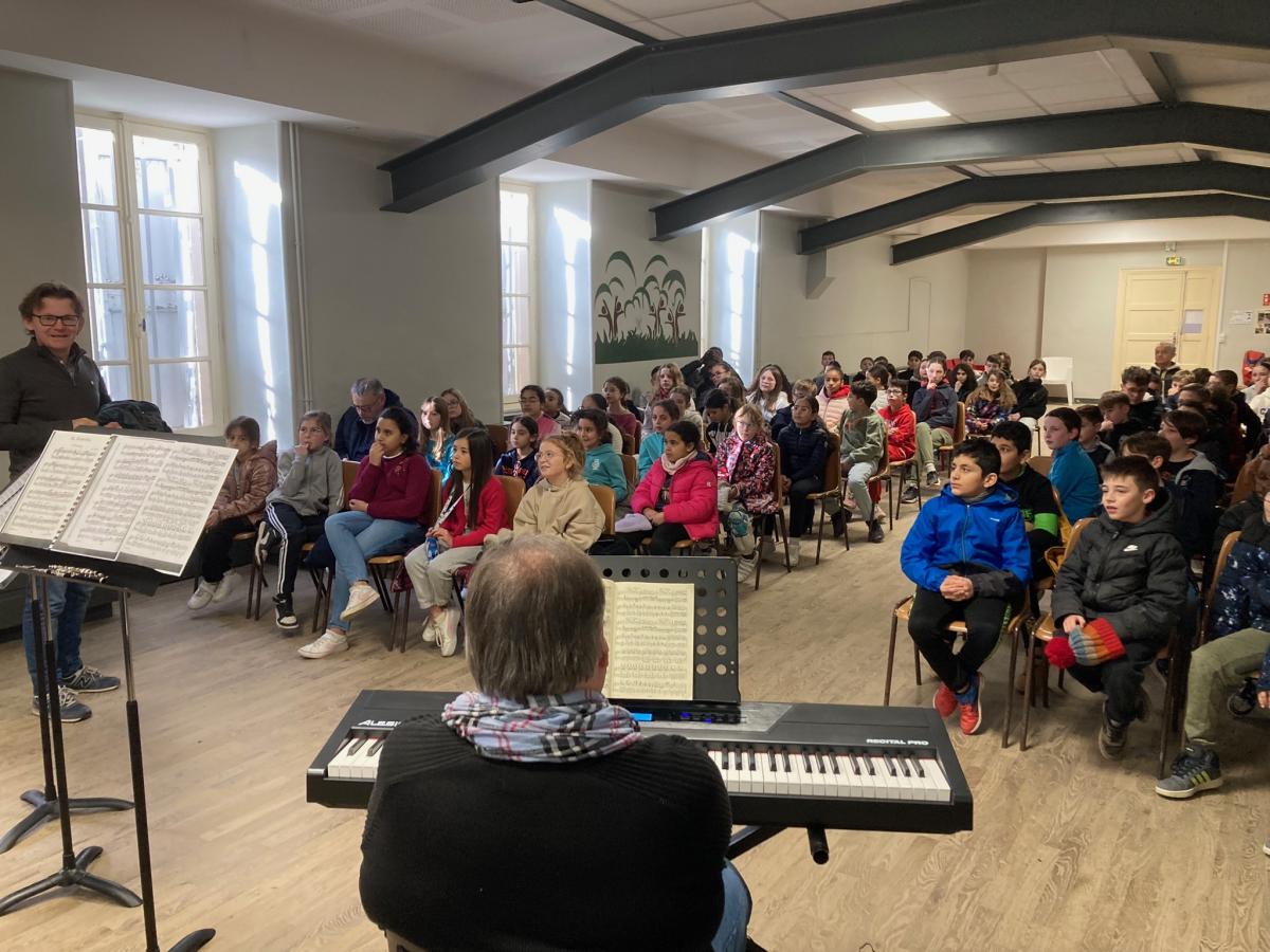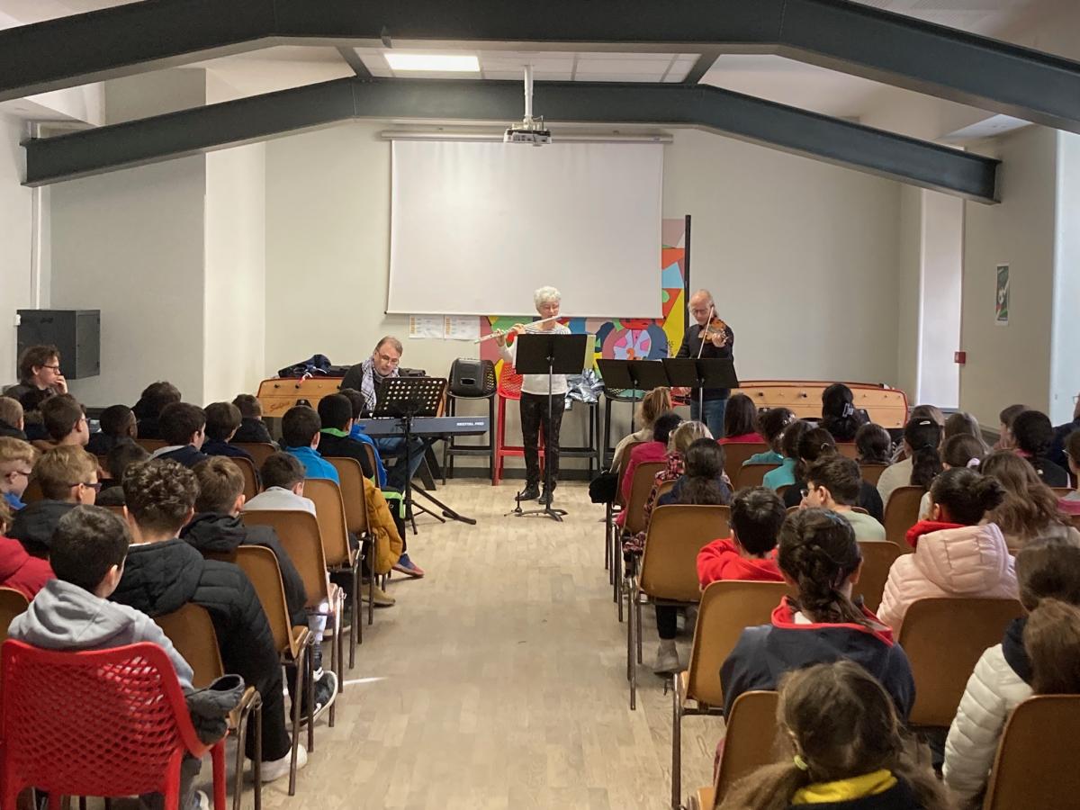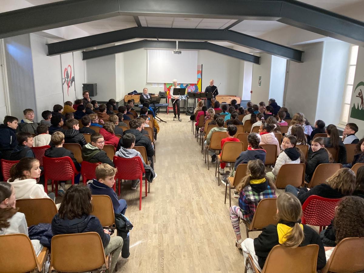 En effet, Messieurs Schmitt (clavier) et Rossbach (violon), Madame Verdier (flûte traversière) ont fait découvrir aux élèves des CM2 de Saint-Louis et de Sainte-Thérèse l’une des œuvres les plus connues de Mozart, « La flûte enchantée ». Entre les extraits musicaux, Monsieur Rossbach, Allemand d’origine, a conté l’histoire de cet opéra aux enfants, tout en glissant quelques mots de la langue de Goethe dans son récit. Le but étant bien sûr d’initier les enfants à cet art souvent méconnu des plus jeunes, mais aussi de leur faire entendre les sonorités de l’allemand, une langue hélas aujourd’hui bien trop délaissée par les élèves.