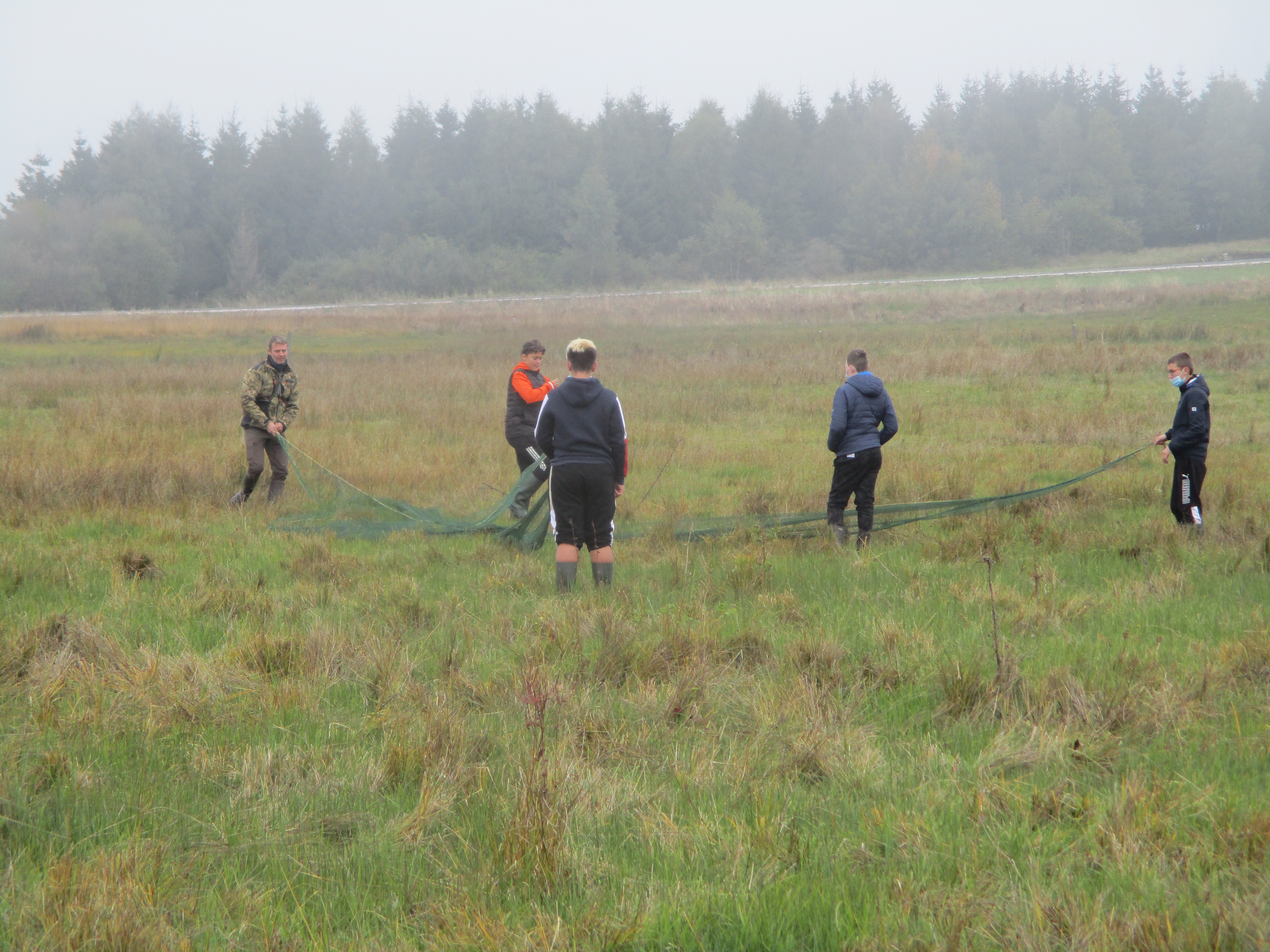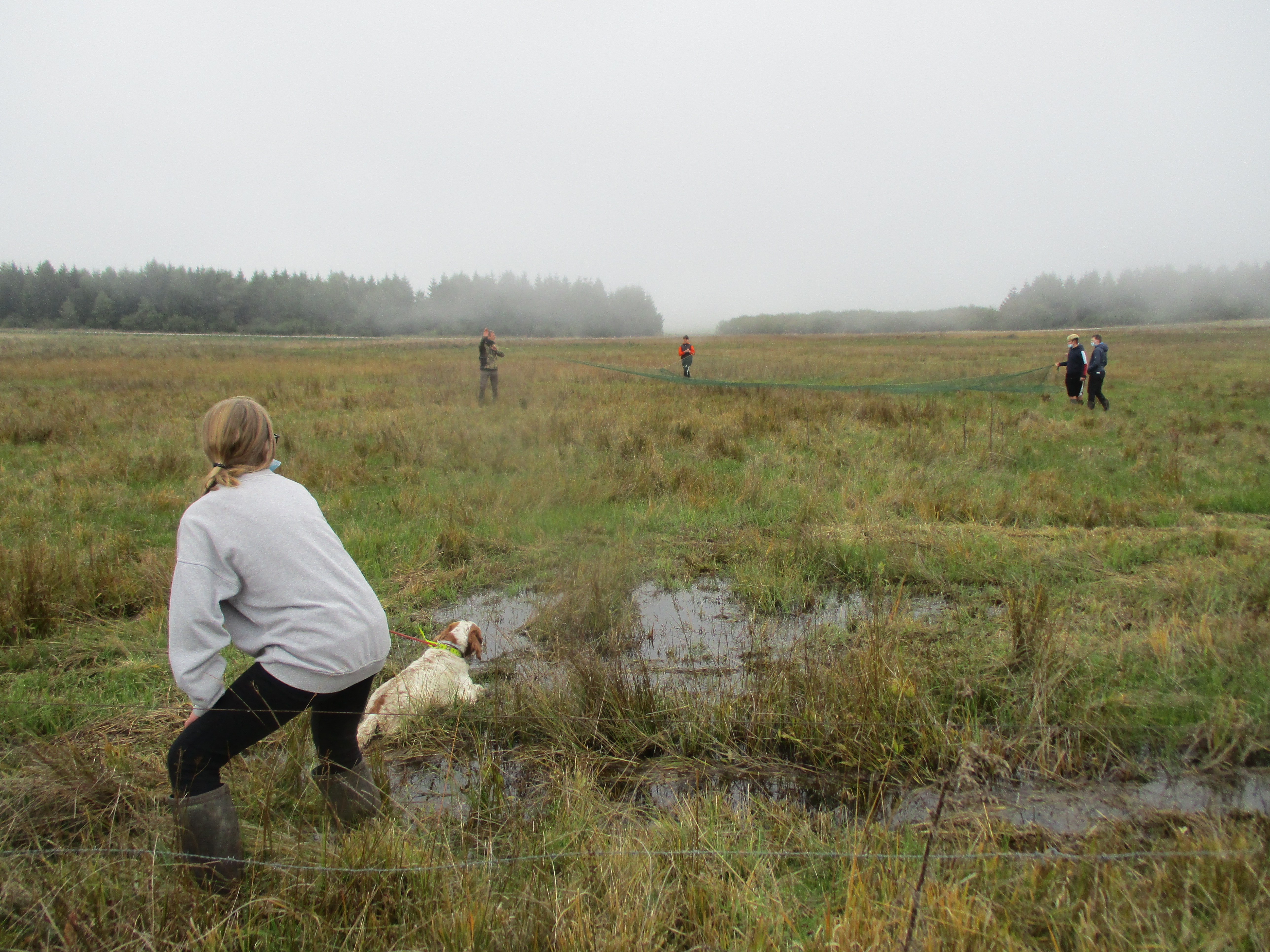 Après un pique-nique bien mérité, les collégiens sont sont élancés sur le marais, accompagnés d'Isis, un Setter Irlandais, pour essayer de capturer cet oiseau malicieux, afin de le baguer et l'étudier.