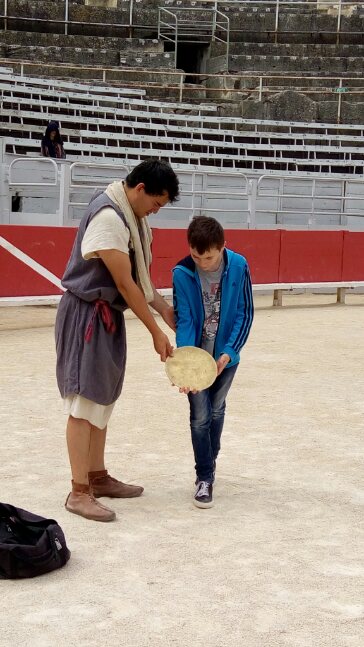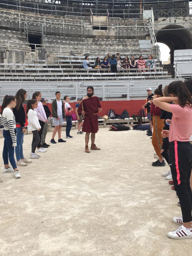 C'est sur la piste centrale de l'amphithéâtre romain d'Arles que les collègiens ont participé à plusieurs activités proposées par laa compagnie ACTA.