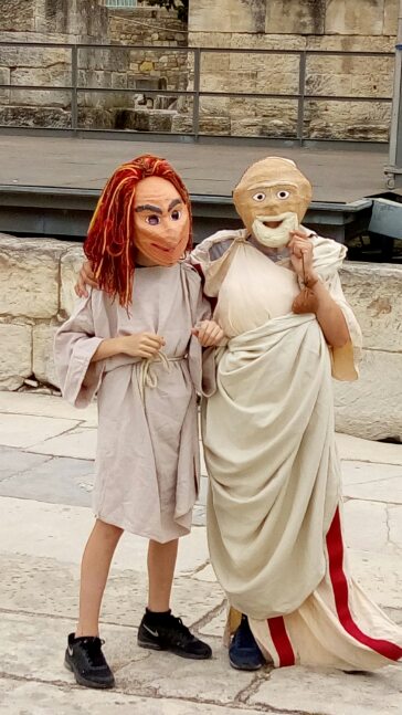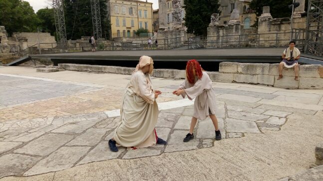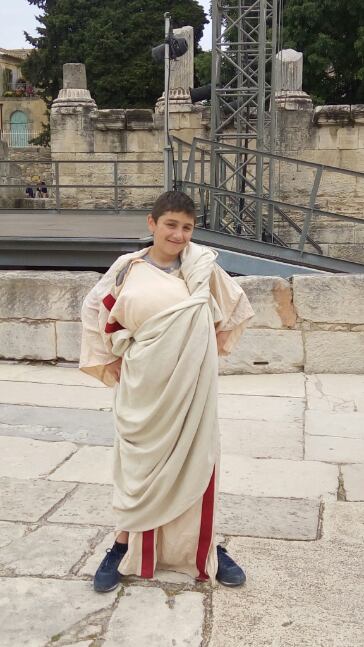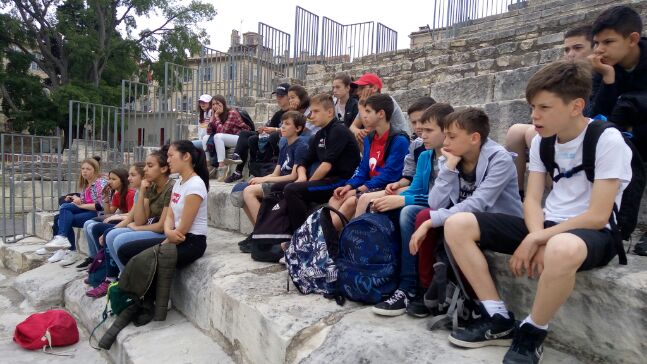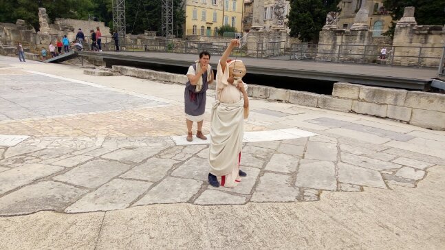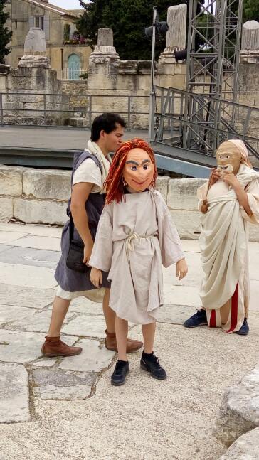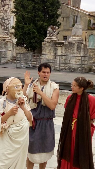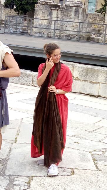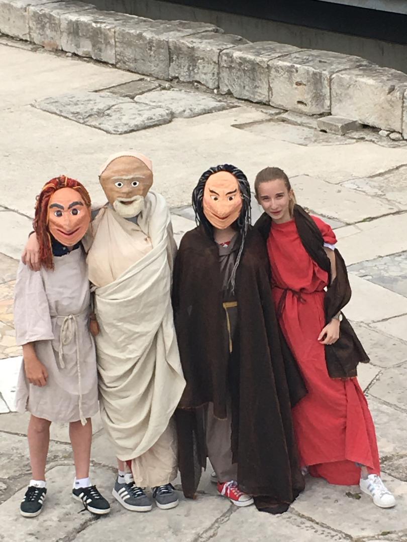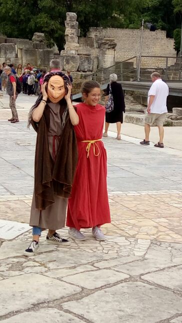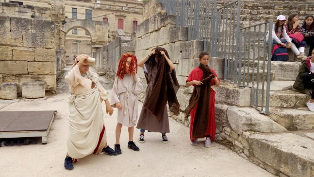 Pour terminer, ils ont assisté une scène théâtrale en habit pour 4 élèves dans le théâtre romain proche des arènes.