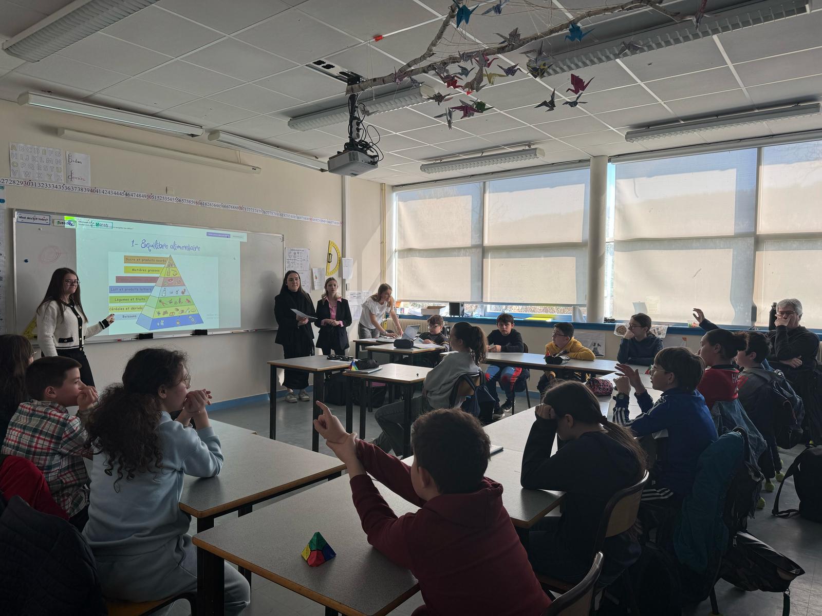 Quatre élèves de Terminale Bac Pro ASSP (Aide Soins et Services à la personne) de l'Ensemble scolaire Saint Jacques de Compostelle, encadrés par notre infirmière scolaire, sont intervenus auprès de 3 classes de 6ème du collège La Chartreuse sur le thème de la "Malbouffe". Les élèves ont pu distinguer les aliments recommandés et ceux à réduire pour un meilleur équilibre alimentaire et repartir avec quelques conseils nutritionnels !