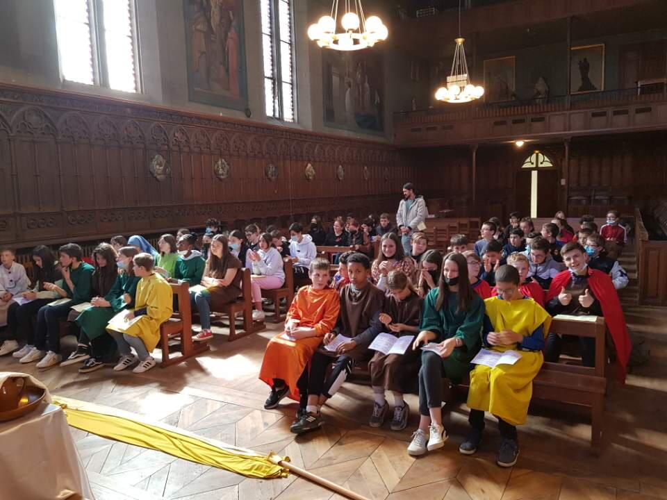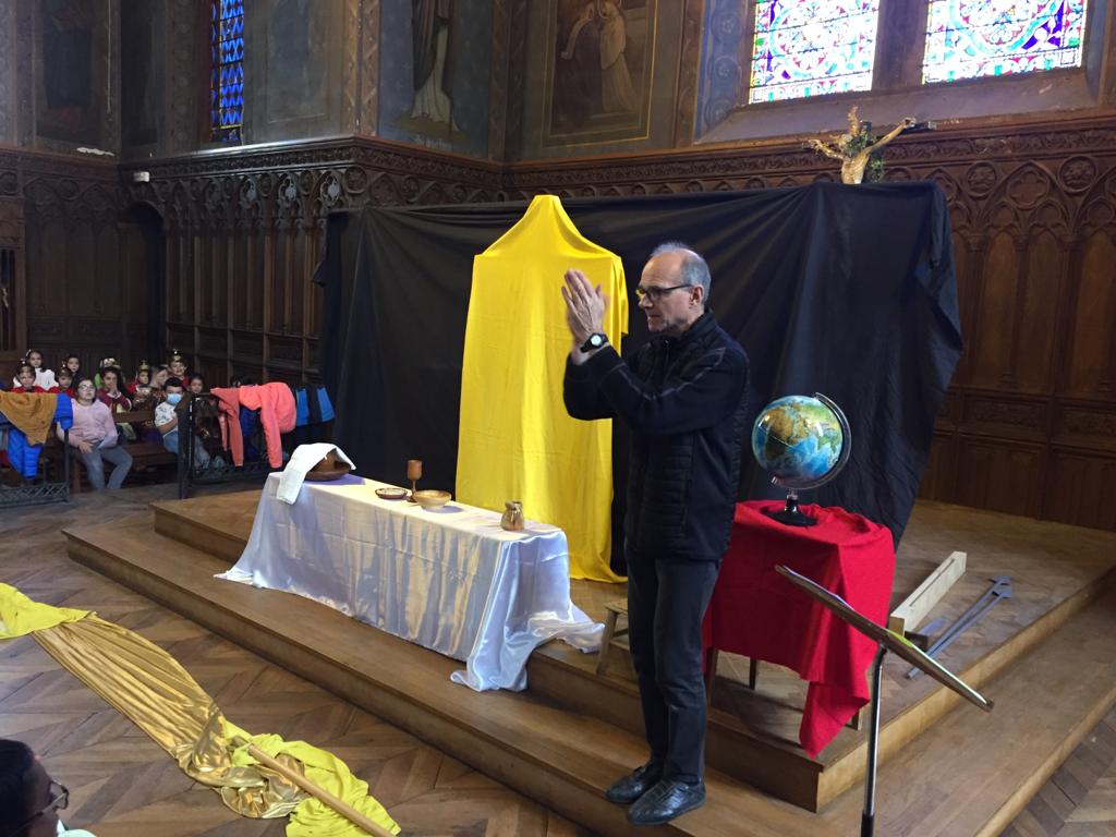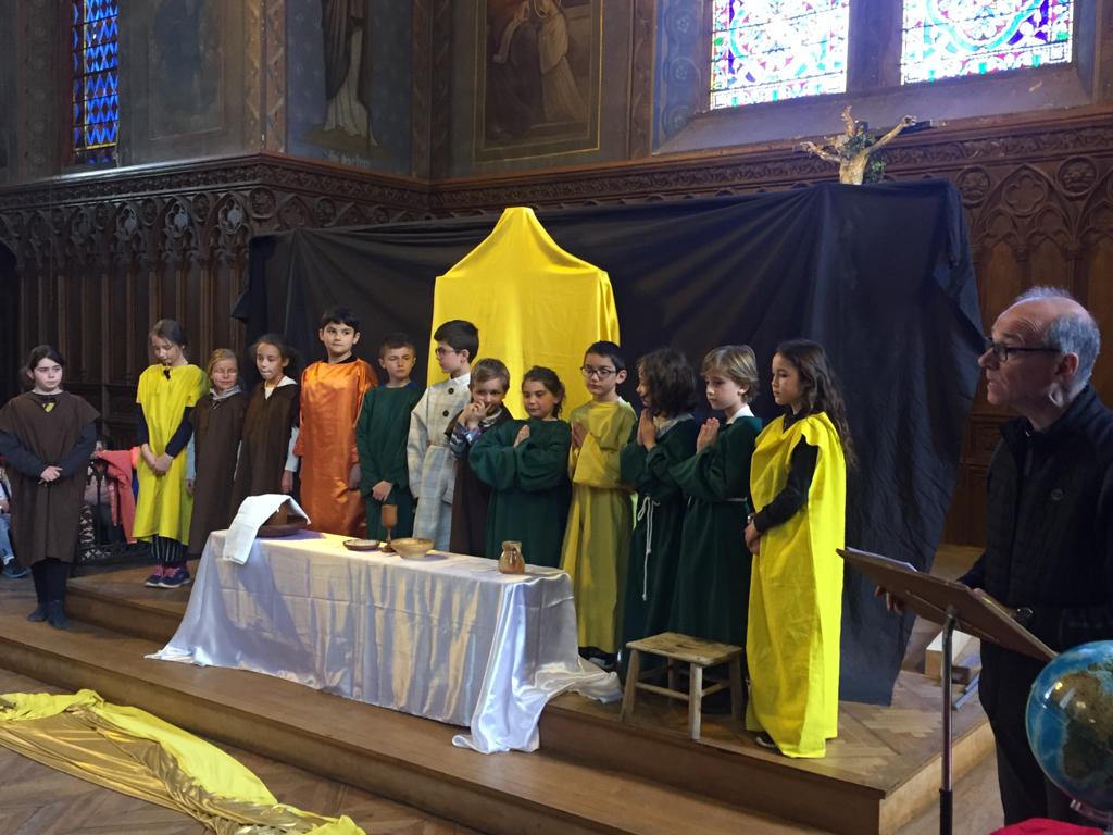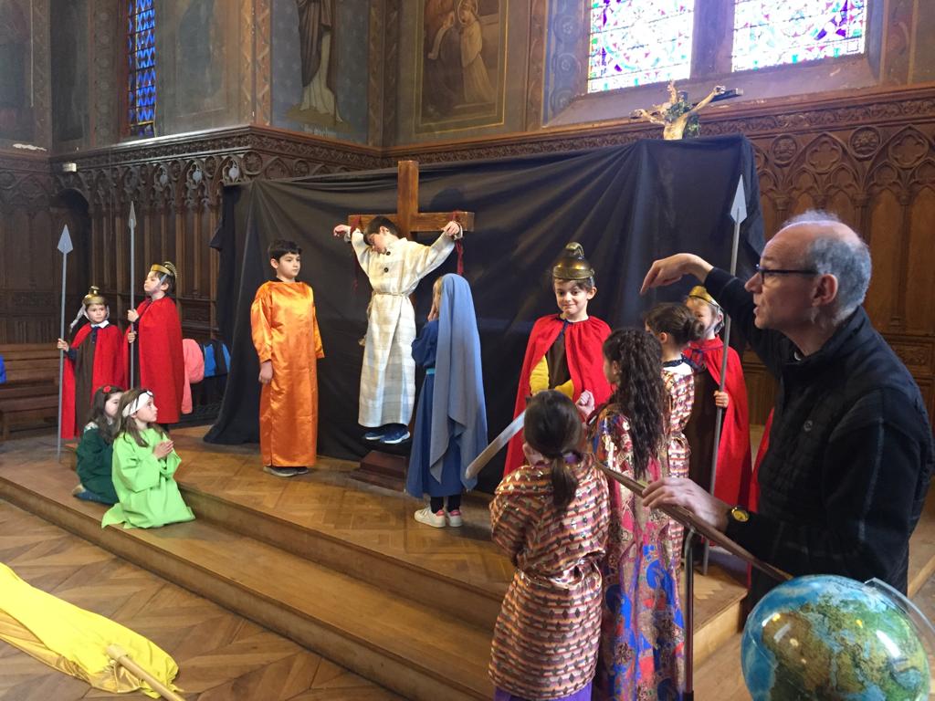 Les écoliers et les collégiens de St Louis ont célébré Pâques avec le Père Trevet et Agnès Jallet.