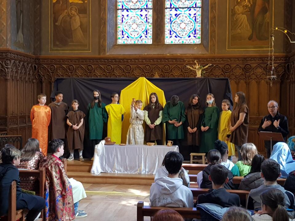 Les élèves de l'école primaire et du collège St Louis ont participé à une célébration juste avant les vacances. Ils ont réalisé des tableaux vivants mettant en scène la Résurrection du Christ.