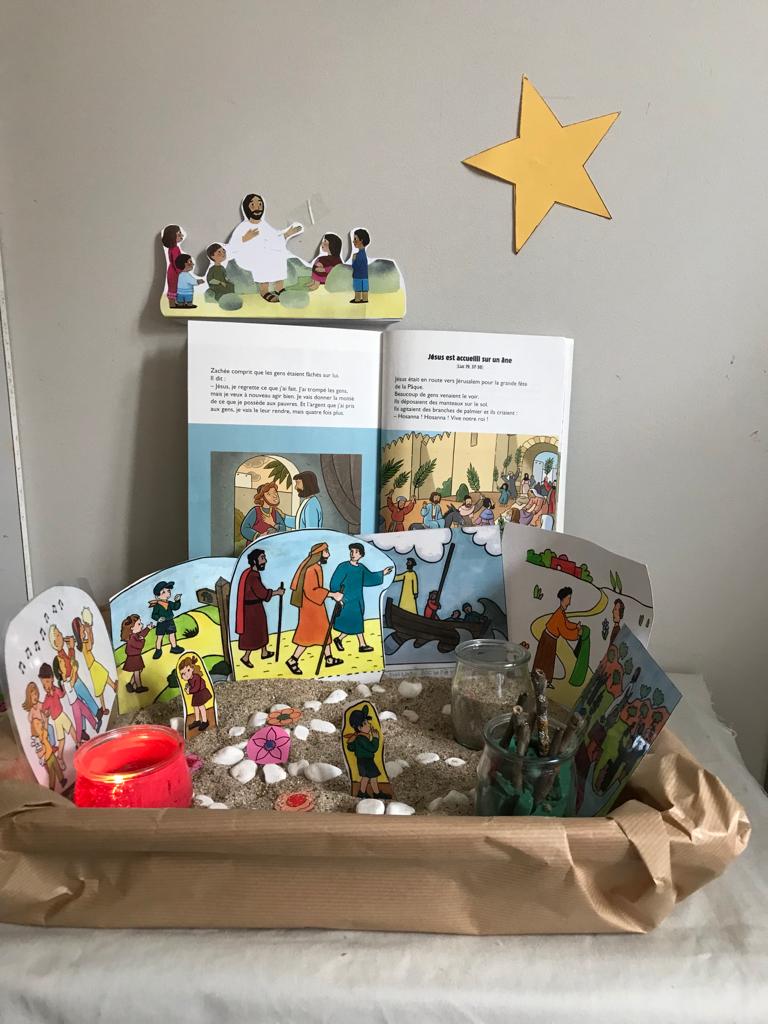 En maternelle, les enseignantes ont réuni les enfants dans la salle d'accueil pour un temps de célébration. Les élèves de petite et moyenne sections ont également confectionné un "chemin vers Pâques".