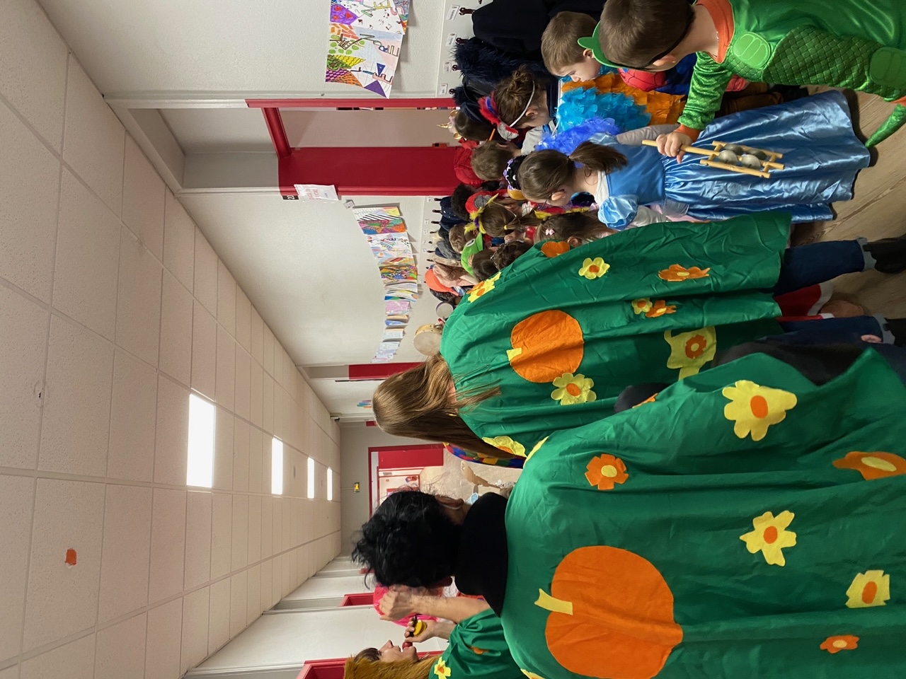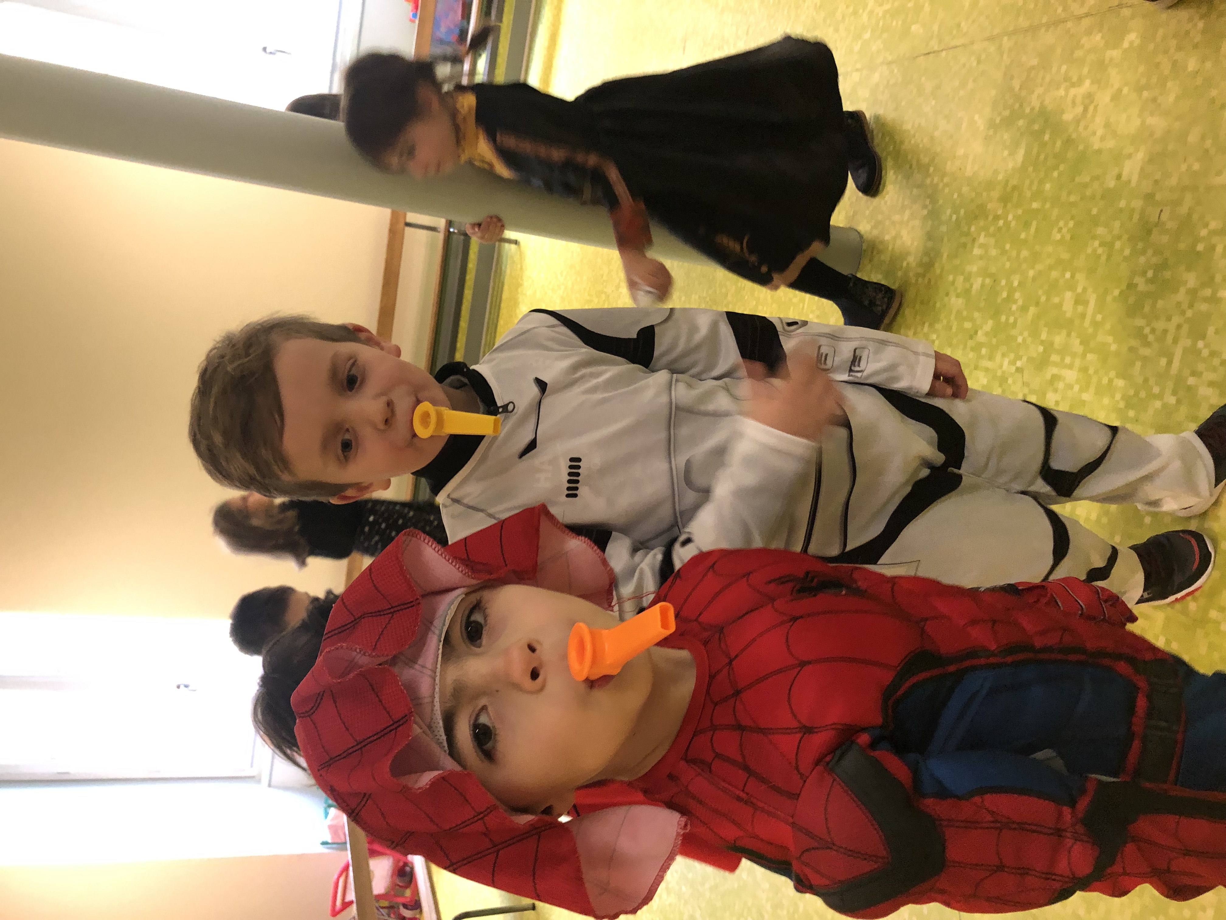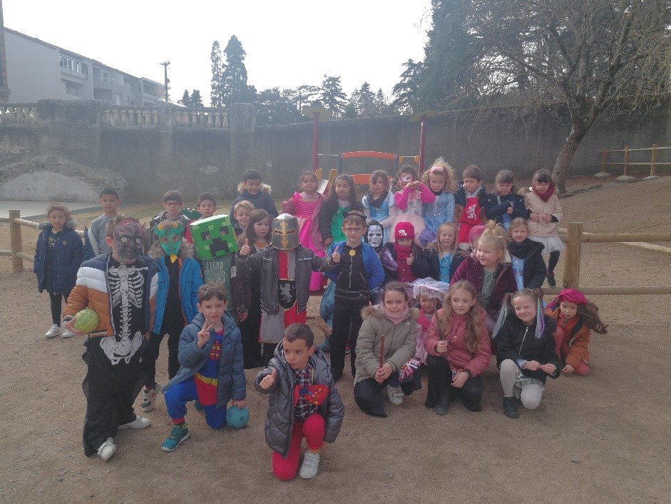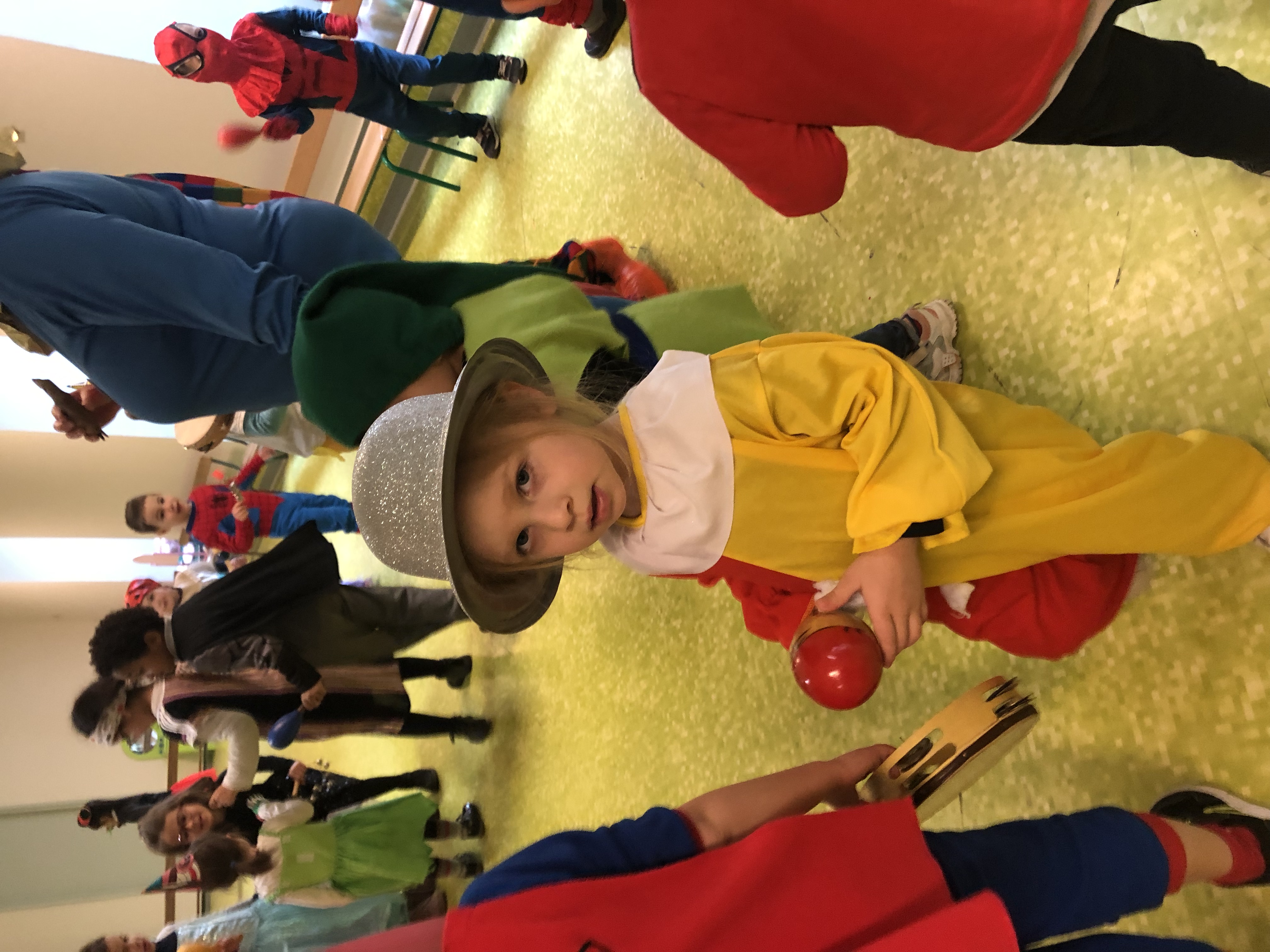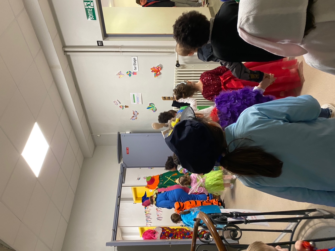 Les classes de maternelle ainsi que les CP et les CE1 ont enfilé leurs costumes de super héros, princesses et autres animaux pour déambuler dans les couloirs de l’école et du collège au son des cymbales, maracas et autres instruments !