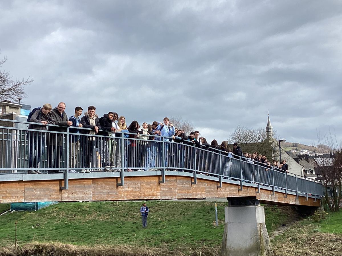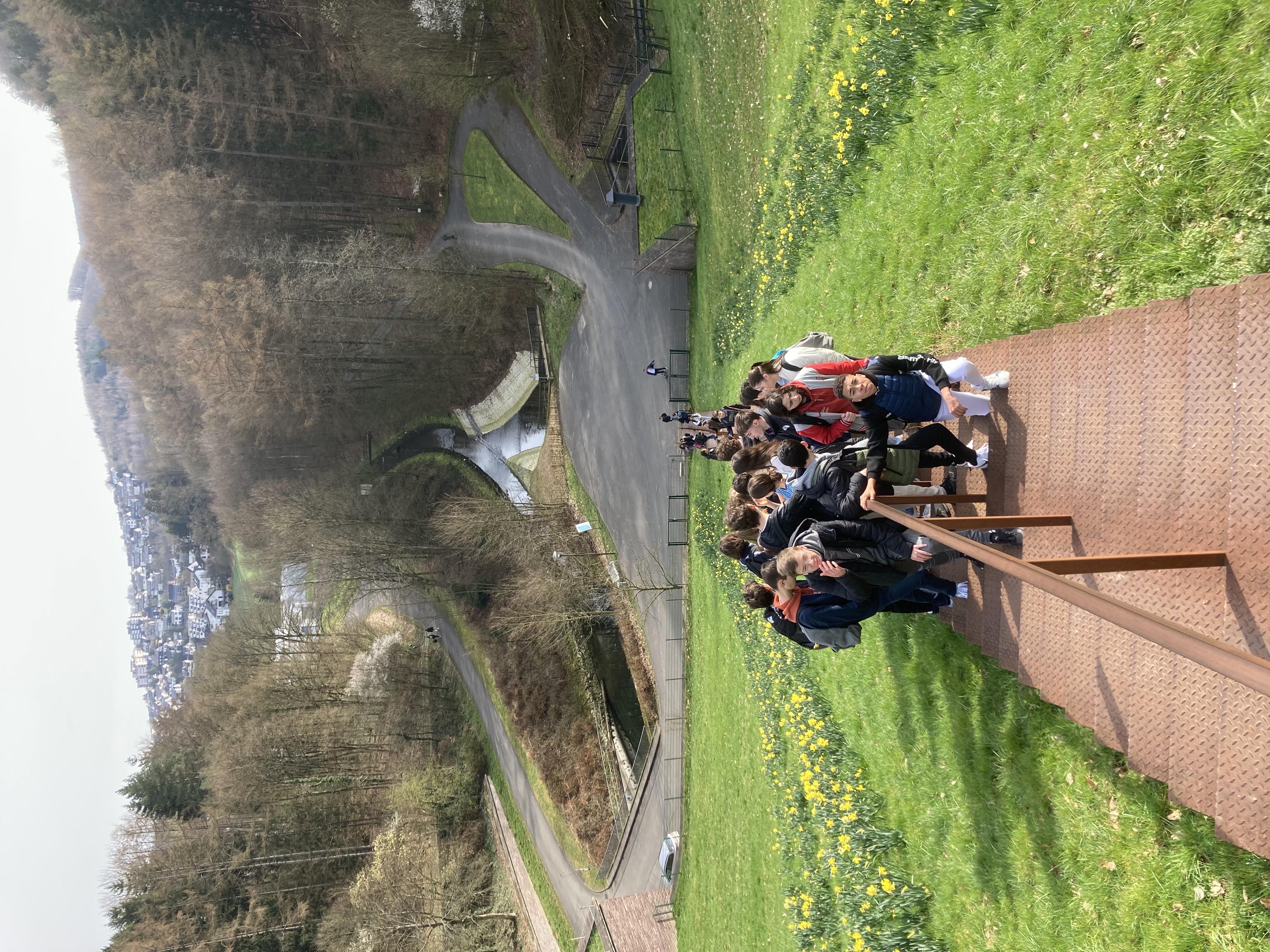 "Mercredi : journée sportive. Après deux heures de cours, nous sommes allés au lac, Hennesee, un barrage qui sert de réserve d’eau pour la ville. Nous avons gravi les 328 marches de « l’escalier vers le ciel », Himmelstreppe, pour admirer la ville d’en haut. Ensuite, petite balade dans Meschede et une olympiade l’après-midi."