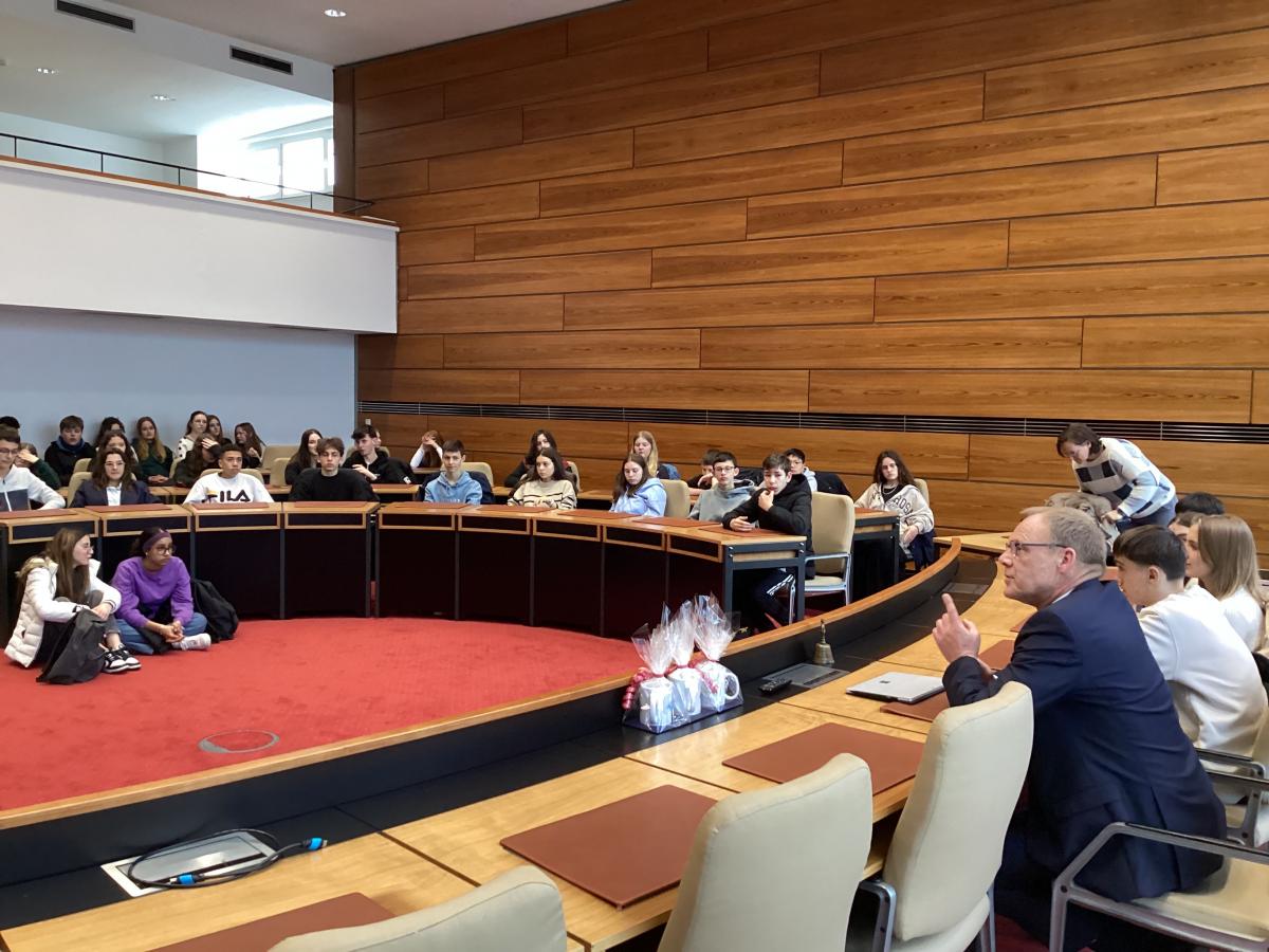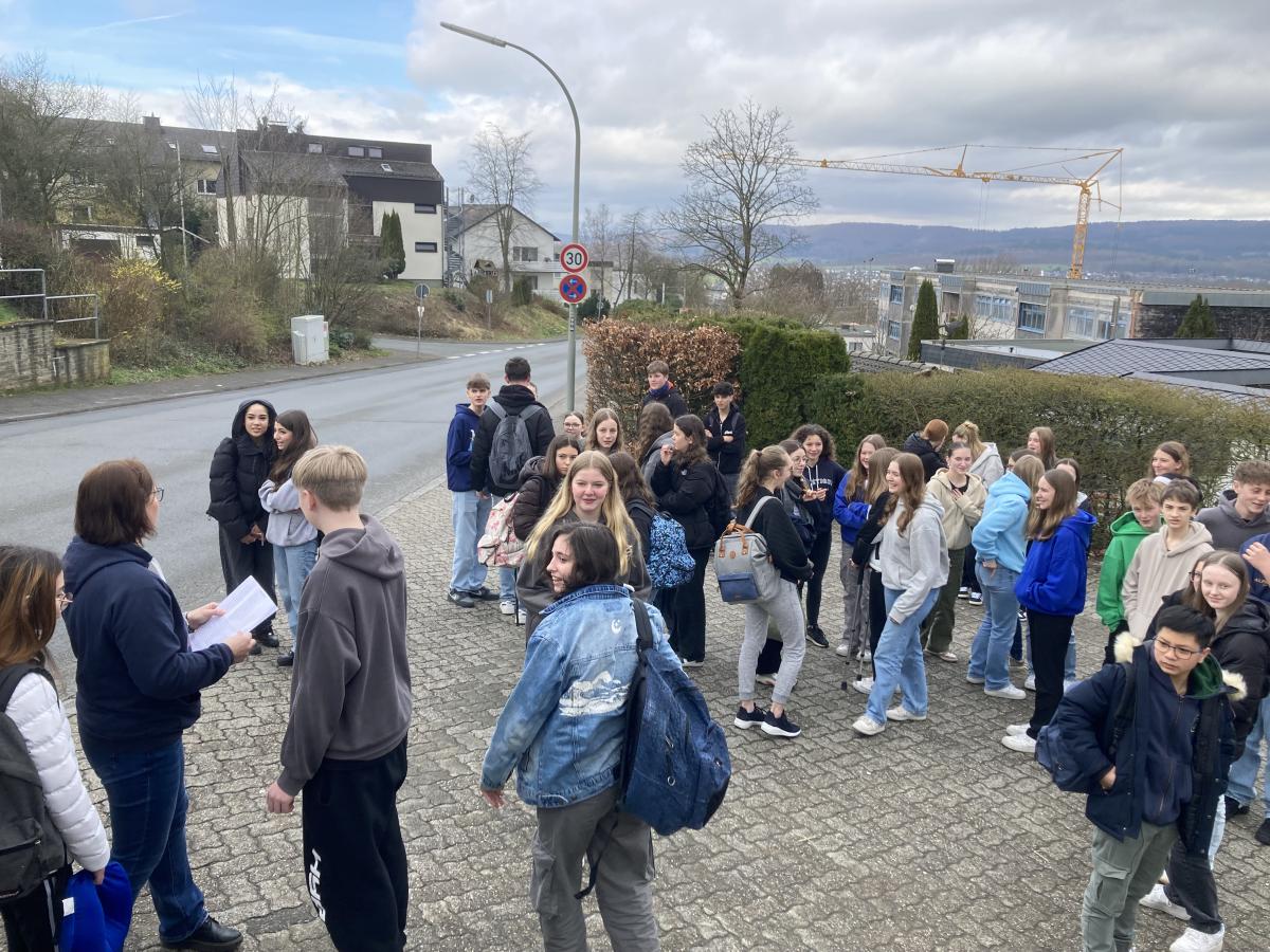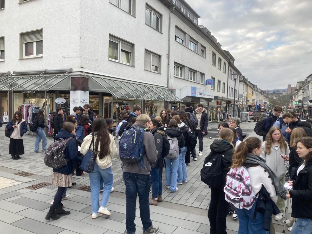"Après un week-end formidable passé en famille, nous avons retrouvé nos élèves ce lundi. Ils ont assisté aux cours toute la matinée, mangé à la cantine, rendu visite à Monsieur Weber, maire de Meschede et ont fait un jeu de piste en groupes de binômes franco-allemands. Une journée bien remplie !"