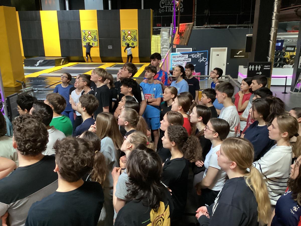 "Mardi : journée à Dortmund. Après un moment de belle convivialité au Superfly, un parc de trampolines, les jeunes ont fait un peu de shopping dans la zone piétonne avant de se rendre au musée du football ! Ce lieu présente les grands moments de l’équipe allemande, mais aussi des événements internationaux ! Les coupes du monde remportées par l’Allemagne se trouvent dans ce musée."