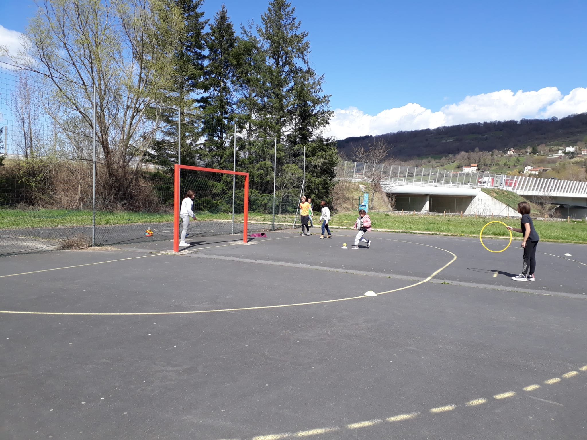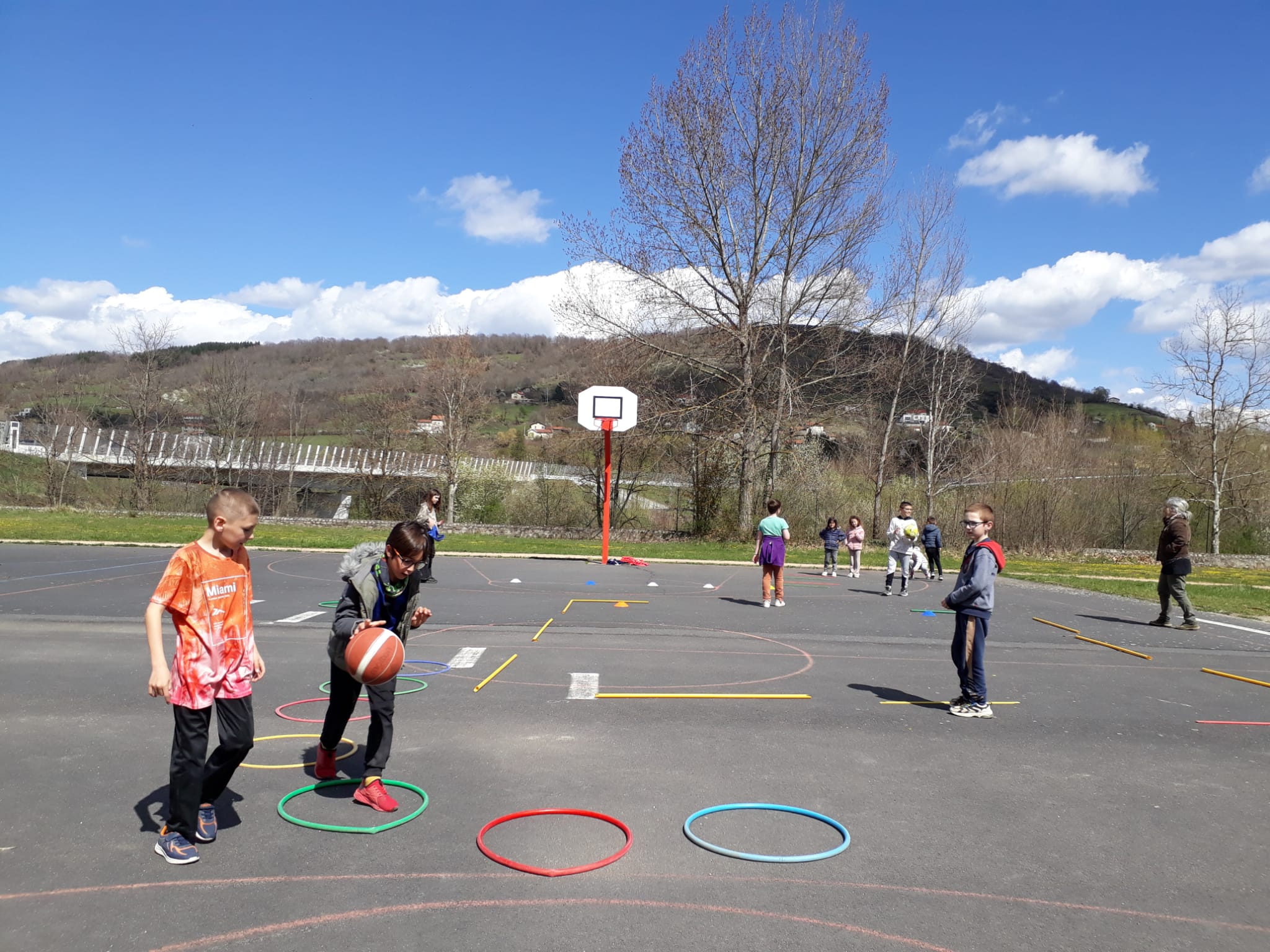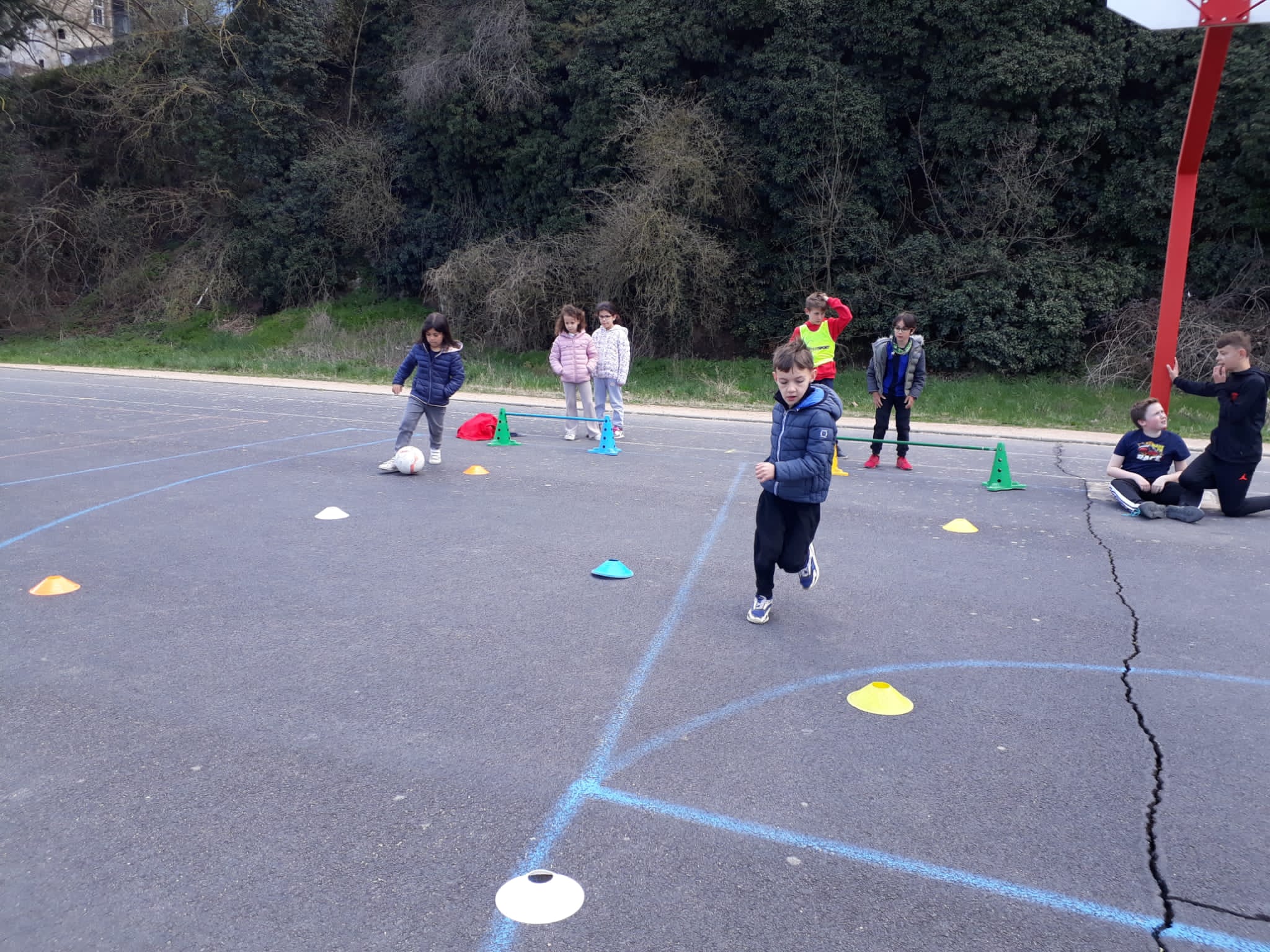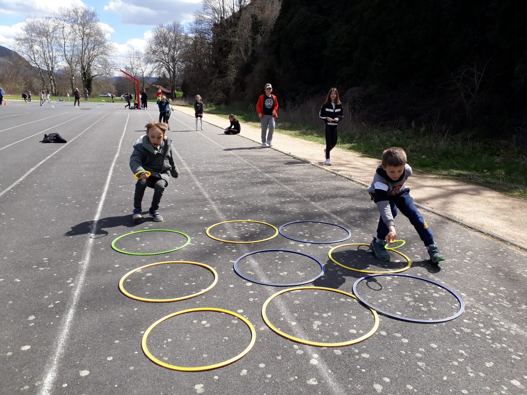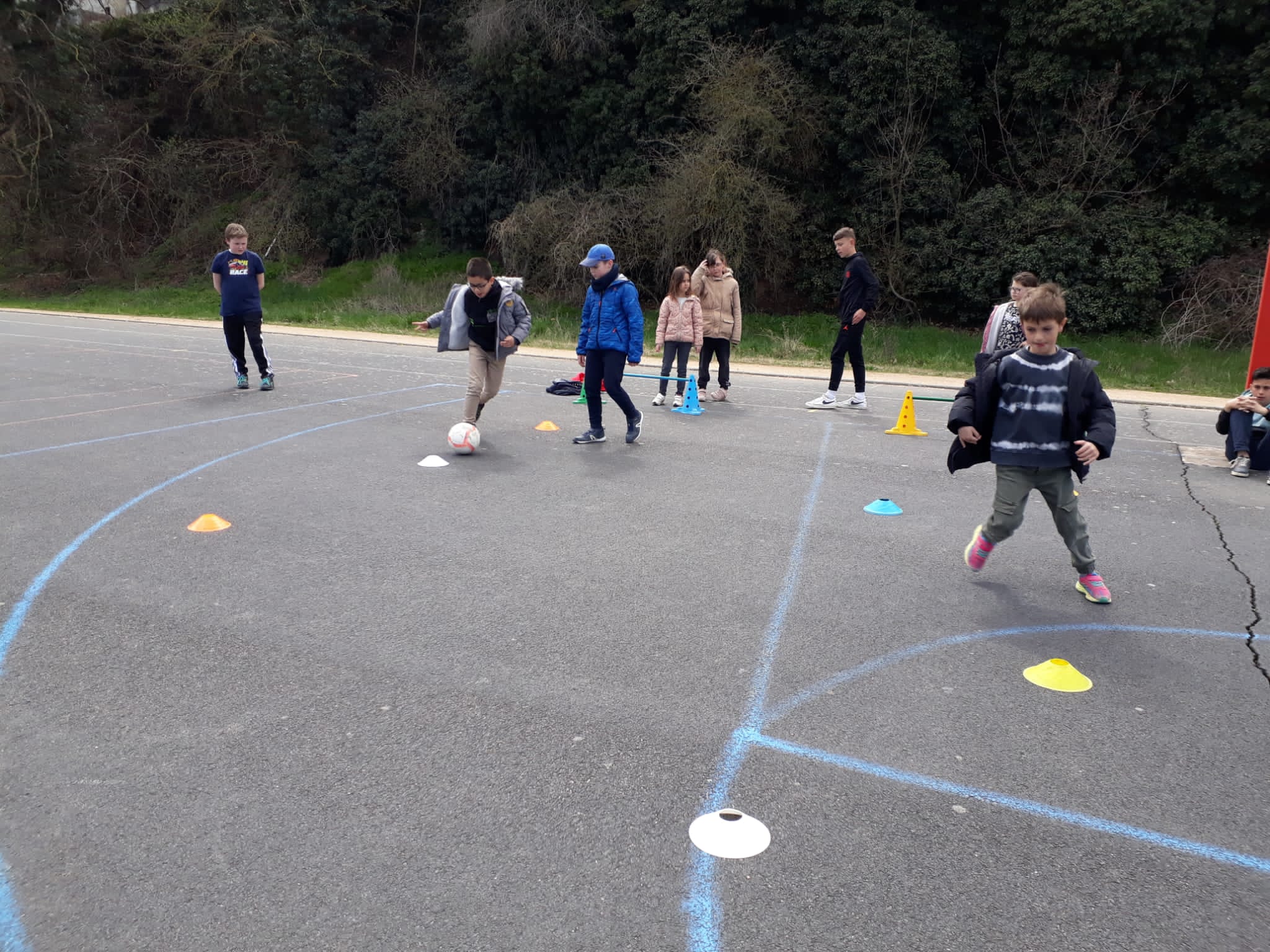 La classe de CM1 CM2 avait organisé des ateliers sportifs pour la classe de CP CE1. Les plus grands encadraient les plus jeunes sur des parcours d'adresse, de lancers... Ce temps convivial s'est terminé par une chasse aux oeufs collective.
