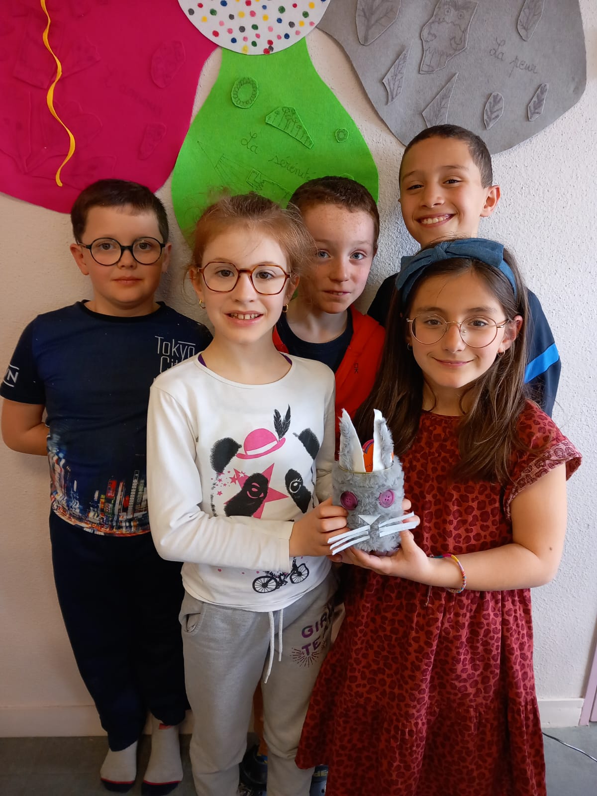 La classe de CE1 CE2 a aussi partagé un moment fort en apportant à chaque classe "son lapin de pensées positives". Chacun avait écrit une belle pensée qu'il souhaitait partager avec ses camarades.