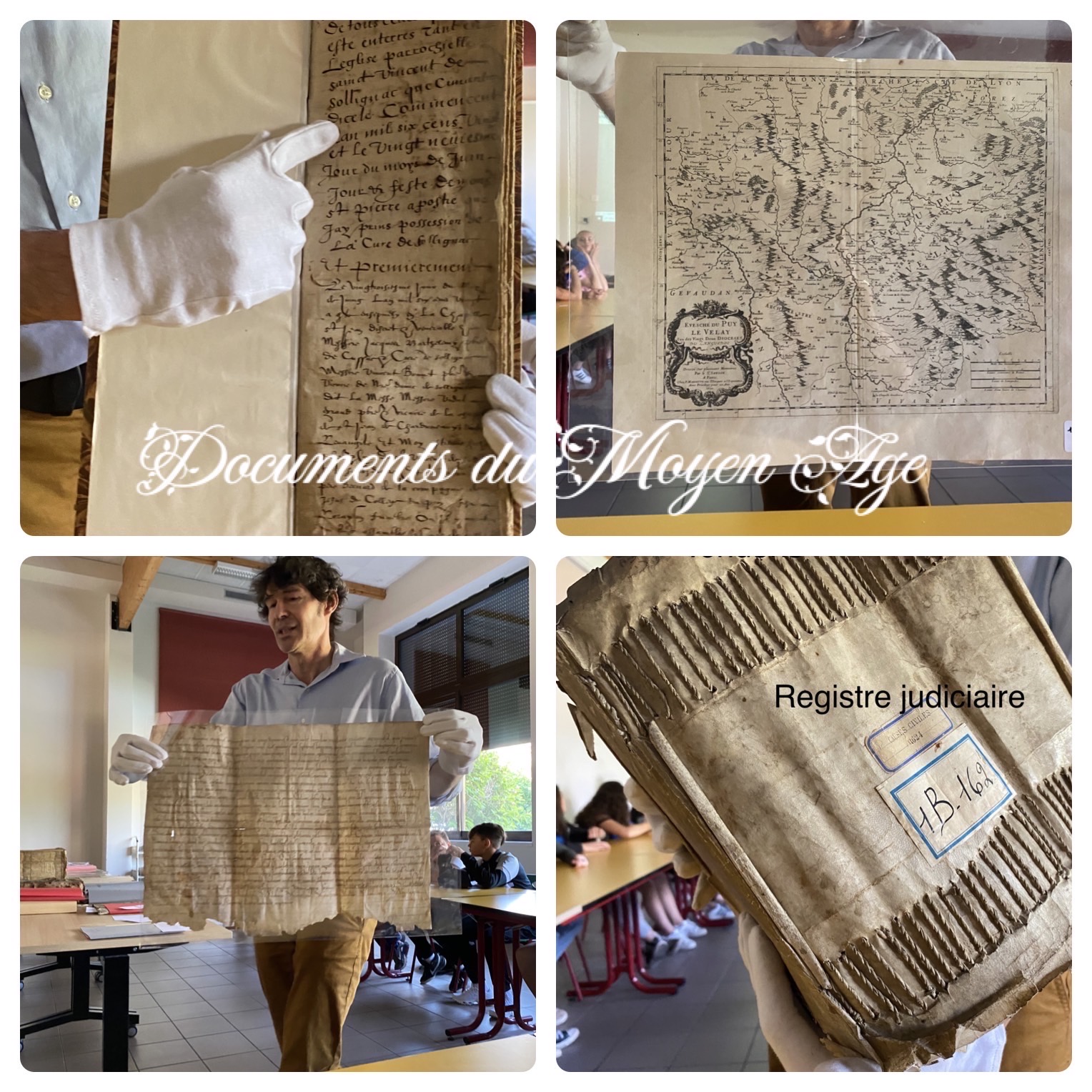 Les élèves ont pu consulter des documents du Moyen-Age en relation avec le programme d'Histoire de cette année. Puis, lors de la visite guidée des Archives, ils ont découvert le patrimoine écrit qui couvre plus de mille ans d’Histoire de la Haute-Loire ainsi que l'une des facettes du rôle et du travail de l'Historien : collecter, conserver et transmettre la mémoire collective.