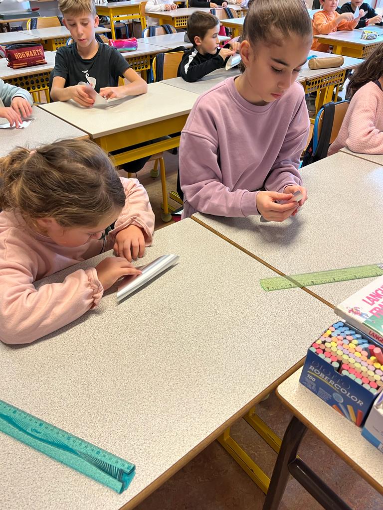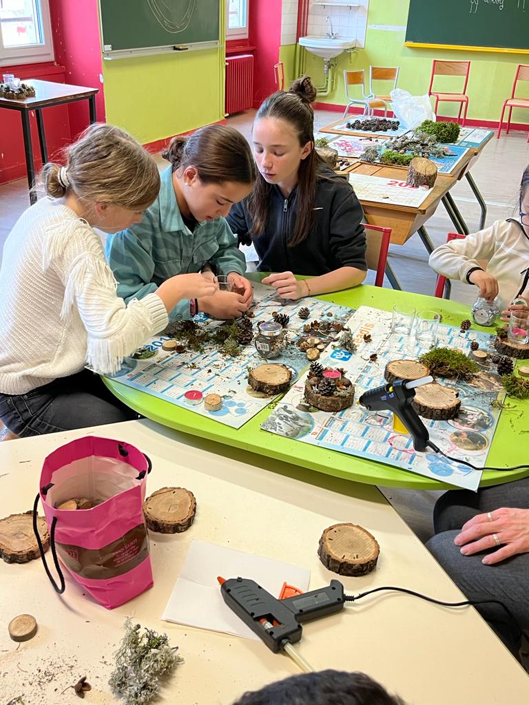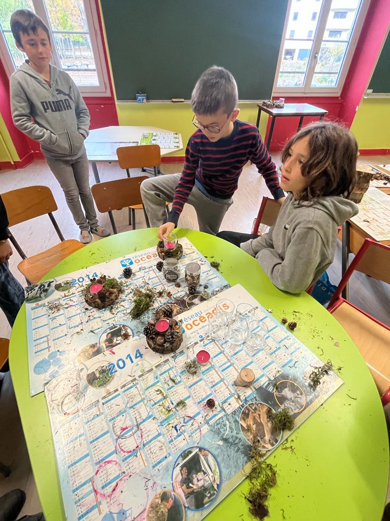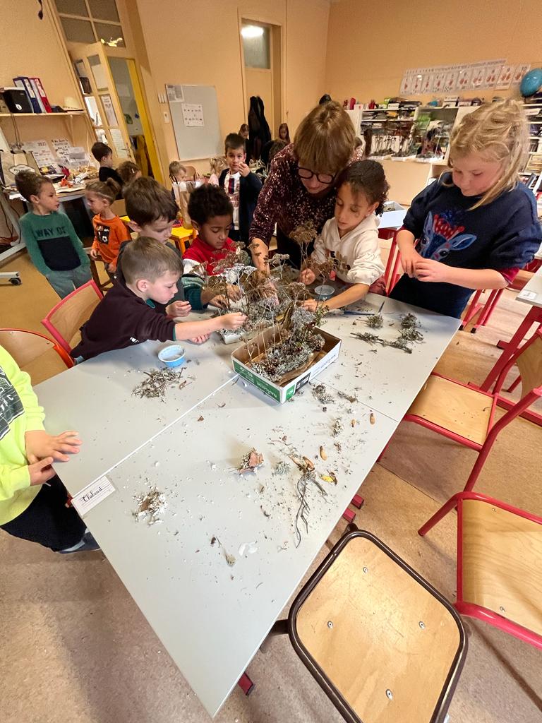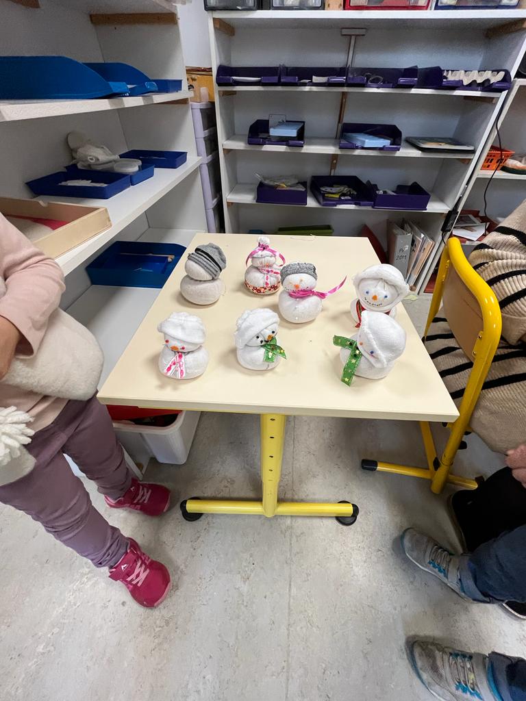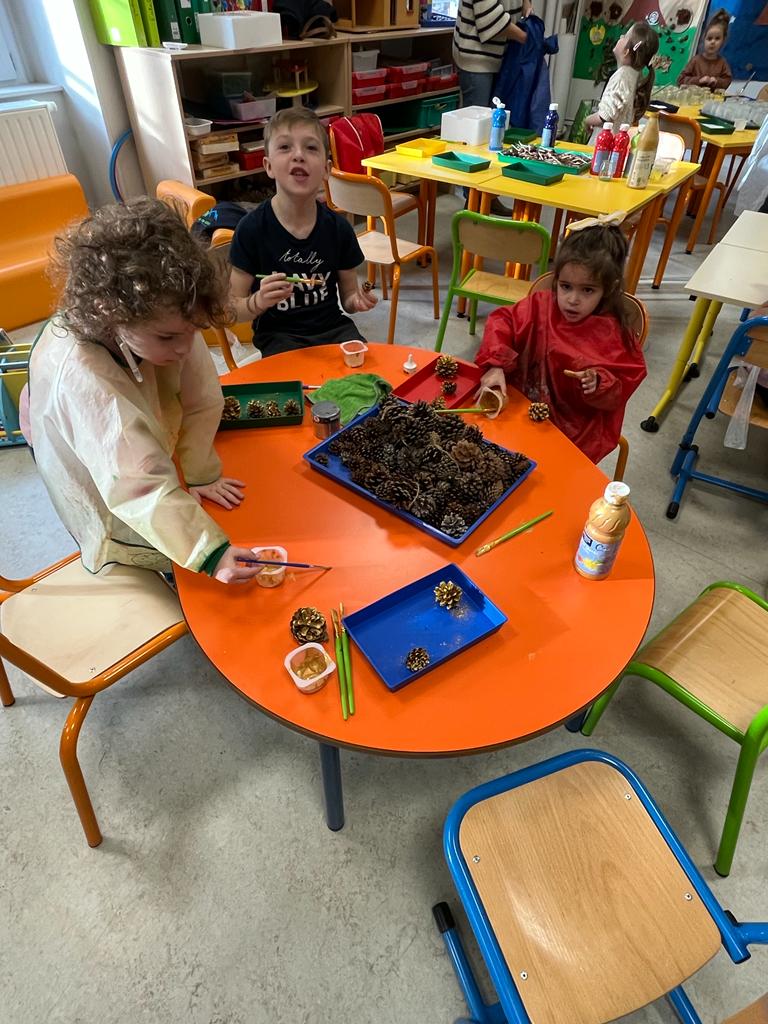 En prévision du marché de Noël prévu le 15 décembre en fin de journée, l'école a invité les parents et grands-parents à venir aider les enfants, le temps d'une demi-journée, à fabriquer les objets vendus ce jour-là. Pour ces ateliers, les classes ont été mélangées : les CM2 sont allés en PS avec également des CP par exemple. A 10h, nous avons bien sûr partagé un petit goûter tous ensemble.