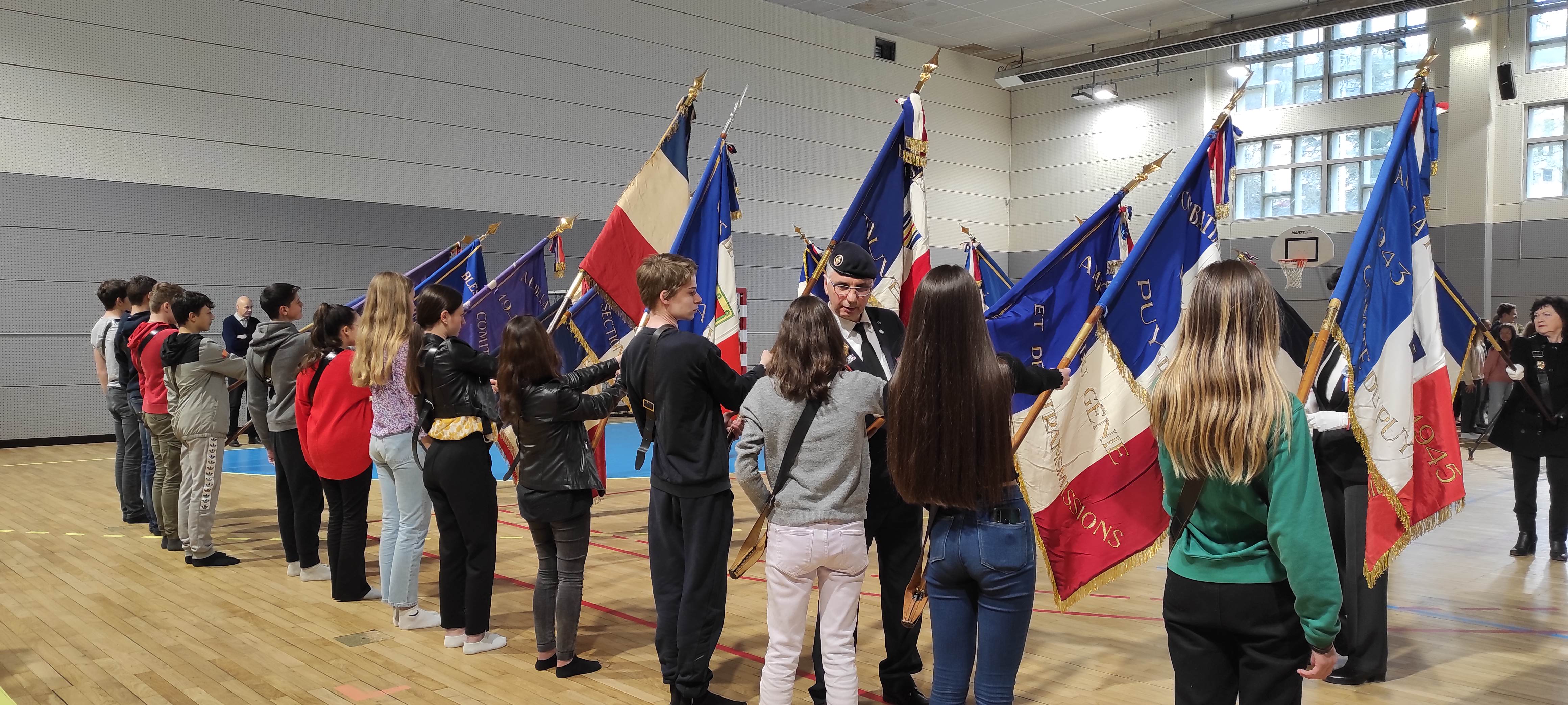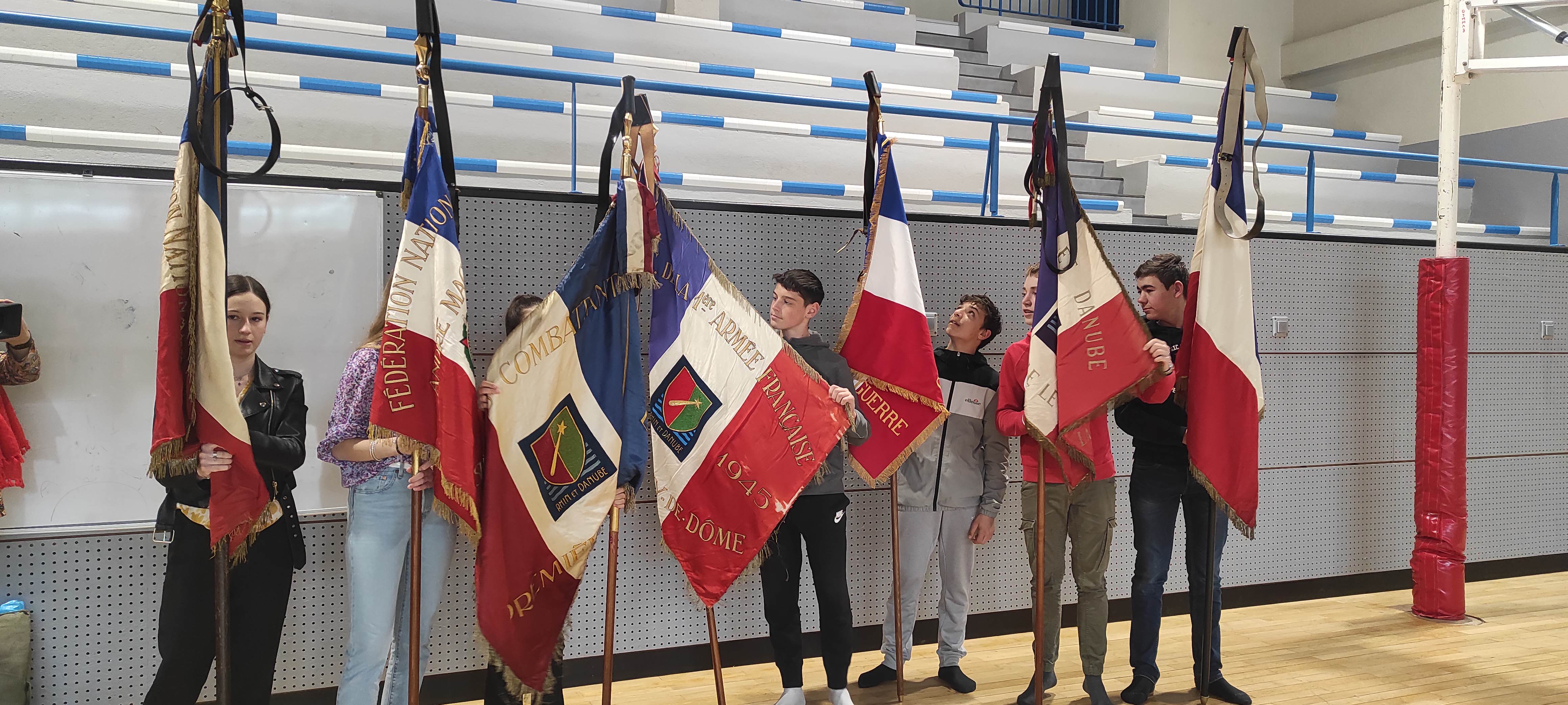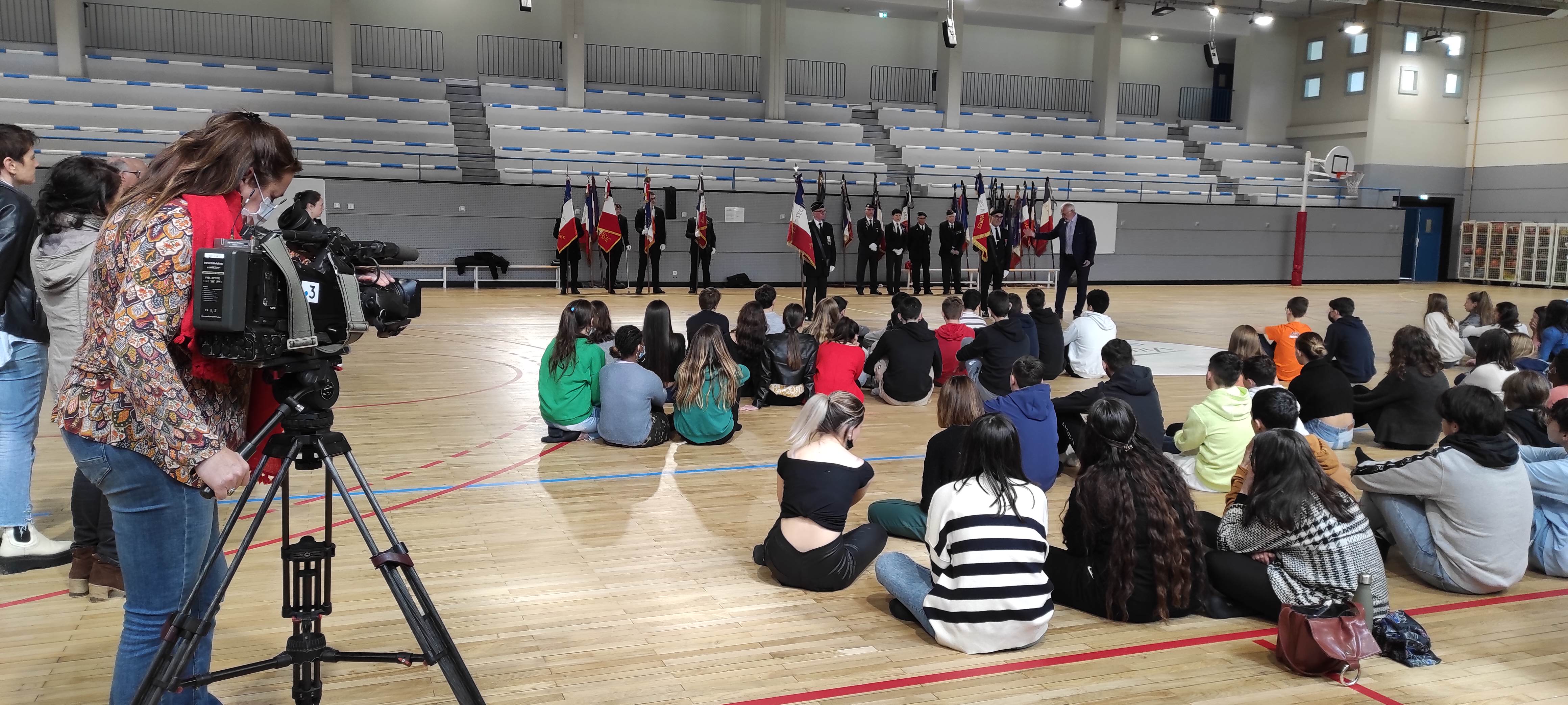 La caméra de France 3 Auvergne est venue filmer l'entrainement très concret de nos élèves de 3ème du Collège St Louis réunis au gymnase du stade Massot sous les conseils avisés de 9 porte-drapeaux du Puy-de-Dôme et de la Haute-Loire. Se mettre au garde-à-vous, marcher en rang, tenir le drapeau, adopter les bonnes postures lors d'une cérémonie... autant d'exercices auxquels se sont pliés les collégiens, avec fierté et reconnaissance !