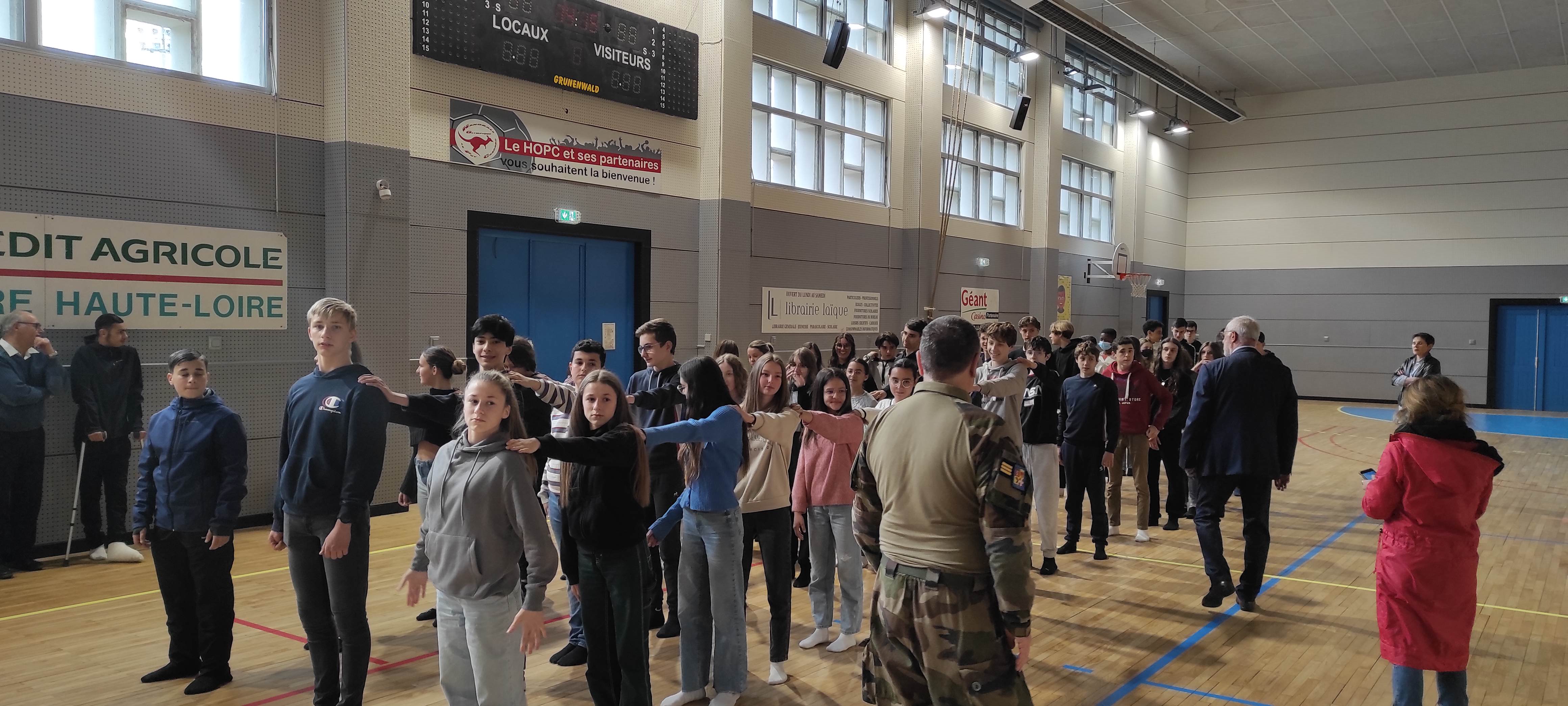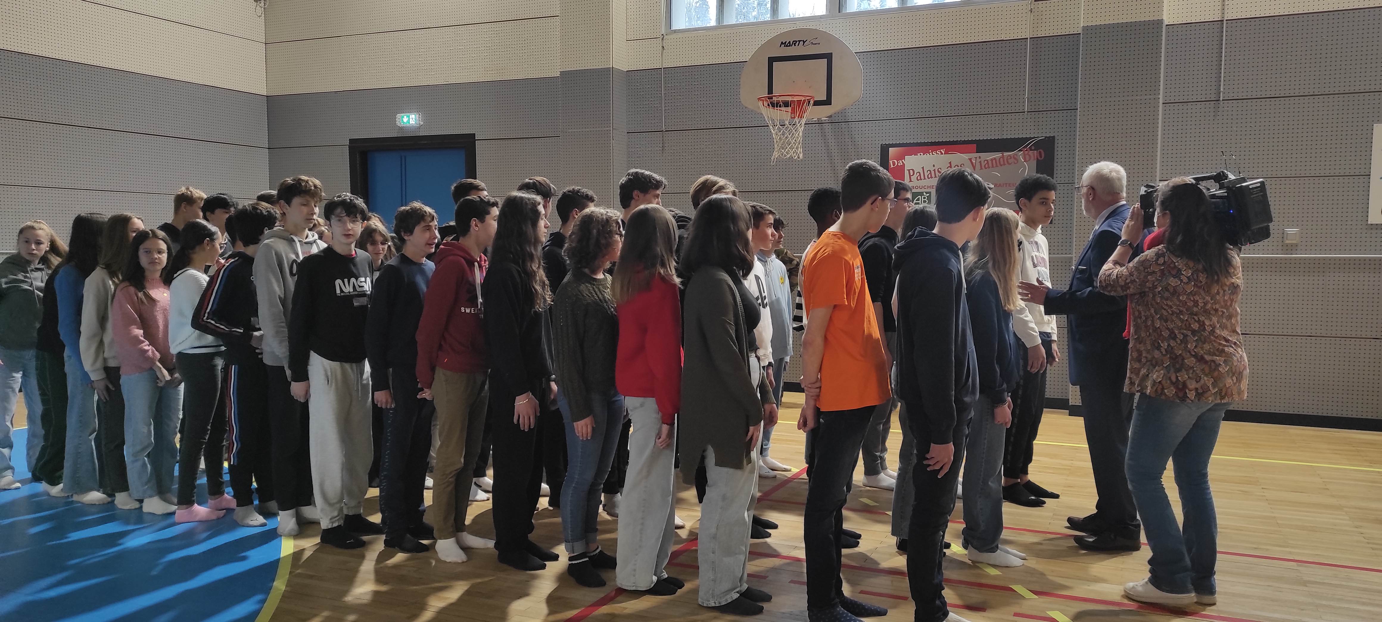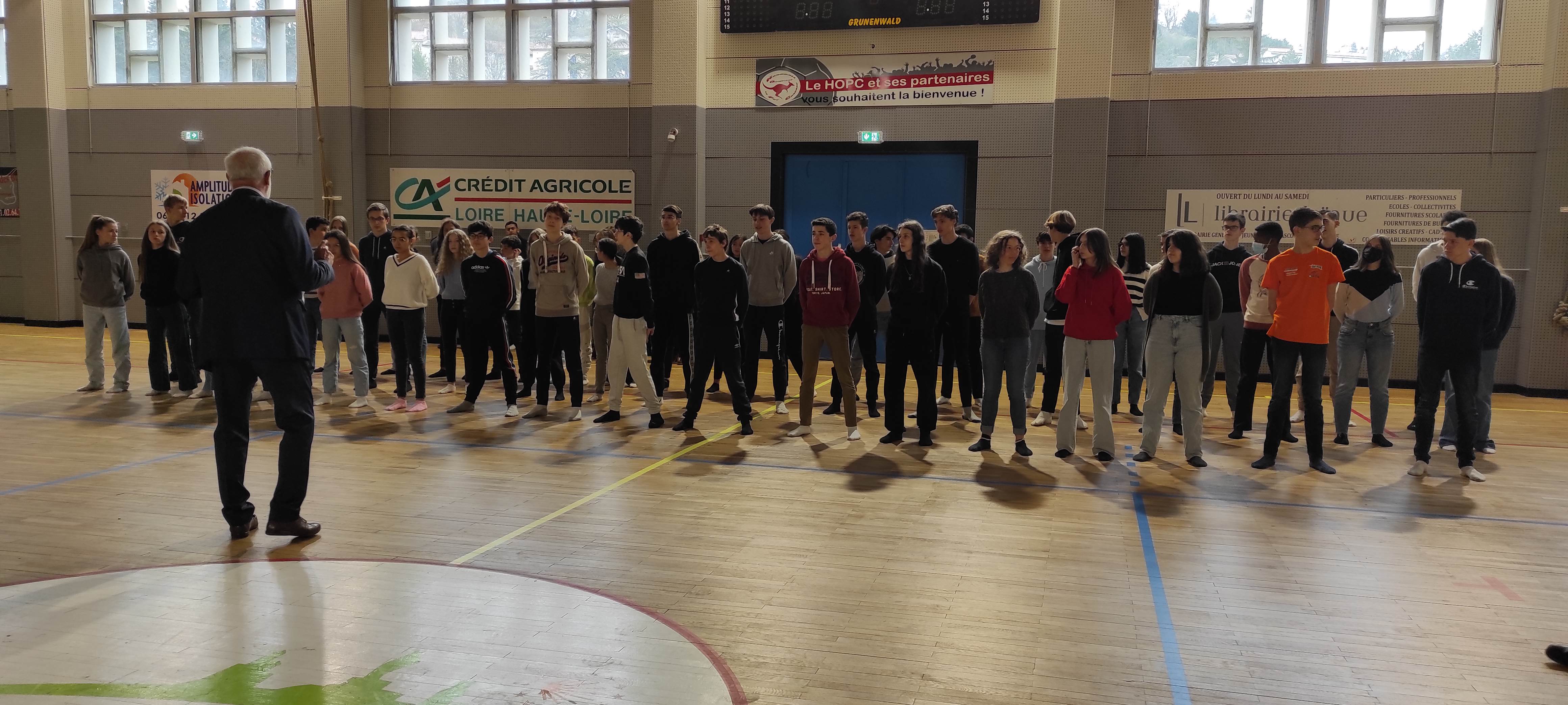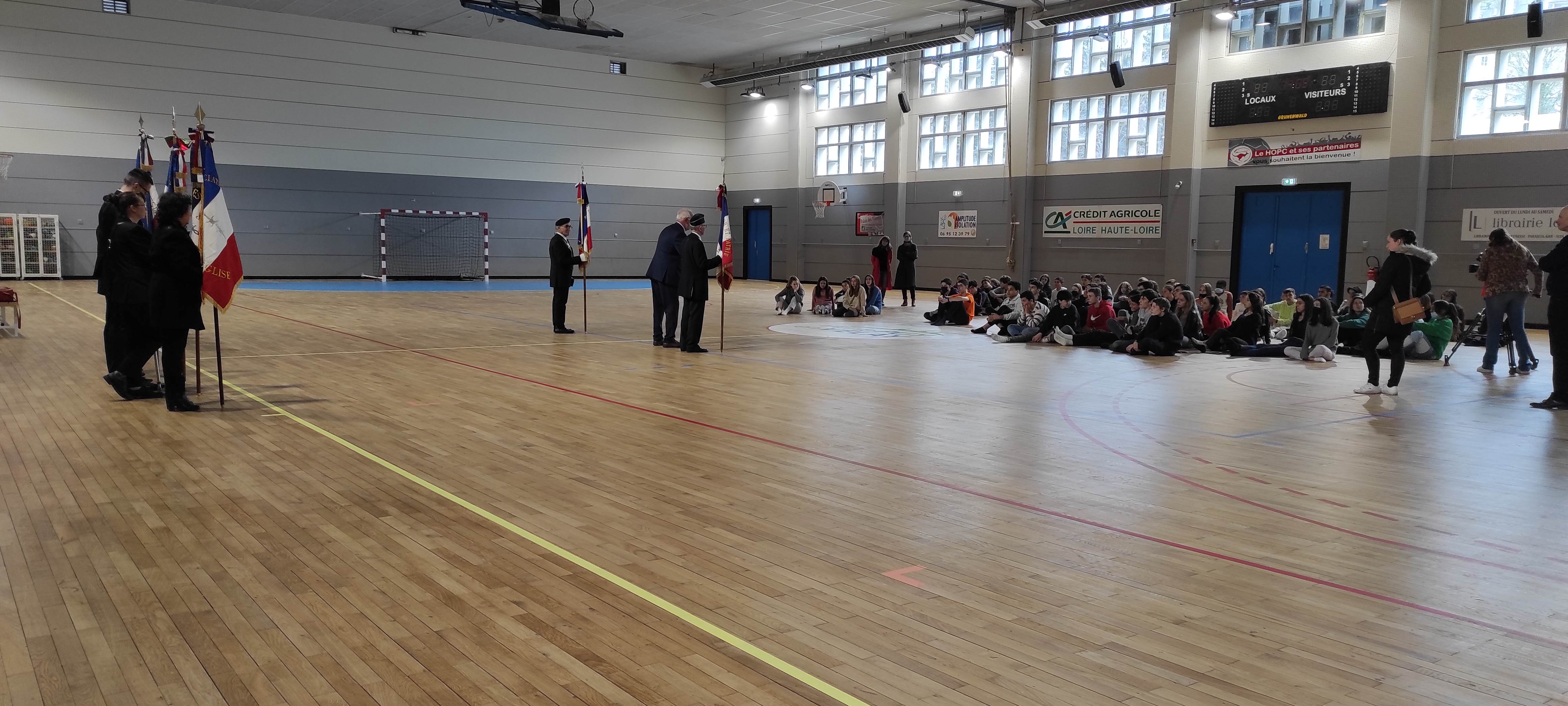 La caméra de France 3 Auvergne est venue filmer l'entrainement très concret de nos élèves de 3ème du Collège St Louis réunis au gymnase du stade Massot sous les conseils avisés de 9 porte-drapeaux du Puy-de-Dôme et de la Haute-Loire. Se mettre au garde-à-vous, marcher en rang, tenir le drapeau, adopter les bonnes postures lors d'une cérémonie... autant d'exercices auxquels se sont pliés les collégiens, avec fierté et reconnaissance !