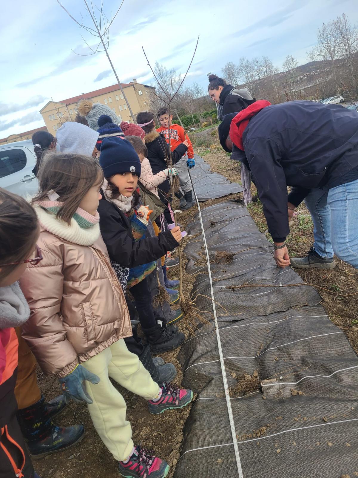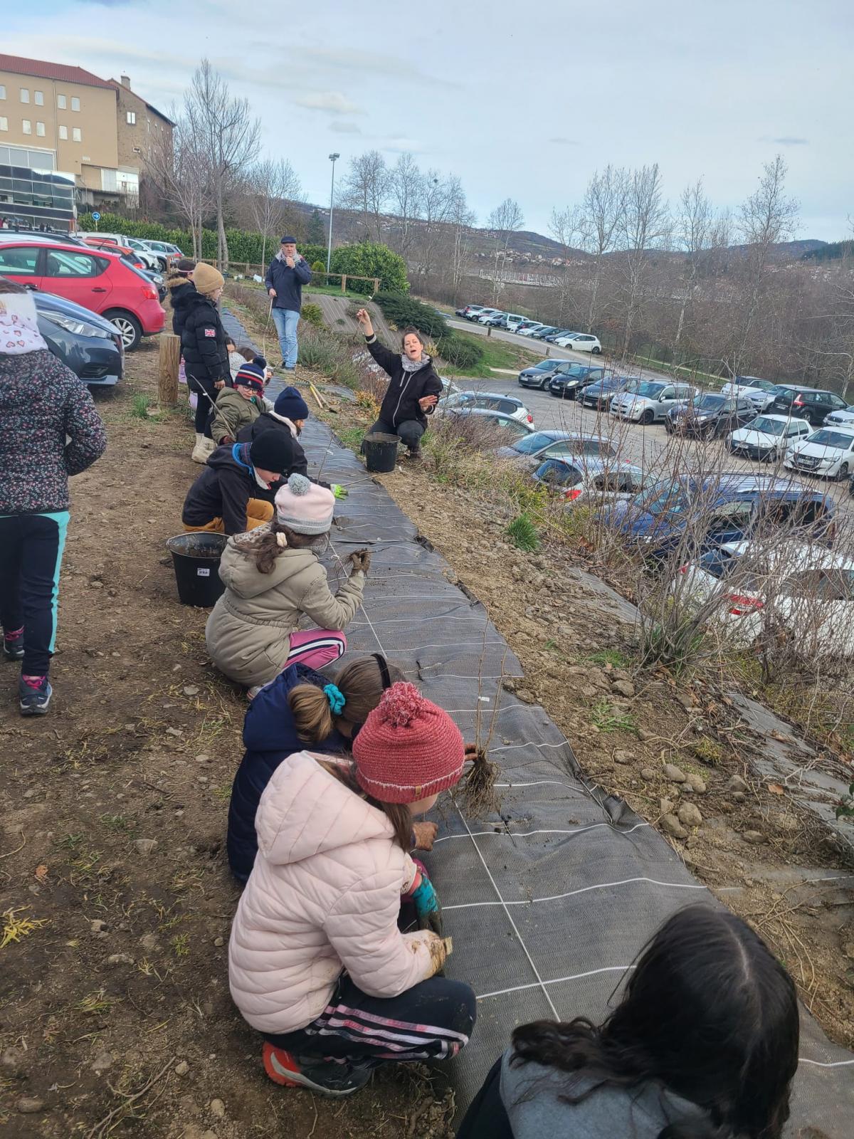 Le projet s'est terminé par la plantation d'une haie sur le parking de l'école. Chaque élève a pu planter son arbre !