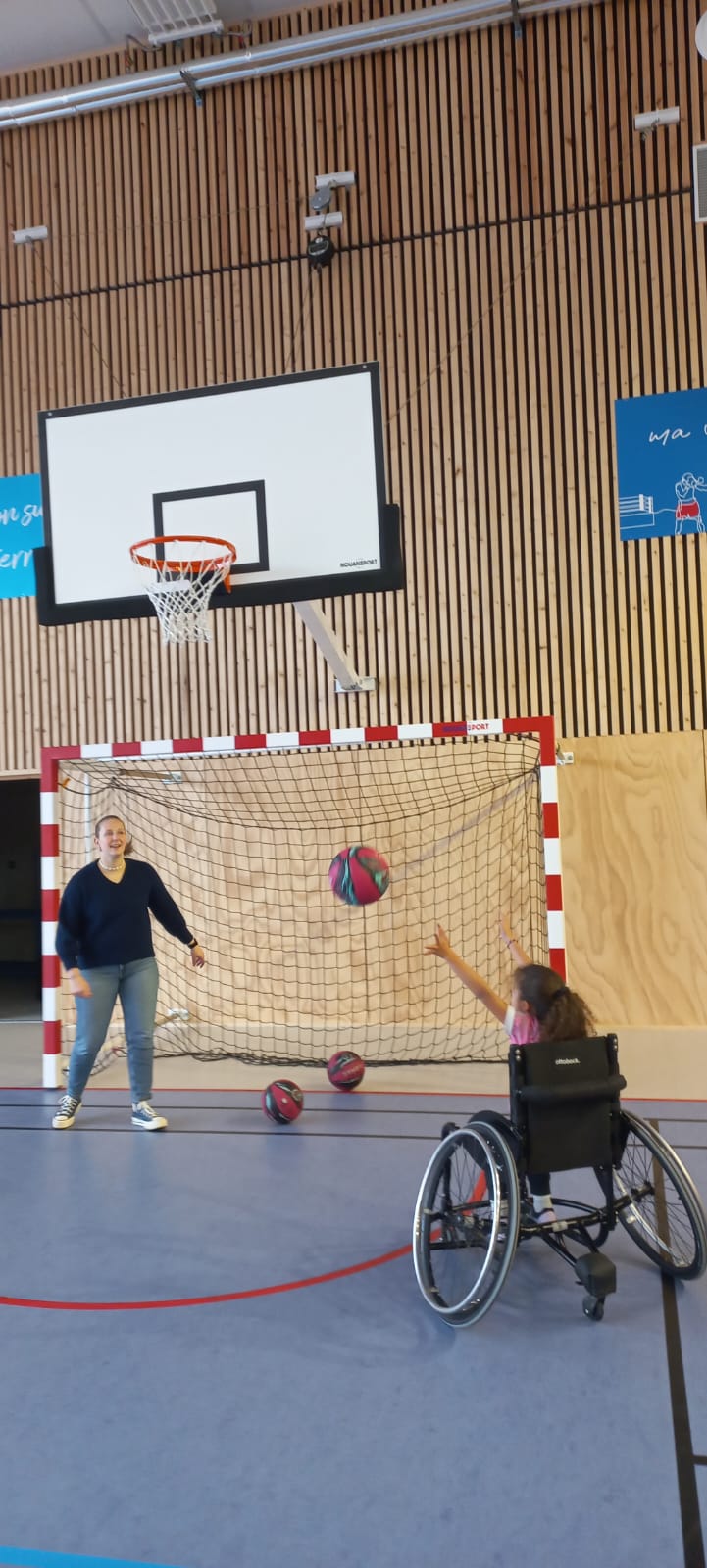 Dans le tout nouveau gymnase du Val Vert, ils ont pu partager, avec Olivier, la notion de handicap et jouer au handibasket !