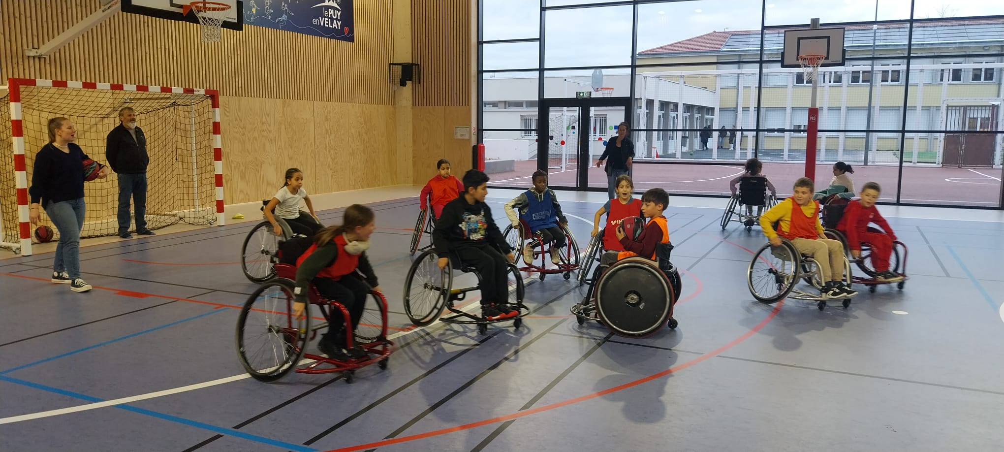 Les élèves des classes de primaire de l'école Ste Thérèse et du Ditep ont pu vivre une expérience humaine singulière en rencontrant l'un des joueurs des Aigles du Velay, club handibasket du Puy.