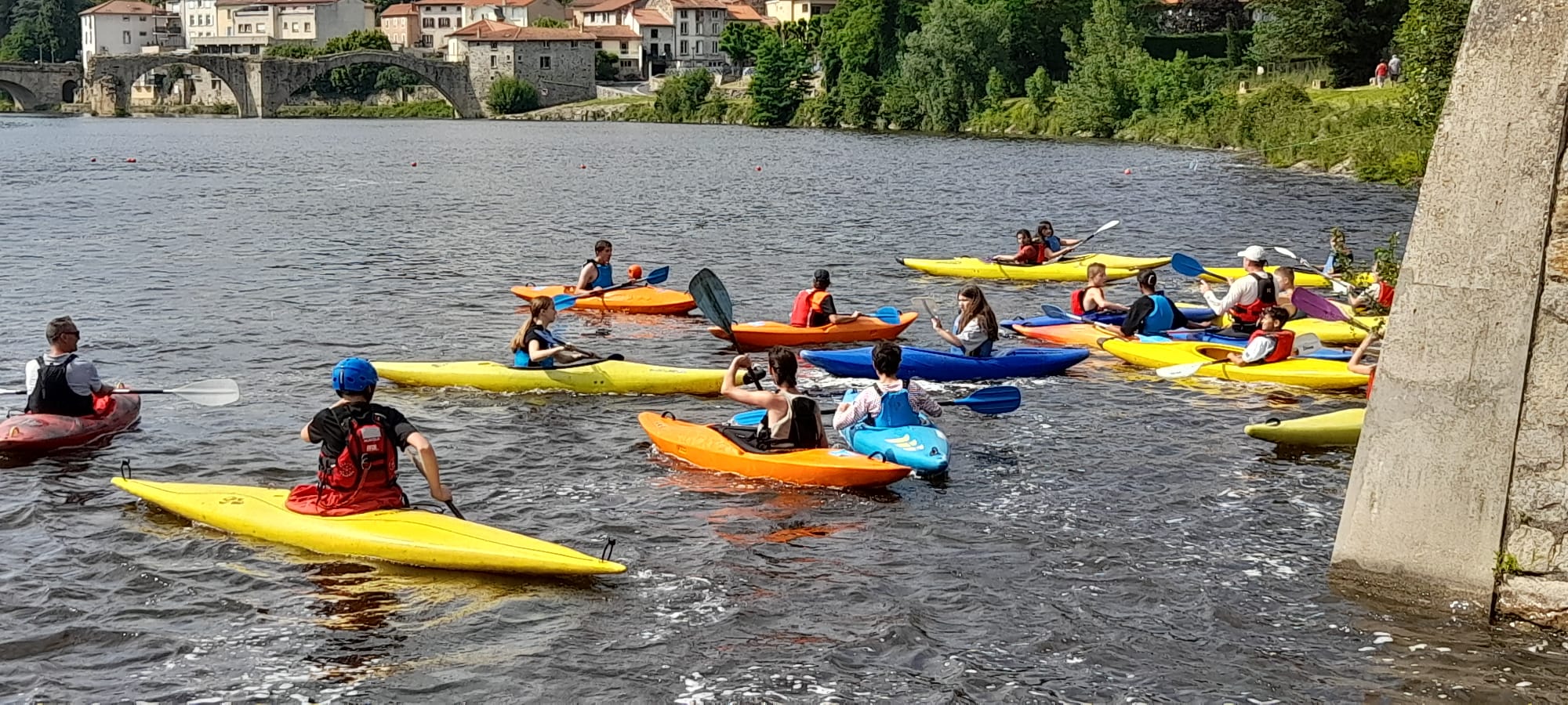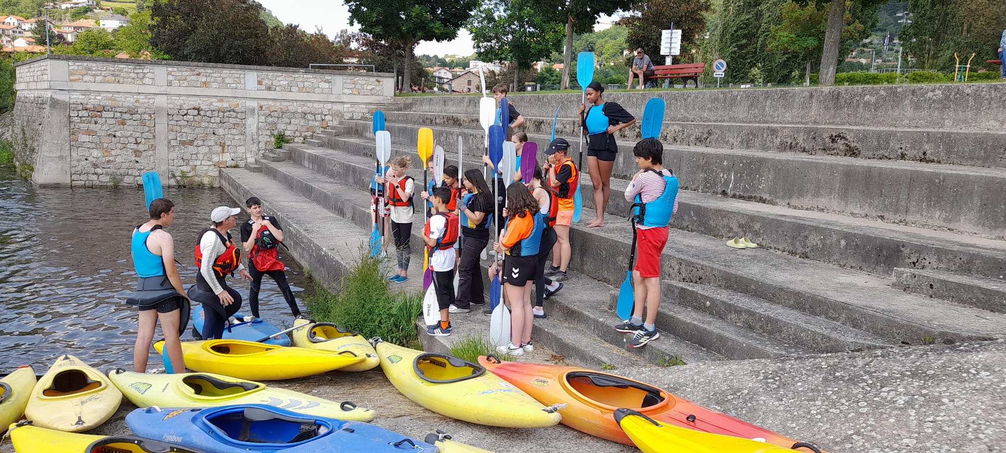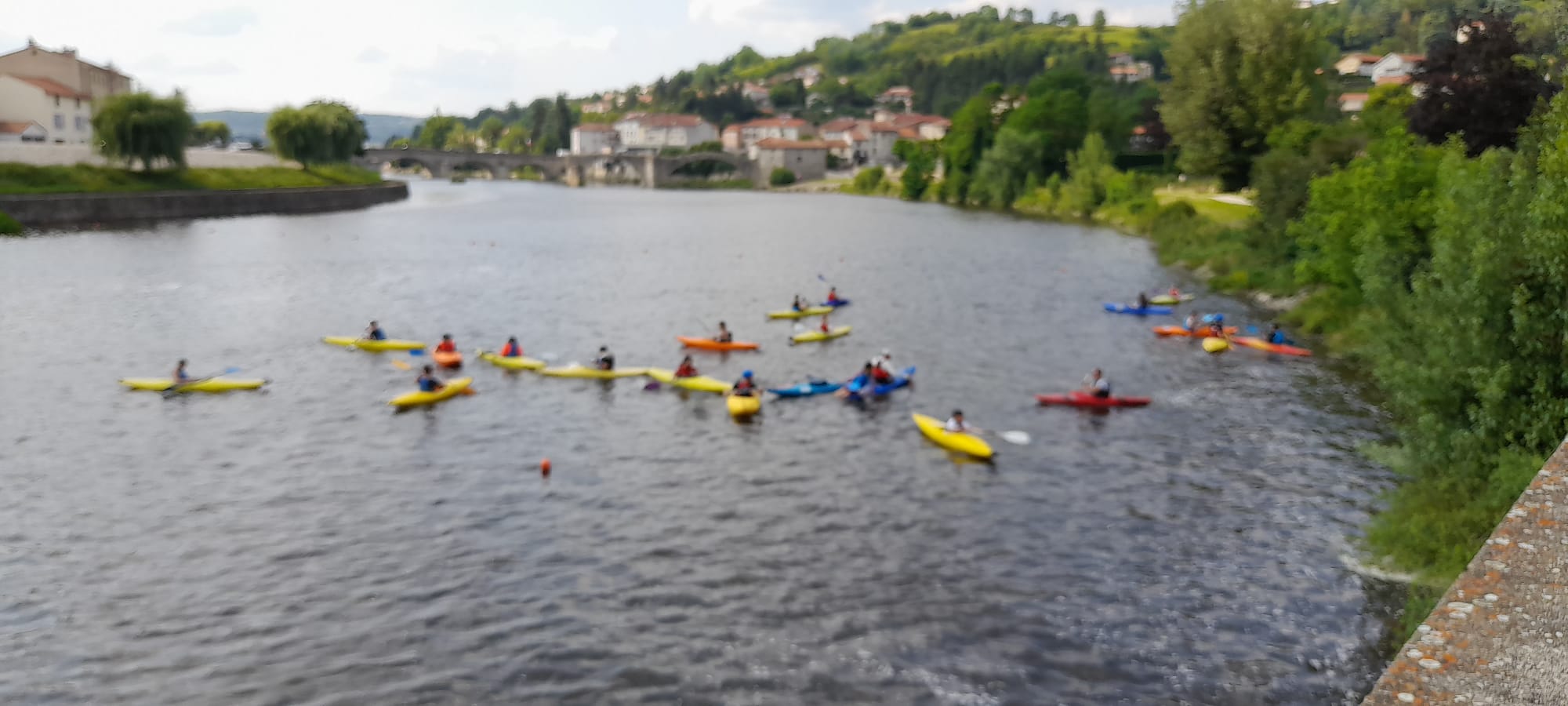 Les 15 élèves, accompagnés de leurs professeurs d'EPS, Mme Moulin et M. Von Hof, ont profité jeudi 15 juin d'une initiation kayak avec un moniteur sur la Loire à Brives-Charensac. Plusieurs jeux étaient proposés : aller chercher la balle, slalom, épervier par en chasse et promenade ! Une belle sortie sportive pour toutes et tous !