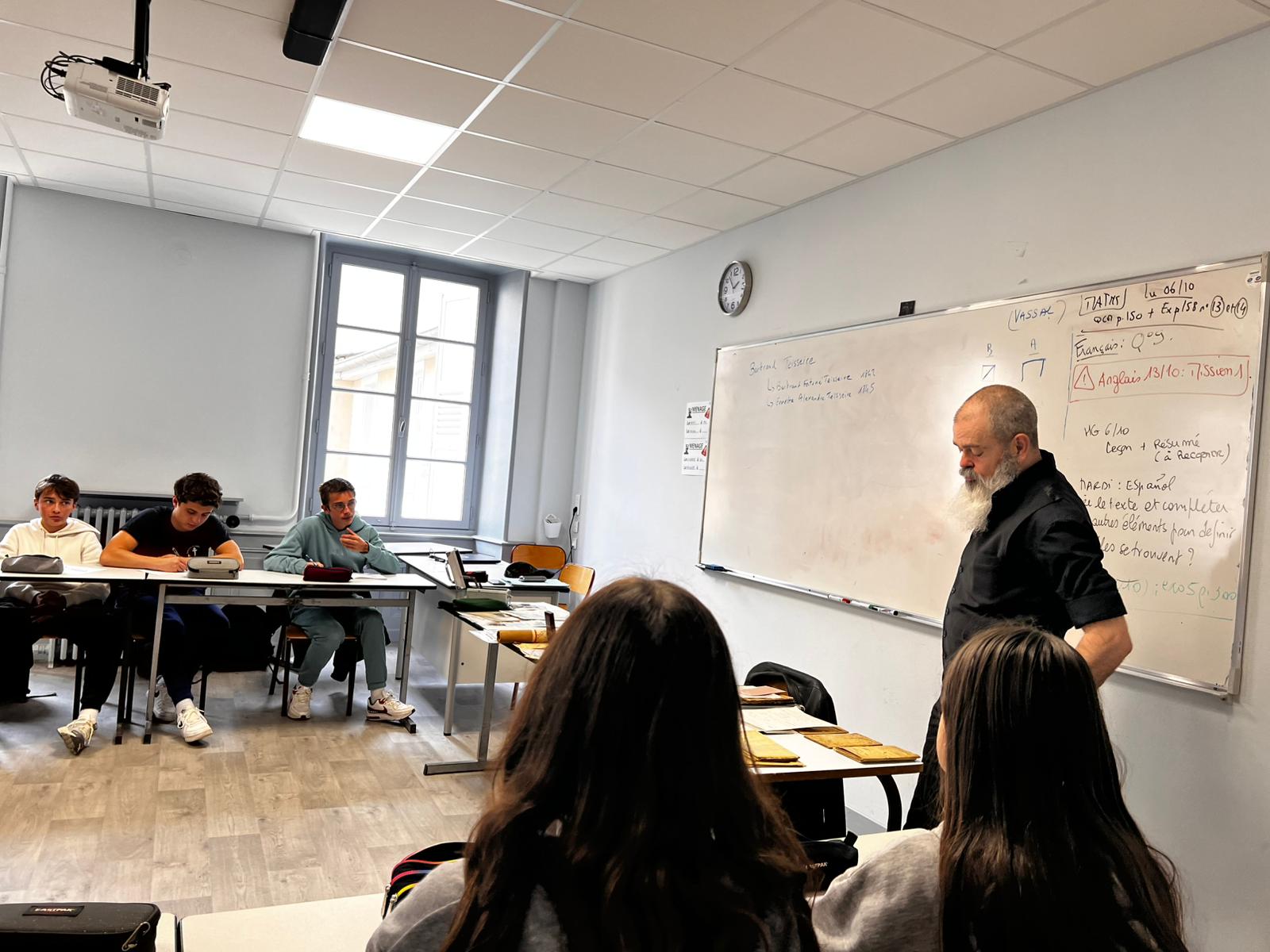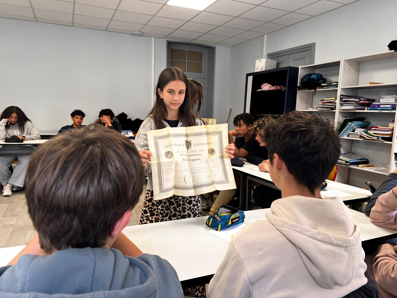 Les élèves de 3eme 2 du collège St Louis ont échangé avec M. Vassal, guide conférencier, sur le thème des conflits du XXème siècle à travers l'histoire d'une famille altiligérienne.