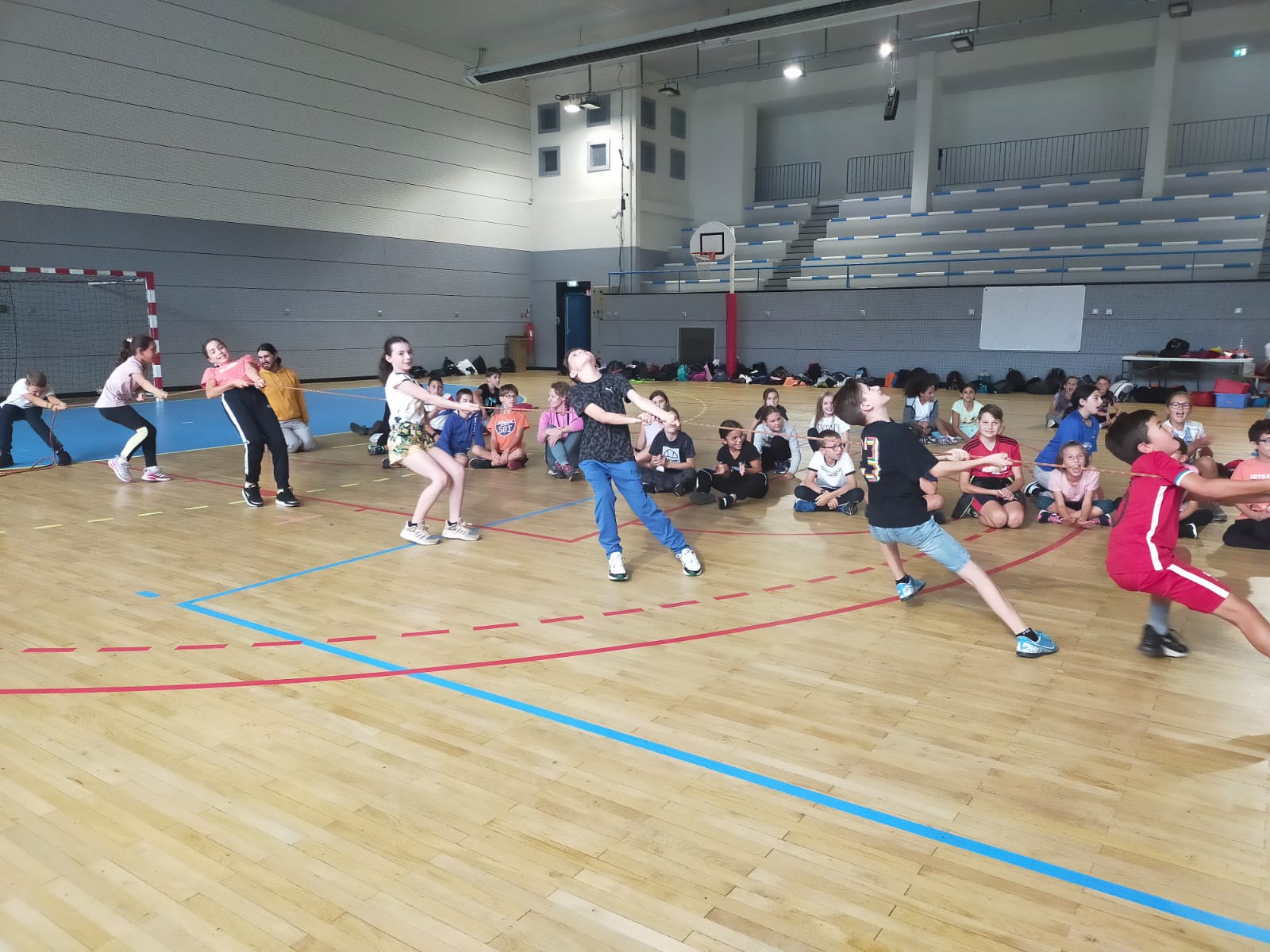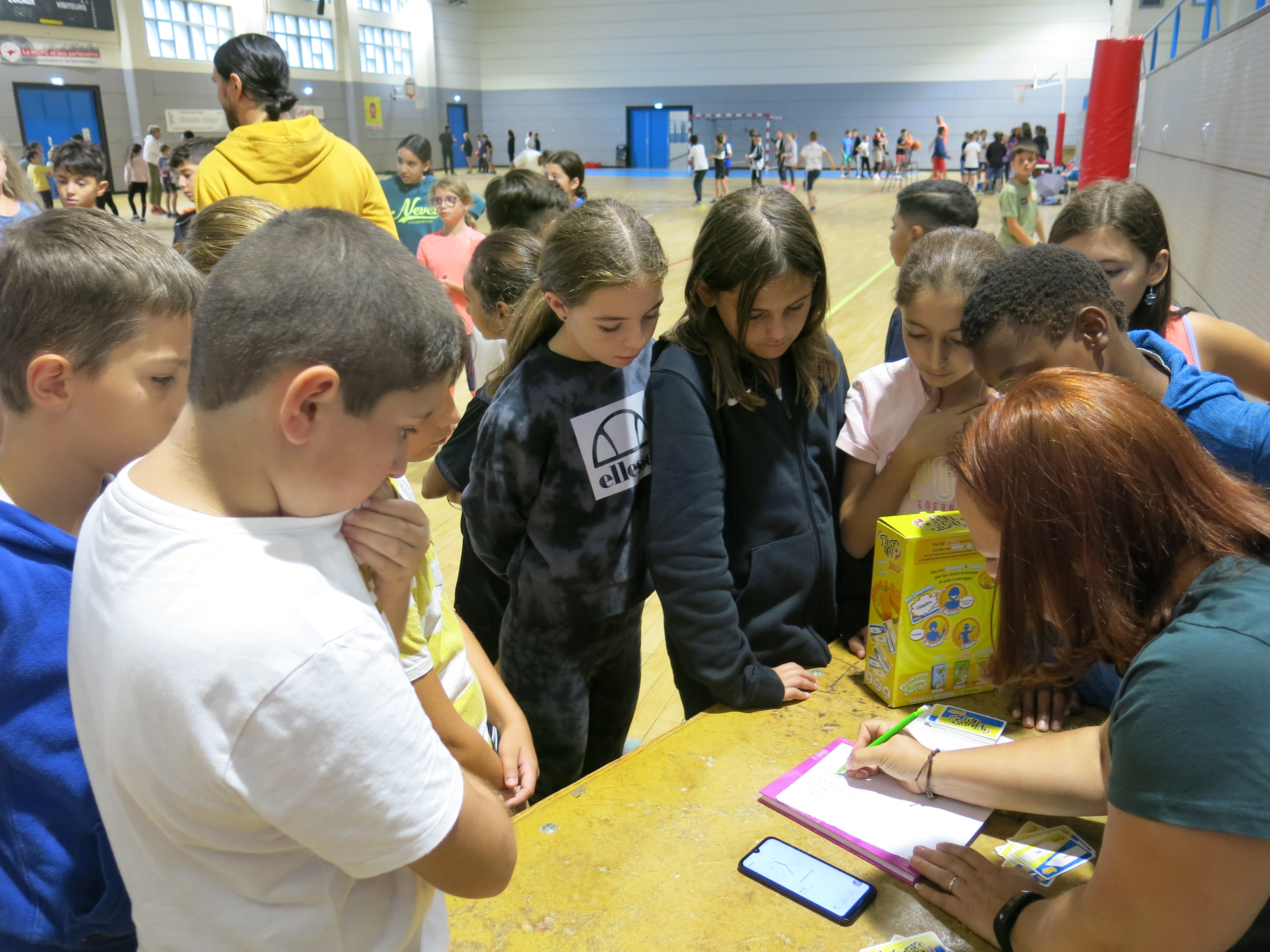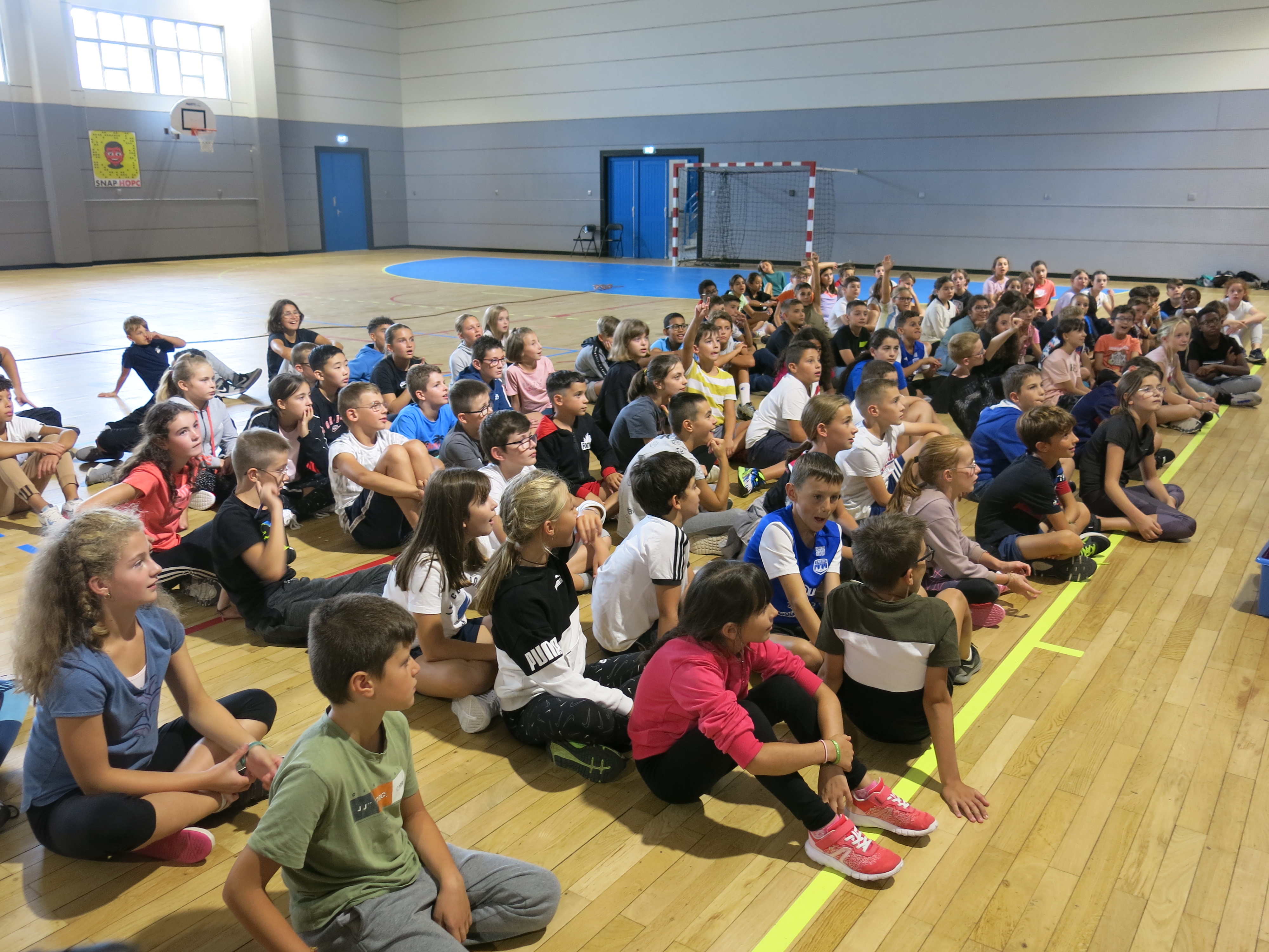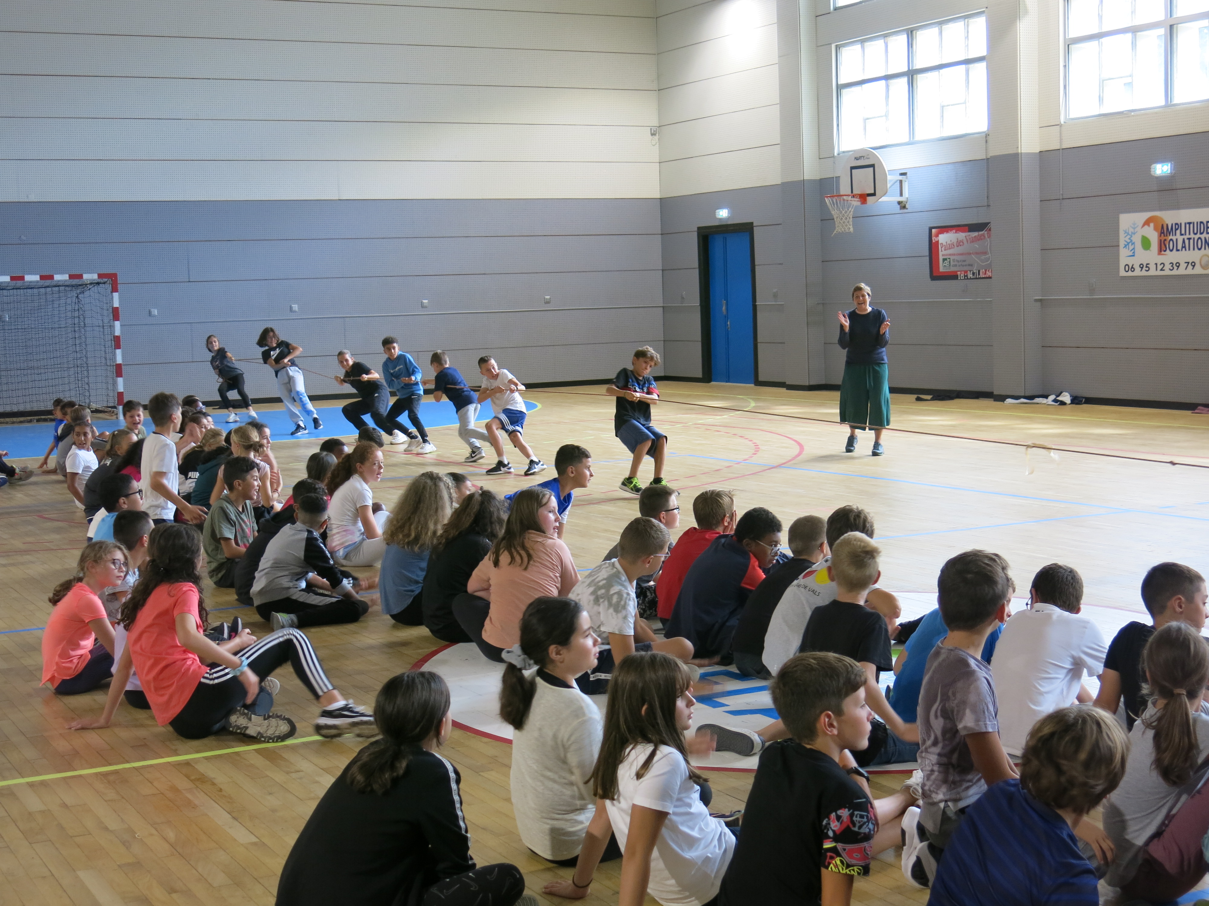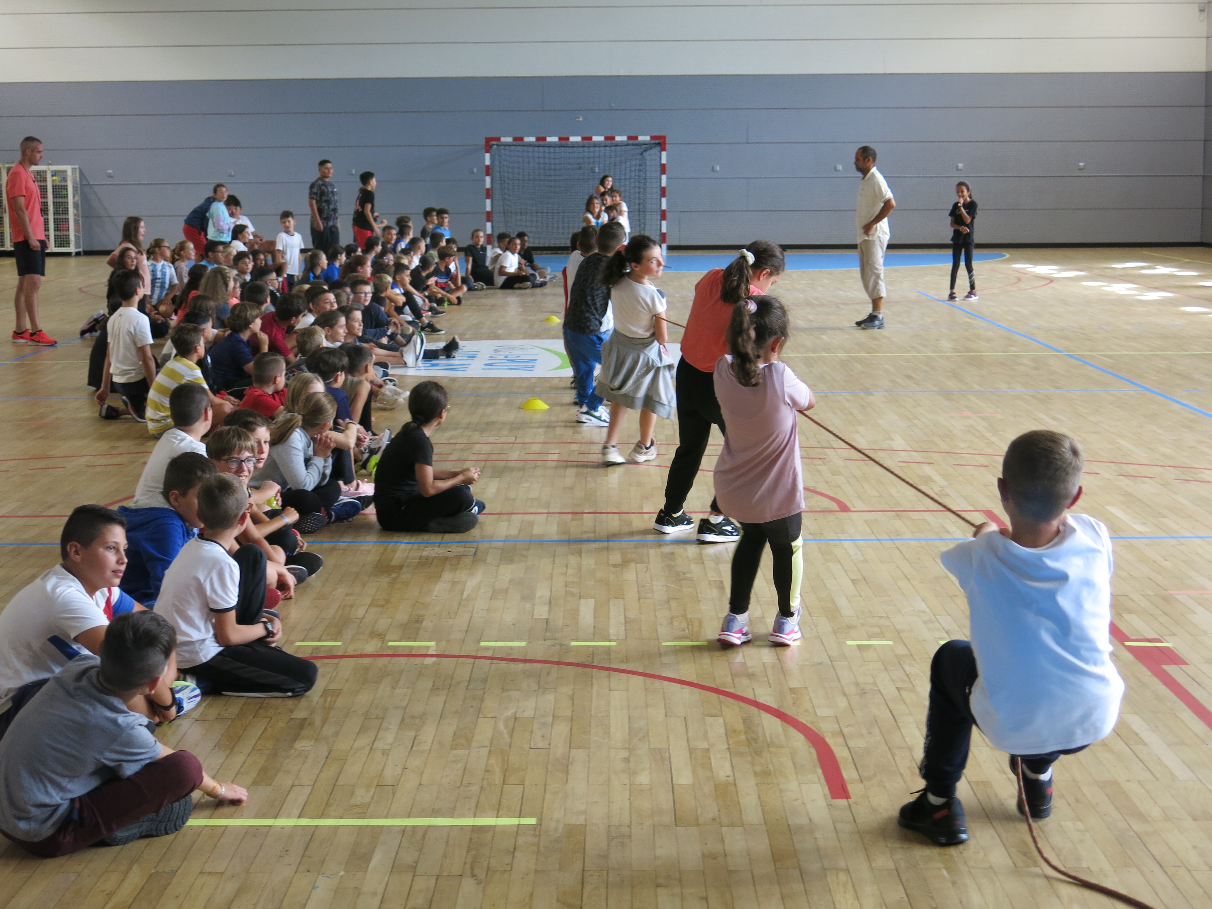 En matinée, l'équipe enseignante a proposé aux collégiens différents jeux d'équipe en extérieur mais la météo capricieuse a contraint les élèves à se mettre à l'abri au sein du gymnase.