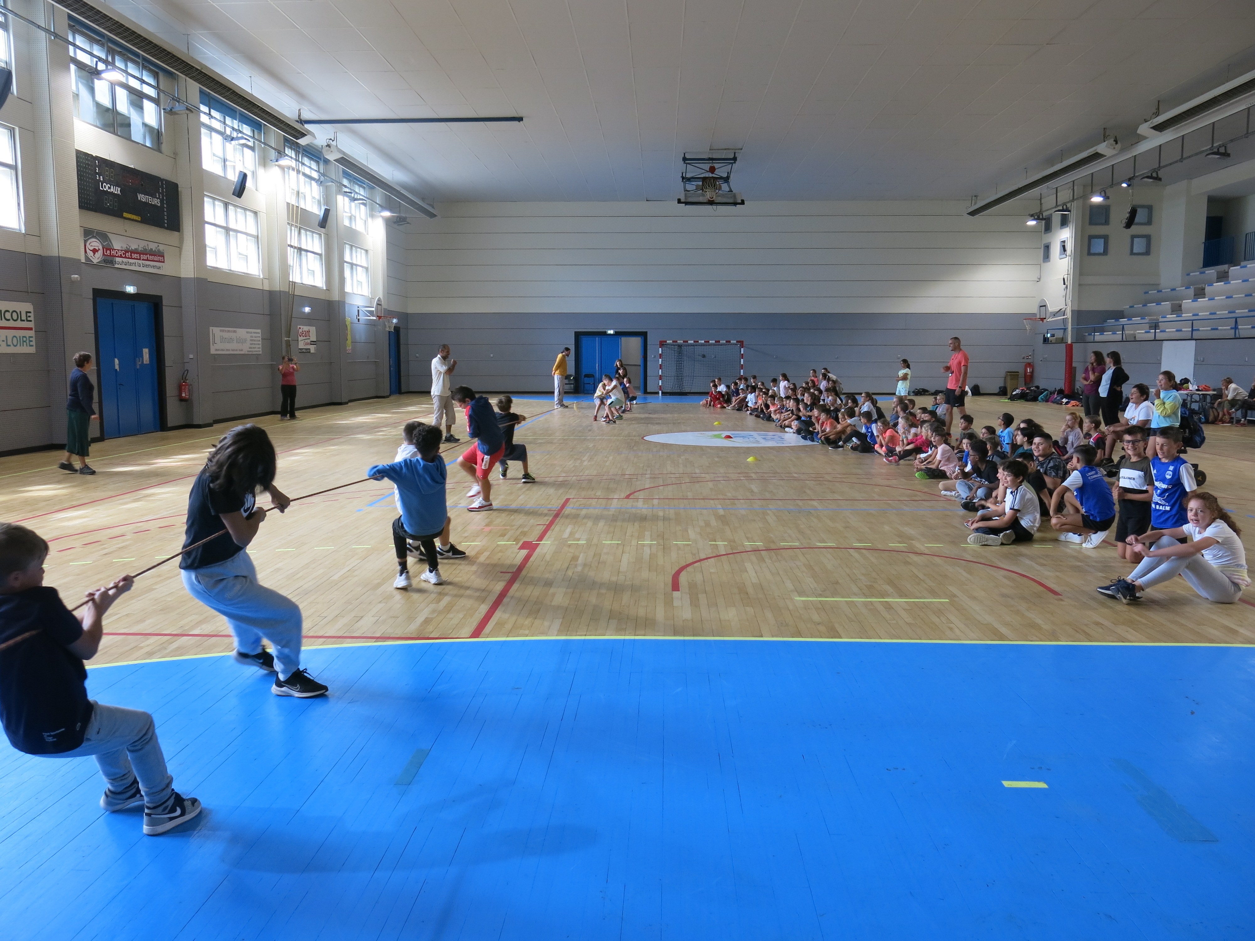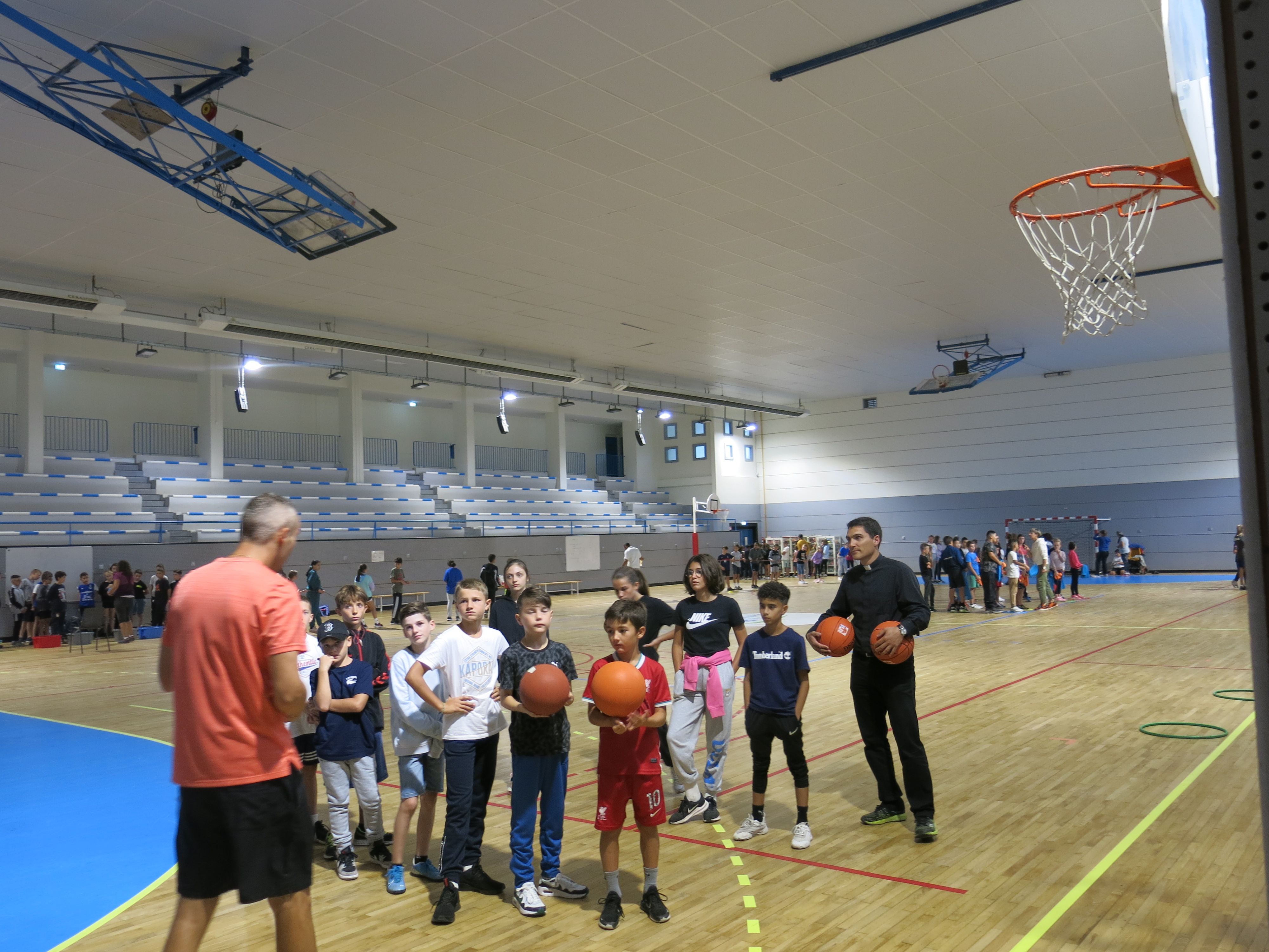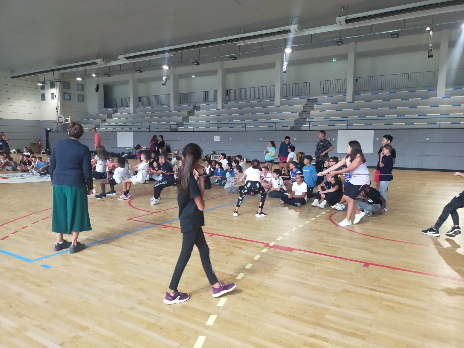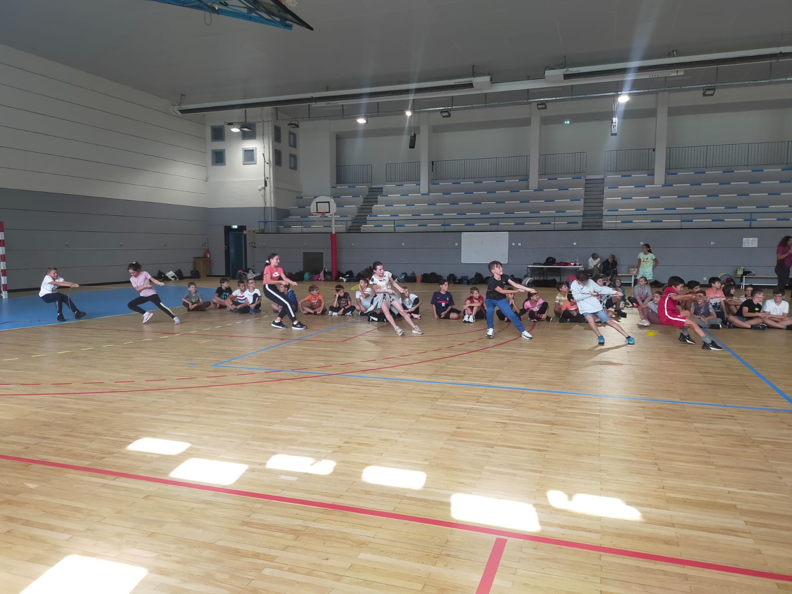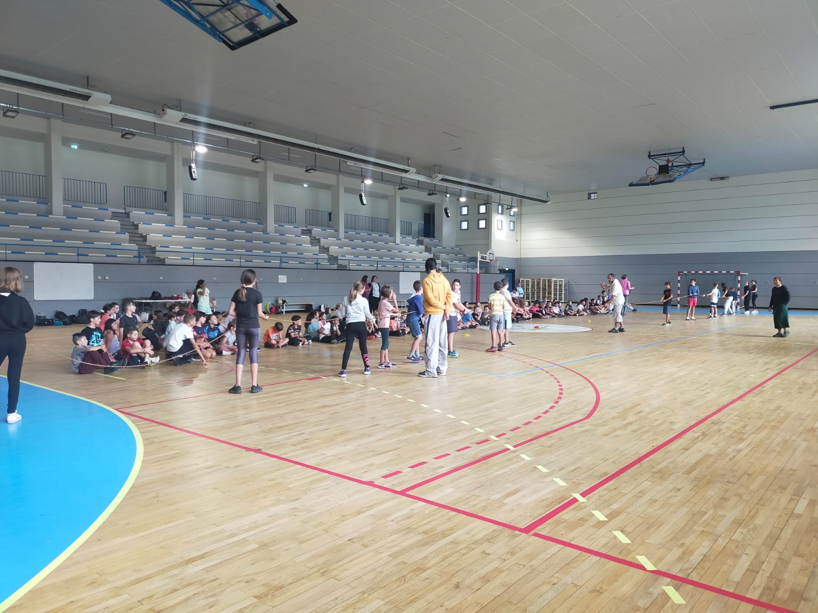 En matinée, l'équipe enseignante a proposé aux collégiens différents jeux d'équipe en extérieur mais la météo capricieuse a contraint les élèves à se mettre à l'abri au sein du gymnase.