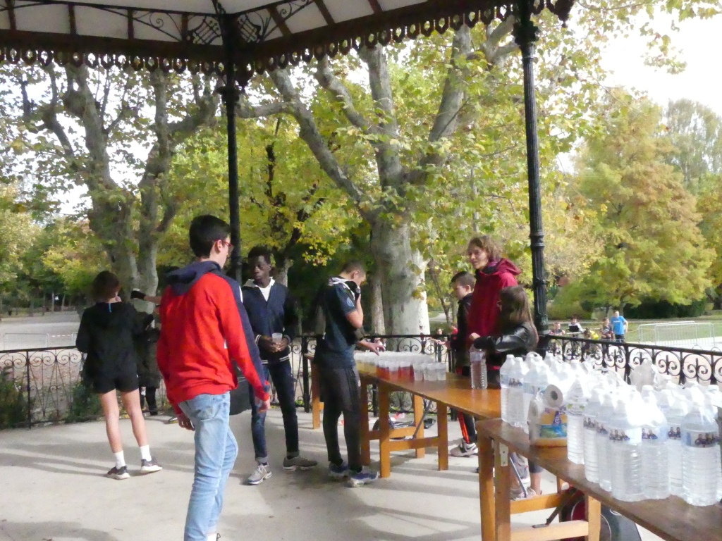 A la fin de chaque course, des élèves dispensés étaient prévus pour ranger les coureurs par ordre d'arrivée et récupérer les dossards. Le kiosque était aménagé pour recevoir la buvette avec eau, jus de fruit et gâteaux ainsi que l'ordinateur pour classer les collégiens.