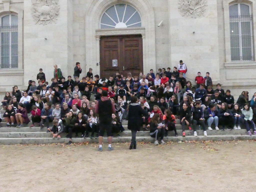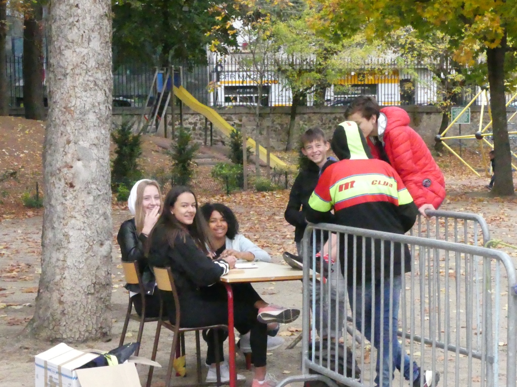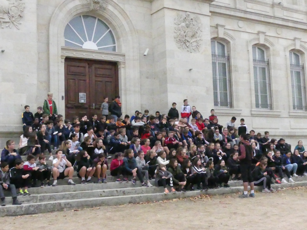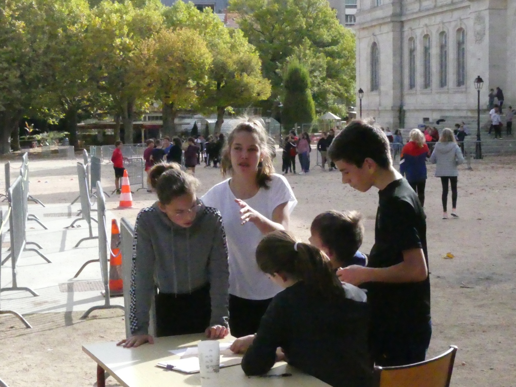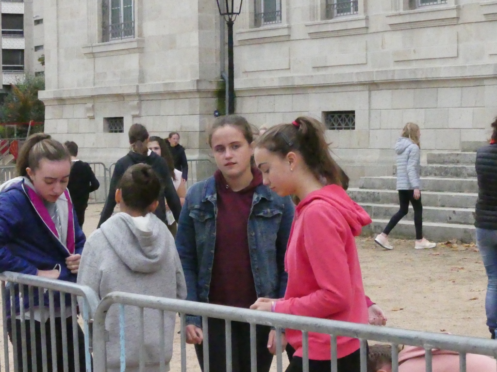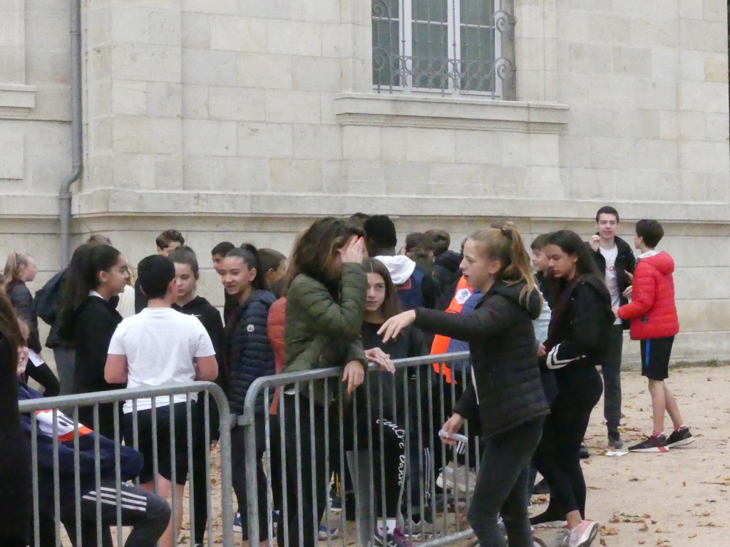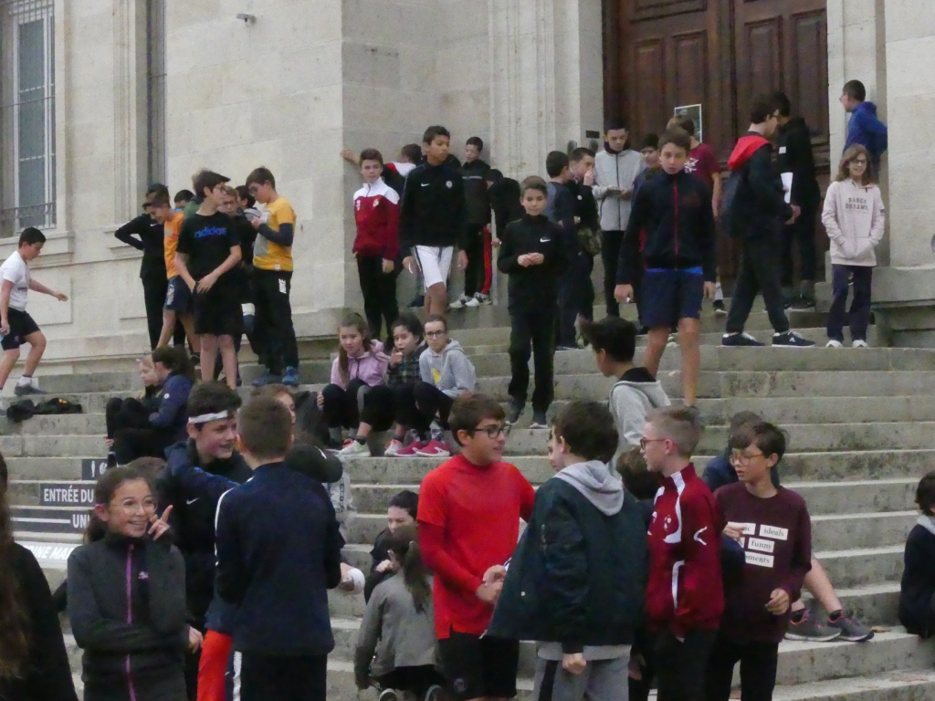 Avant les courses, les élèves responsables s'installent à l'arrivée et à la table de marquage tandis que les professeurs et les coureurs se placent devant le Musée Crozatier, lieu de rassemblement général.