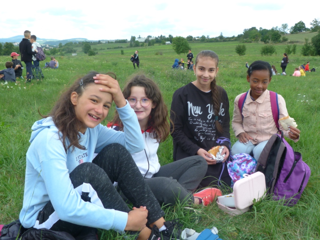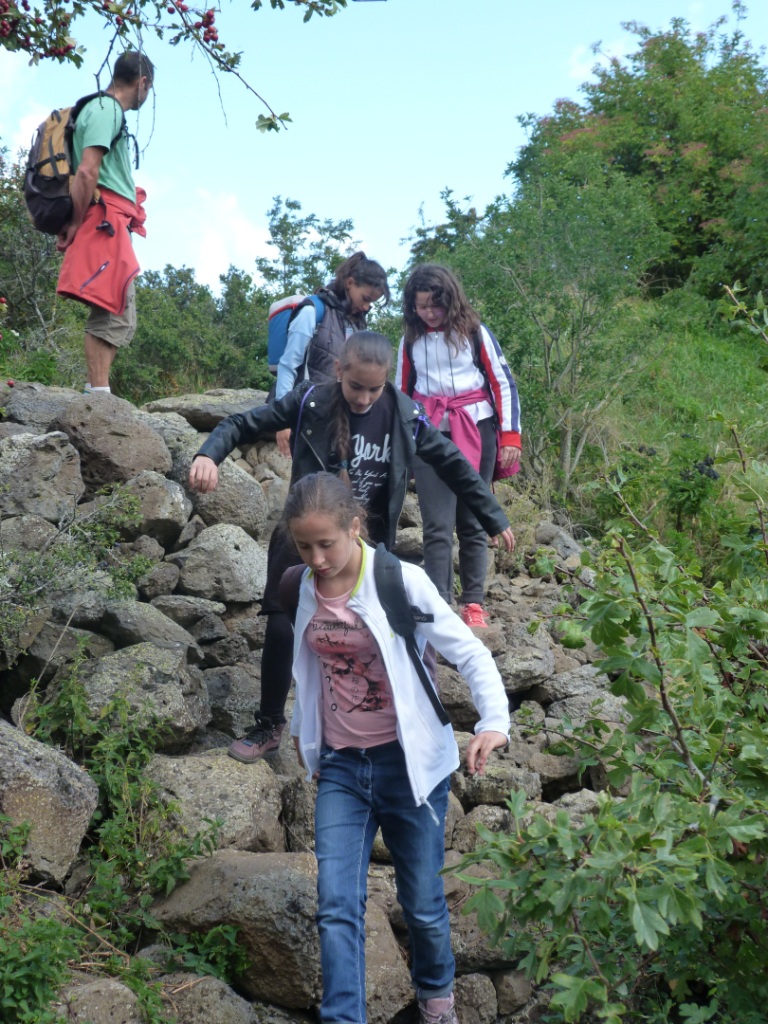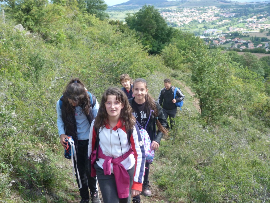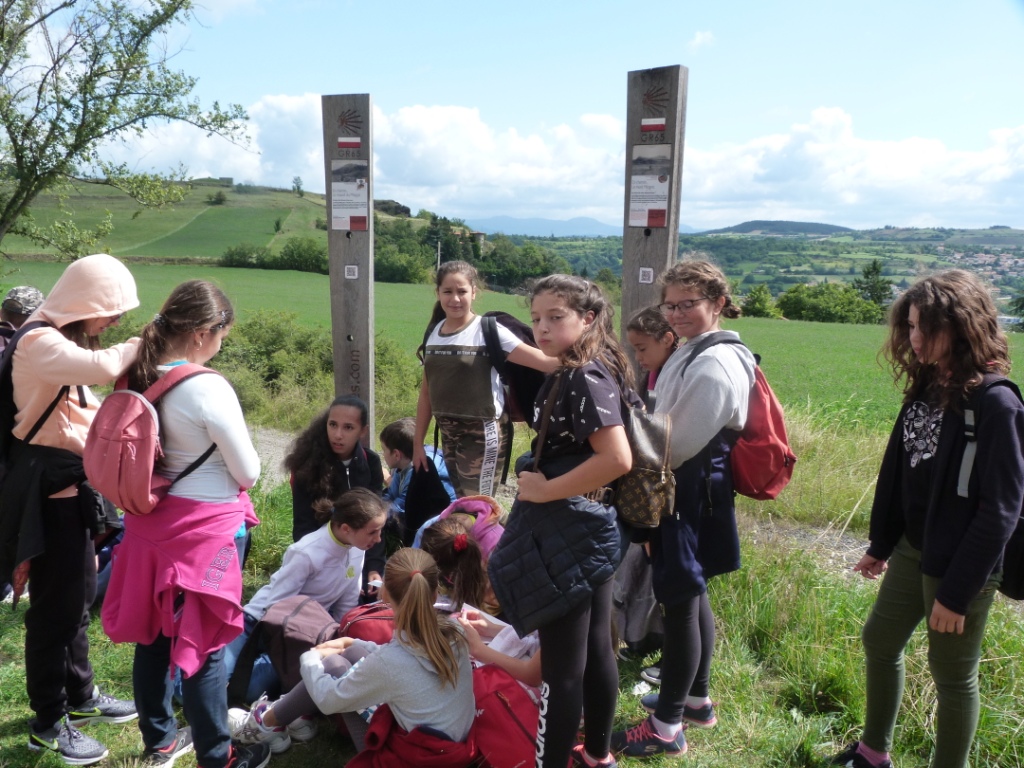 Ensuite les collégiens sont partis sur les traces des pélerins en empruntant la Place du Plot pour y rencontrer la Pélerine puis la Rue des Capucins pour arriver sur le première partie du chemin à la sortie du Puy en Velay. Après un pique-nique bien mérité, le groupe s'est mis en chemin à travers les chibottes de Vals afin de regagner le collège.