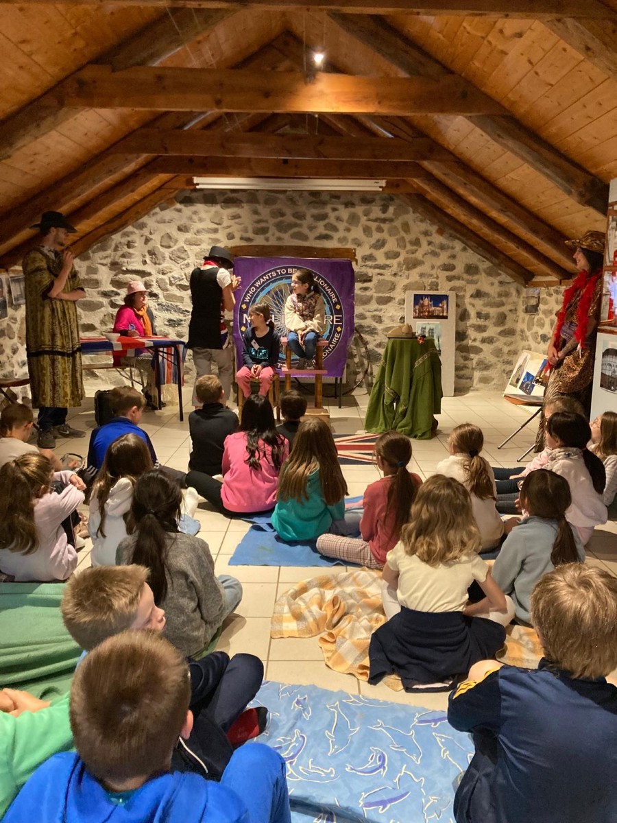 Puis, ils ont fait une visite des lieux avec installation dans les chambres. Ensuite, nous avons pique-niqué. L’après midi, les enfants ont fait une course de relais pour découvrir les pièces de Buckingham Palace et ont rendu visite au roi d’Angleterre. En soirée, nous avons fait un loto qui a beaucoup plu aux enfants avec des petits lots à gagner. Après manger, nous avons regardé le début du film d’animation Paddington en anglais sous-titré.