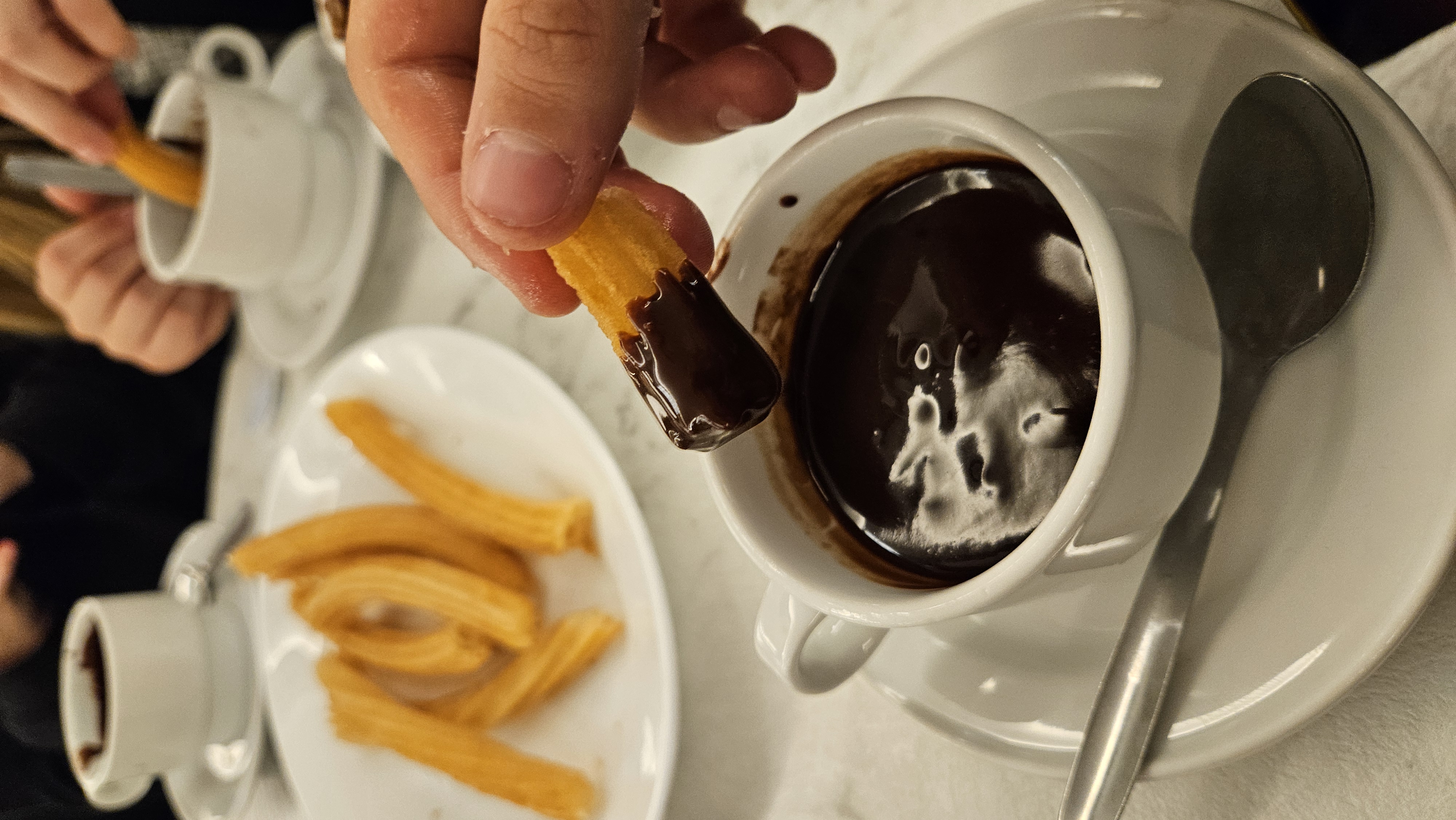 Première étape: le petit dejeuner avec le traditionnel chocolate con churros.