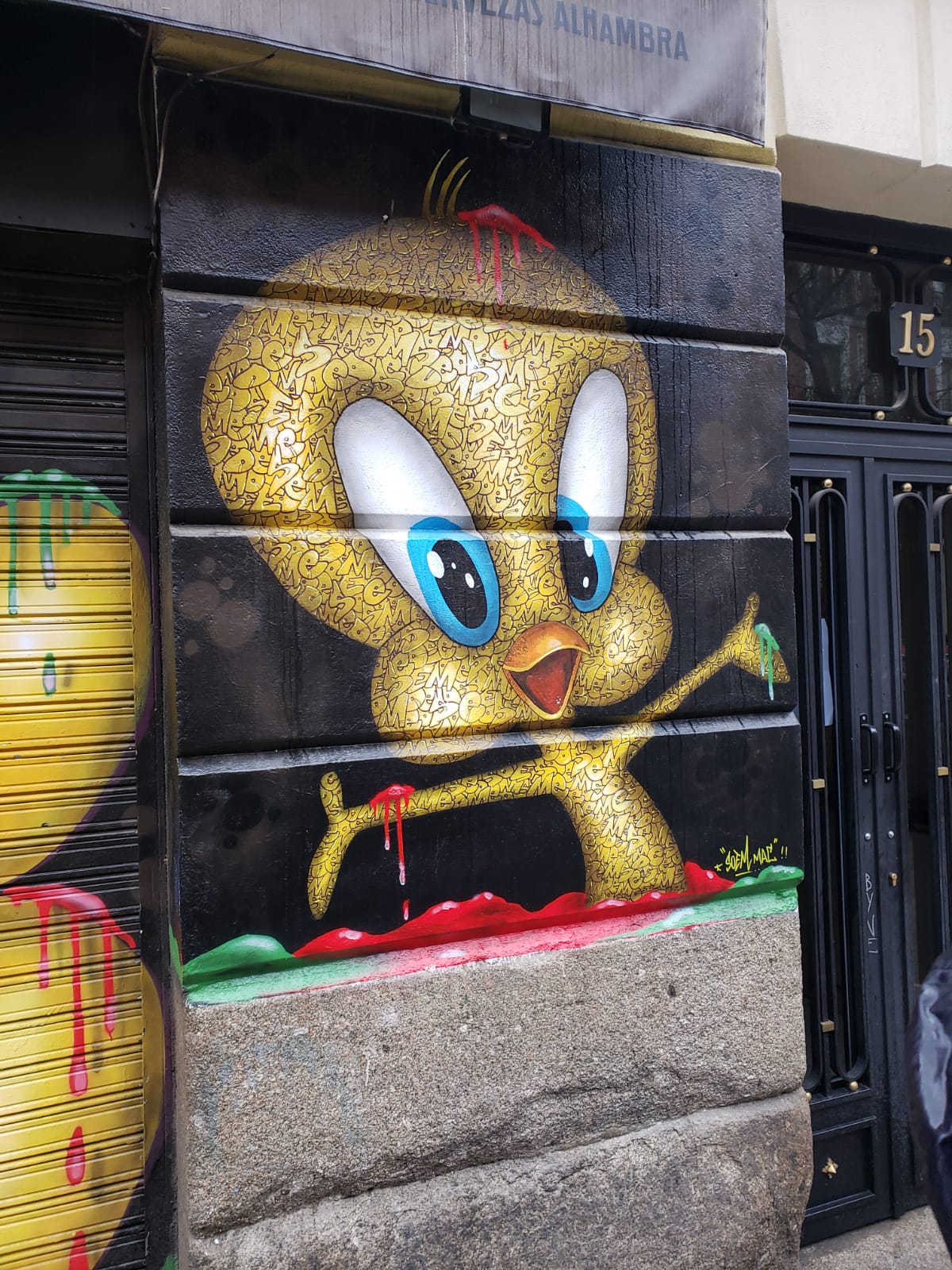C'est sous la pluie que nous avons visité les rues de Madrid en version "Street Art". Nos guides nous ont accompagnés et guidés à la découverte des diverses formes d'expressions artistiques dans les rues, à la rencontre d'illustres inconnus encore ou de graffeurs devenus célèbres dans le monde entier.