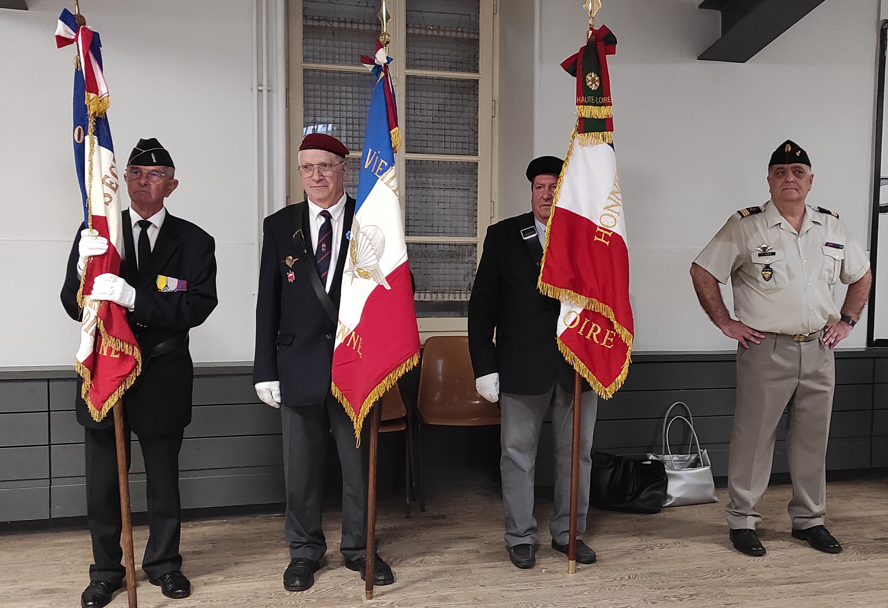 A cette occasion, le Lieutenant Colonel Monnier et le Capitaine Piot, de la Délégation Militaire Départementale de Haute-Loire, M. Le Verge de l'ONACVG43, le Capitaine Dubuy, réserviste à la DMD, 3 anciens combattants et porte-drapeaux, deux représentants de la mairie - Mme Lasherme et M. Clabau - ainsi que les parents d'élèves étaient conviés à une cérémonie qui a dû se faire en intérieur en raison du mauvais temps.