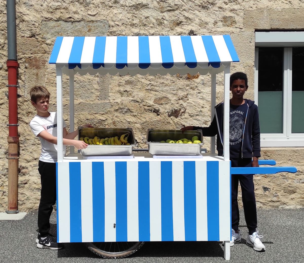 Les élèves du lycée professionnel en CAP IMTB, sous la houlette de leur professeur Monsieur Laugère, ont construit la charrette, et les premières ventes ont pu débuter.