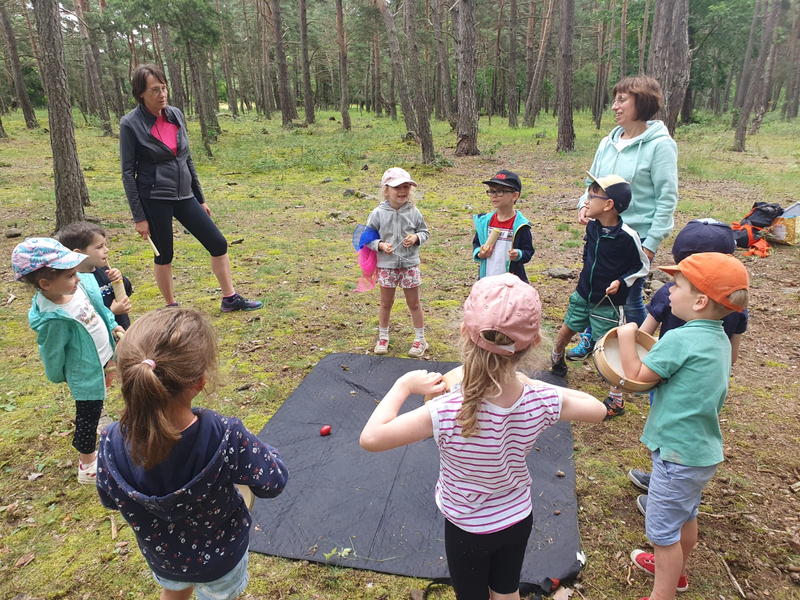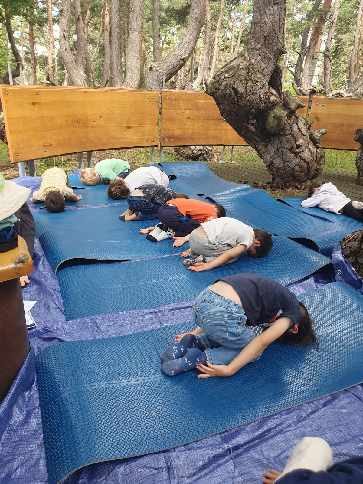 Plusieurs ateliers attendaient les enfants de maternelle dans la forêt de la Pinatelle du Zouave afin de passer une belle sortie scolaire : atelier musical en nature, fabrication de bombes à graines, yoga, sophrologie, construction de cabane, land art.. Tout le monde était joyeux de cette journée !