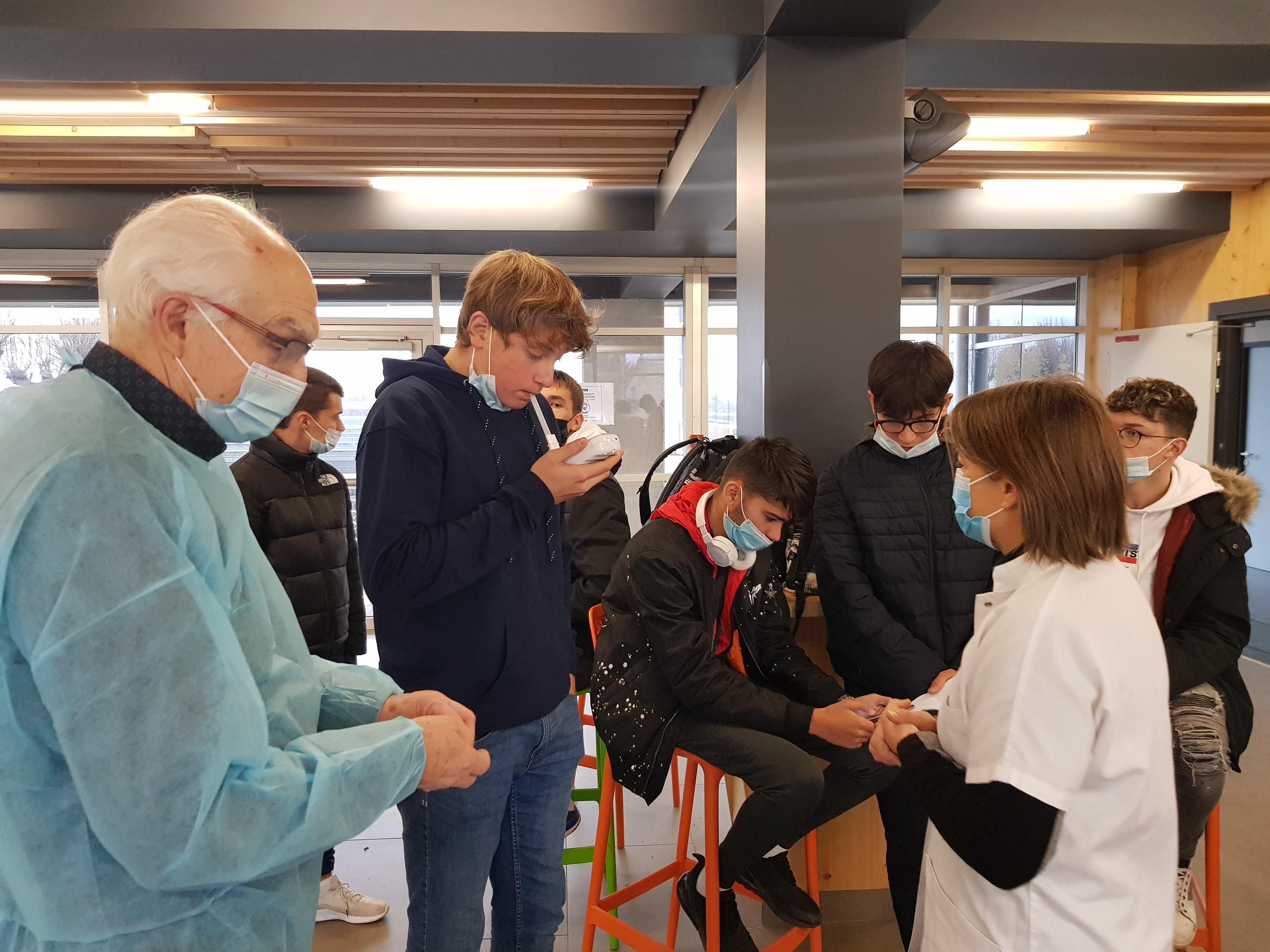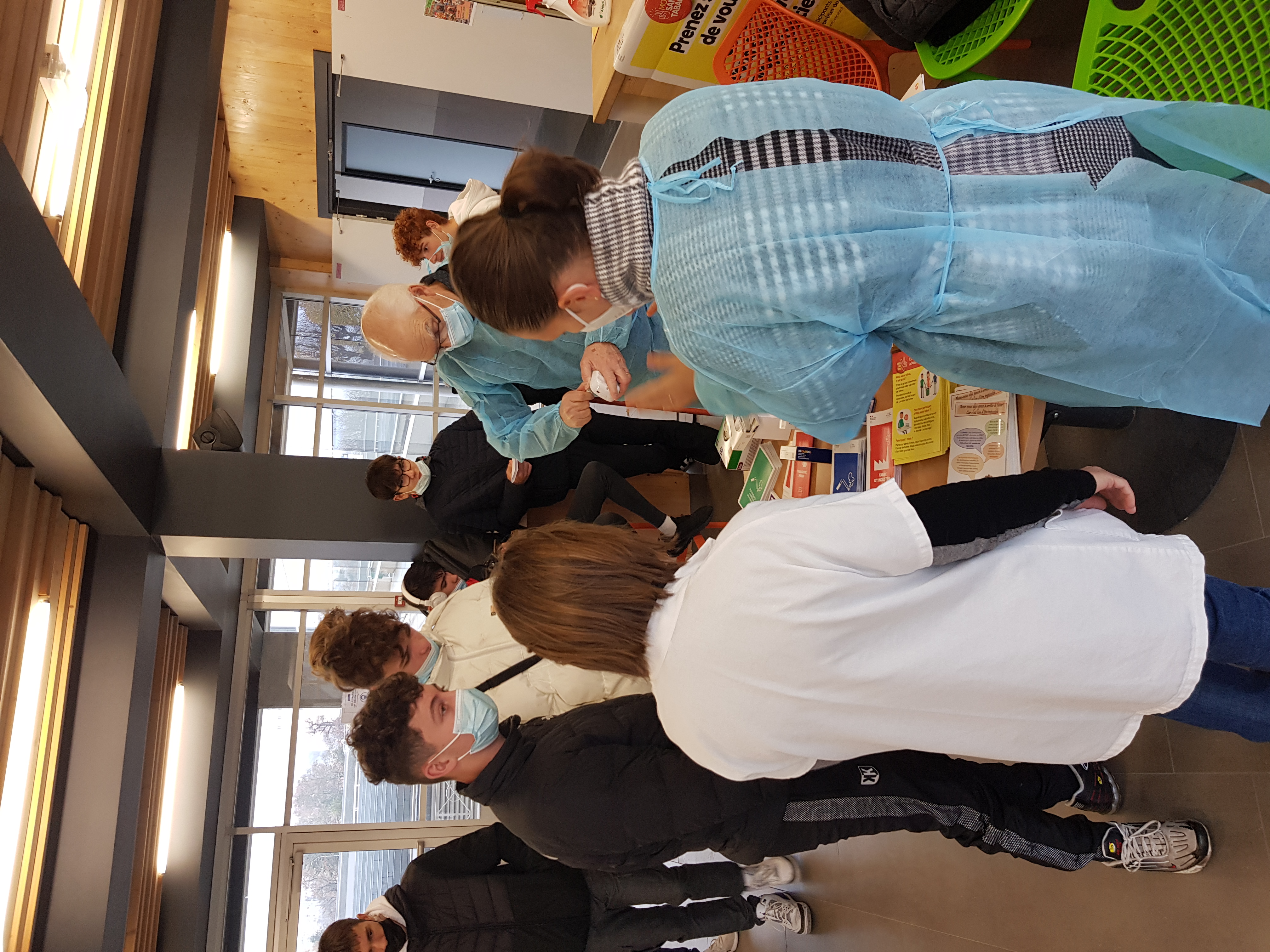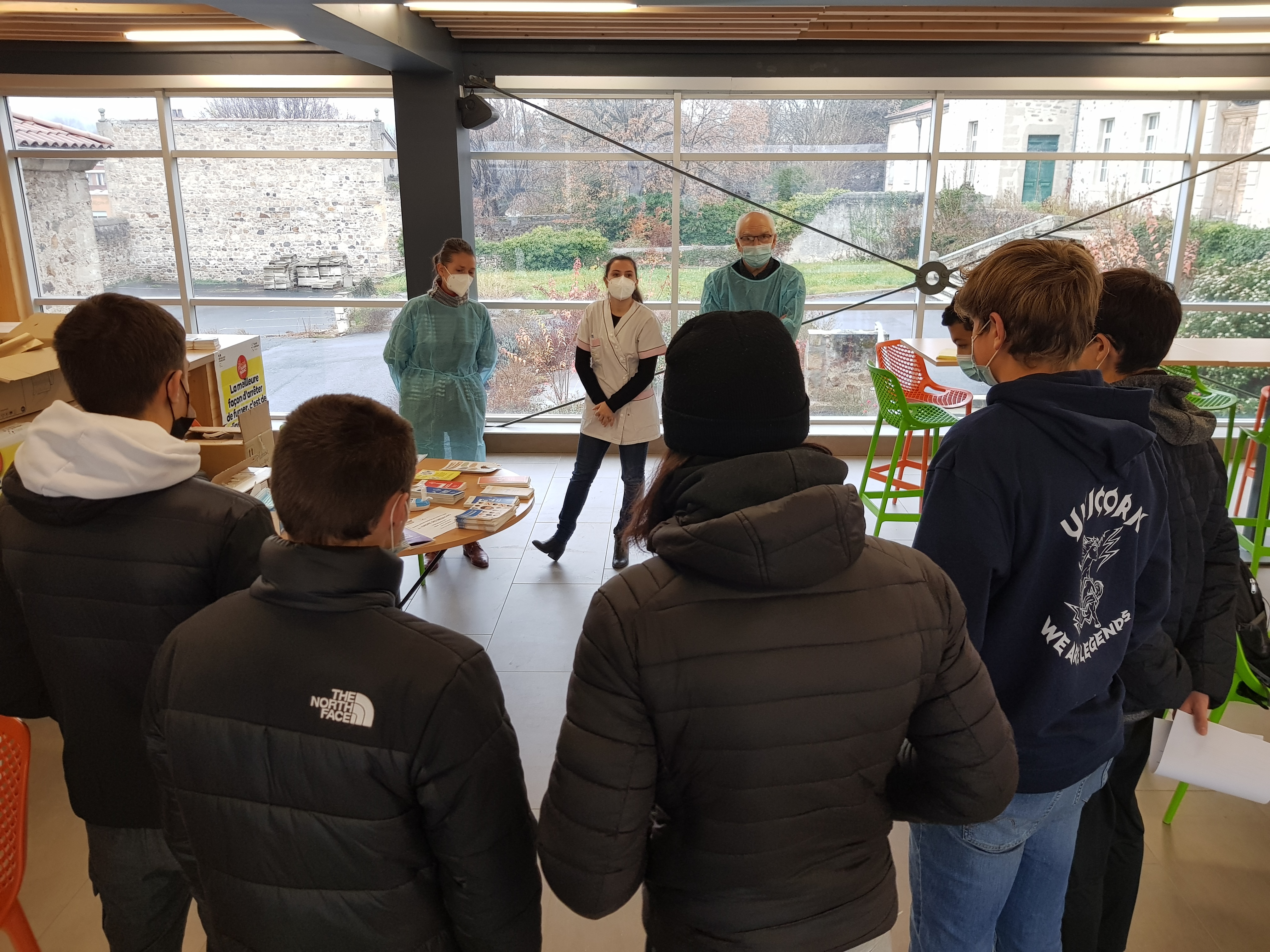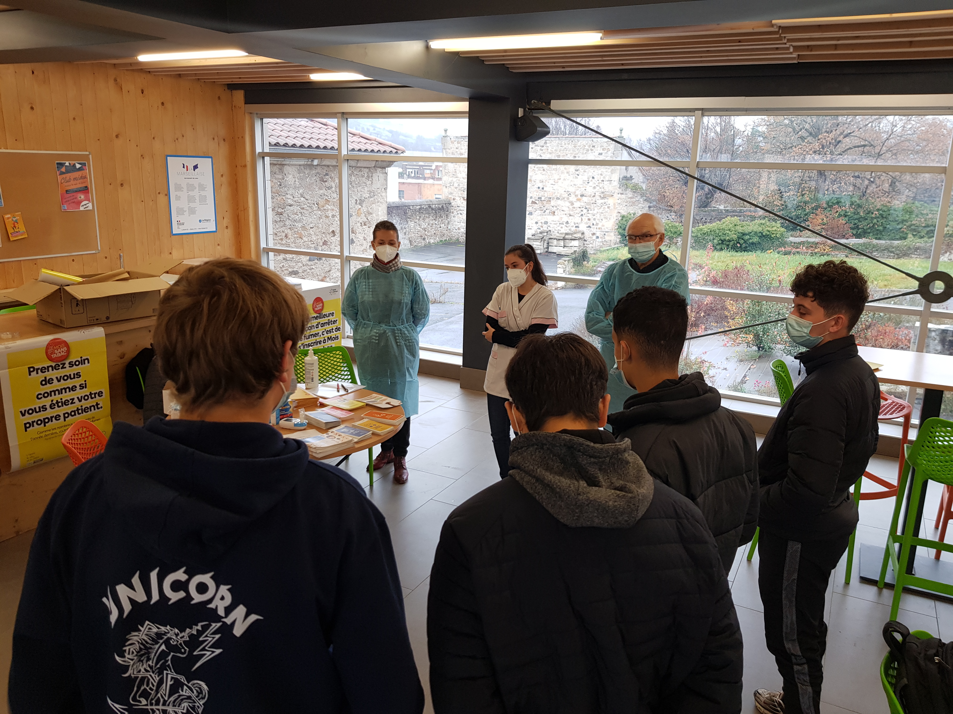 Le Dr Chapon, Président de l’Ordre des Médecins de la Haute-Loire, ainsi que le Dr LUNGOCI, pneumo-allergologue, et l'infirmière Mme Croze étaient présents dans la salle du foyer de 9h à 13h le jeudi 25 novembre 2021, pour sensibiliser les élèves aux risques du tabac, aux conséquences directes sur la santé, aux solutions pour arrêter de fumer, etc.