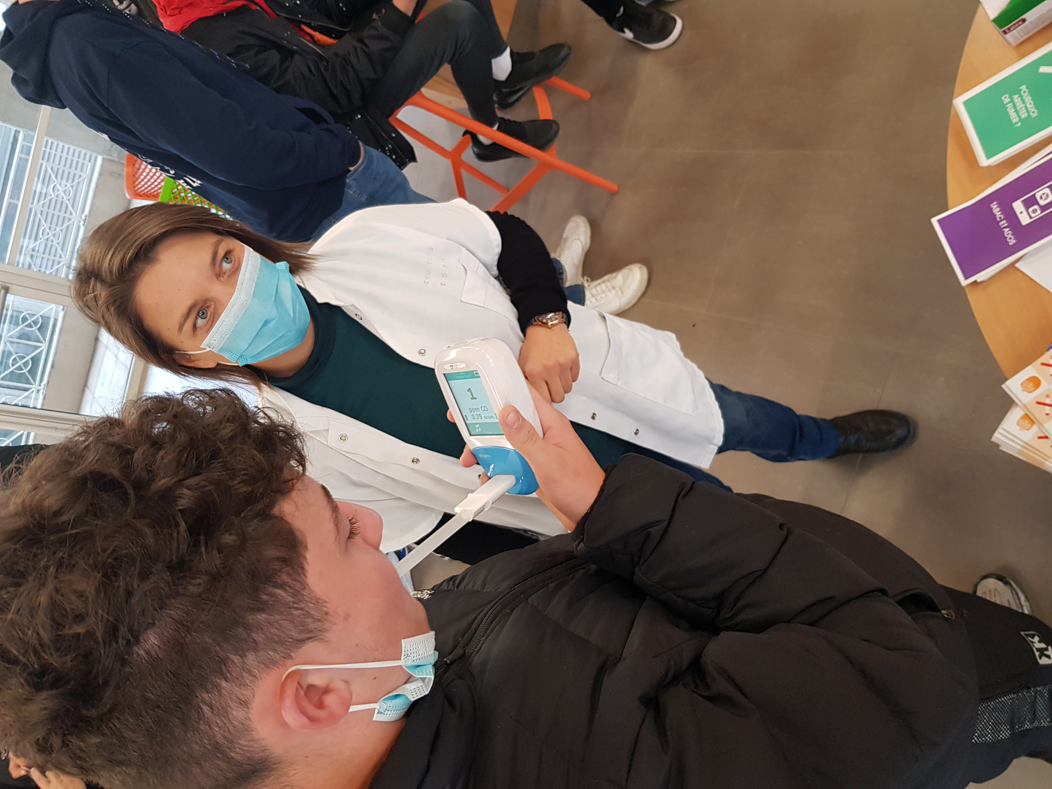 Un dépistage du taux de monoxyde de carbone présent dans les poumons était proposé aux élèves du lycée général et technologique La Chartreuse, du lycée professionnel Paradis ainsi qu’aux étudiants de l’enseignement supérieur, sur la base du volontariat.