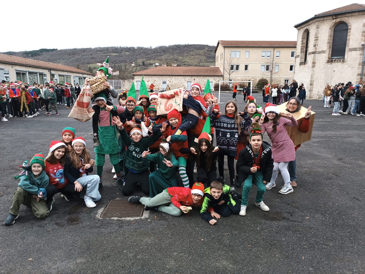Chaque niveau de classe avait un dress code spécifique pour l'occasion : lutin, sapin, bonhomme de neige et renne. Les professeurs se sont quant à eux tranformés en père ou mère Noël.