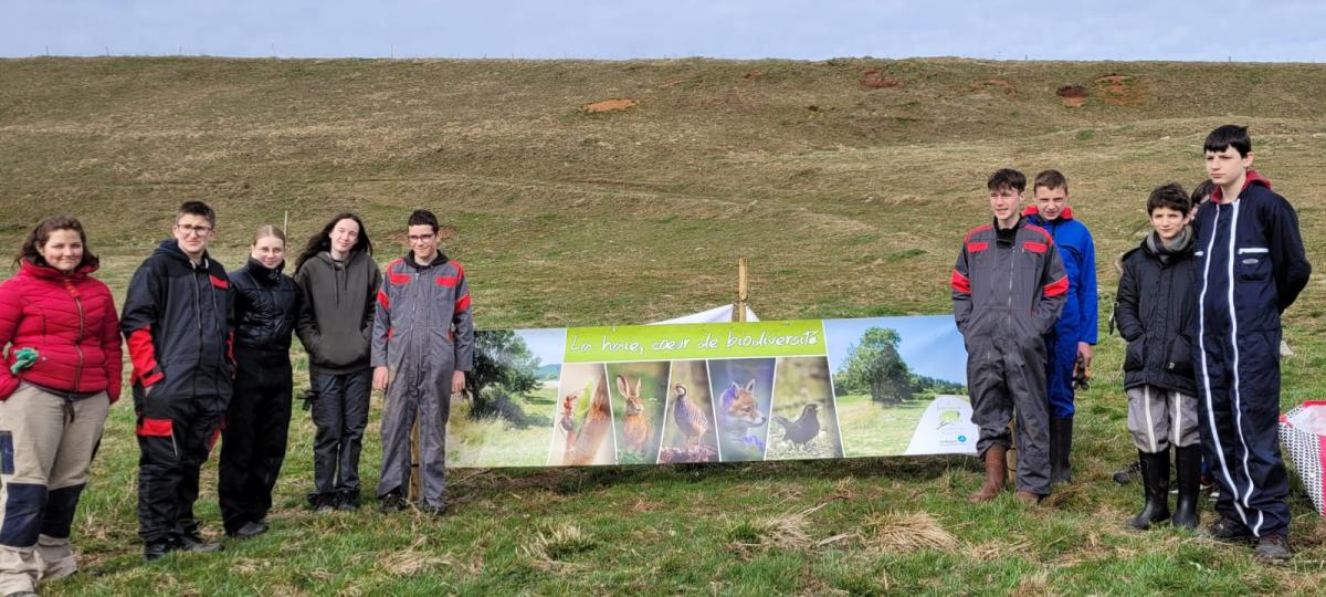 Dans le cadre de l'atelier ERE (Espace Rural et Environnement) et en partenariat avec la Fédération des chasseurs de Haute-Loire, les élèves de 4ème SEGPA se sont rendus sur une exploitation agricole à St Front pour réaliser une plantation de haie bocagère.
