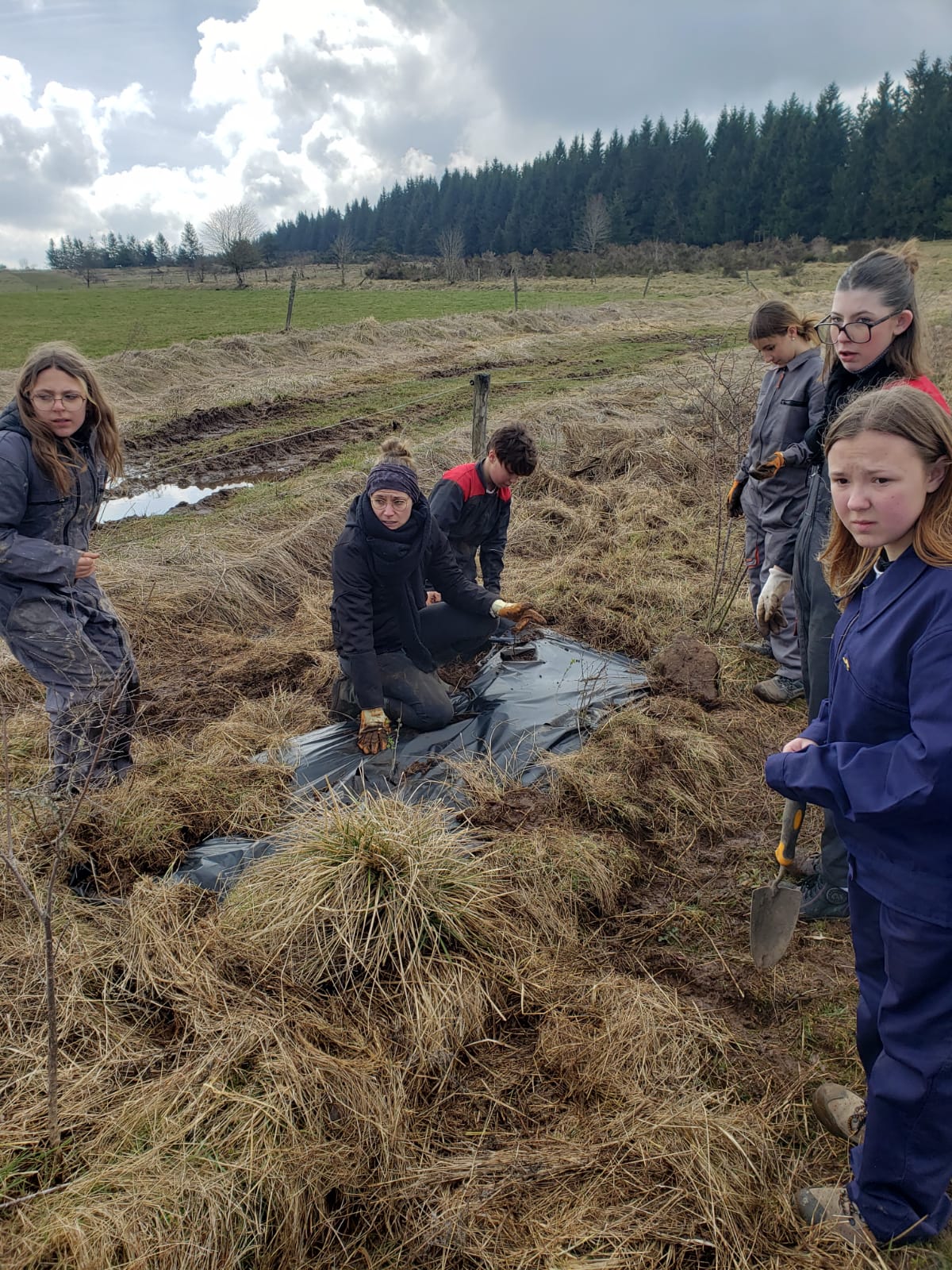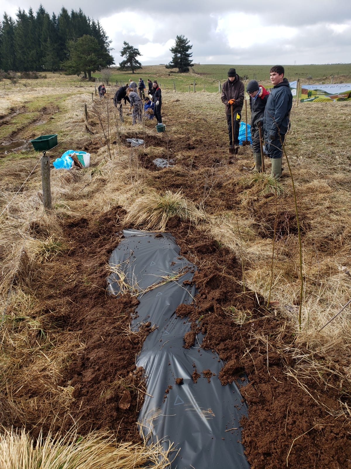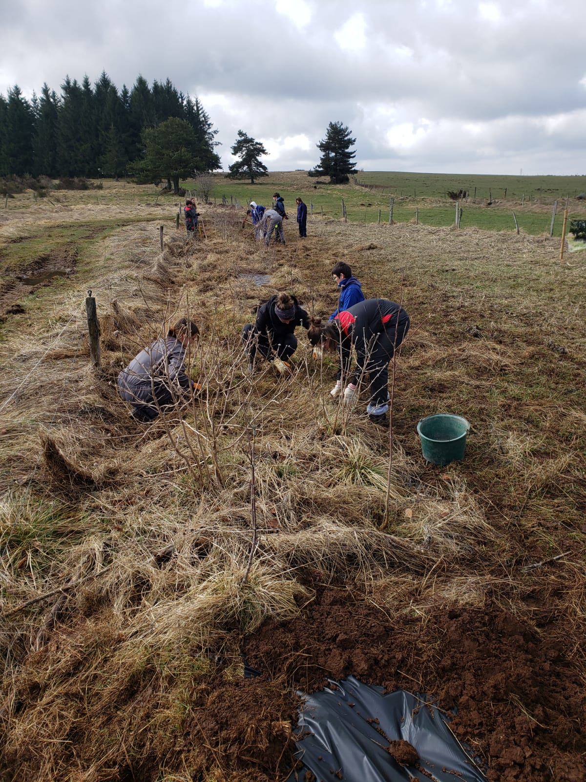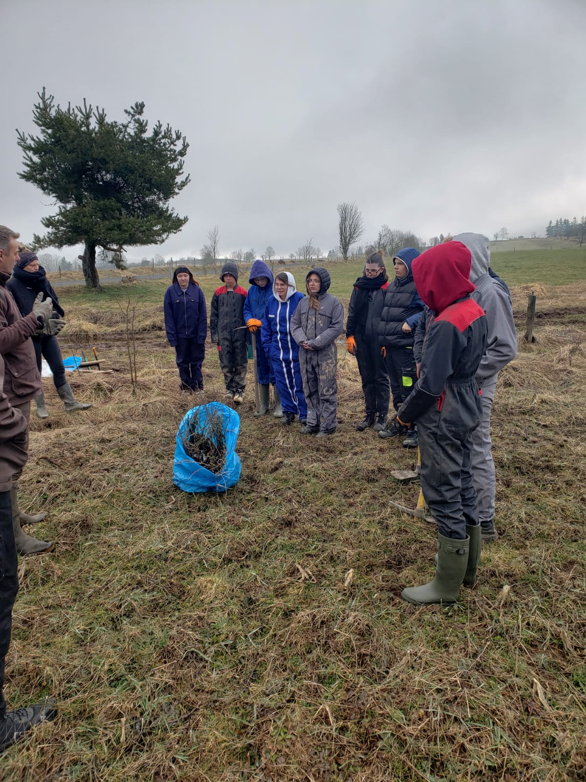 Dans le cadre de leurs ateliers ERE (Espace Rural et Environnement), les élèves de 4ème SEGPA se sont rendus à Présailles pour planter une haie bocagère en partenariat avec la fédération des chasseurs de la Haute Loire.
